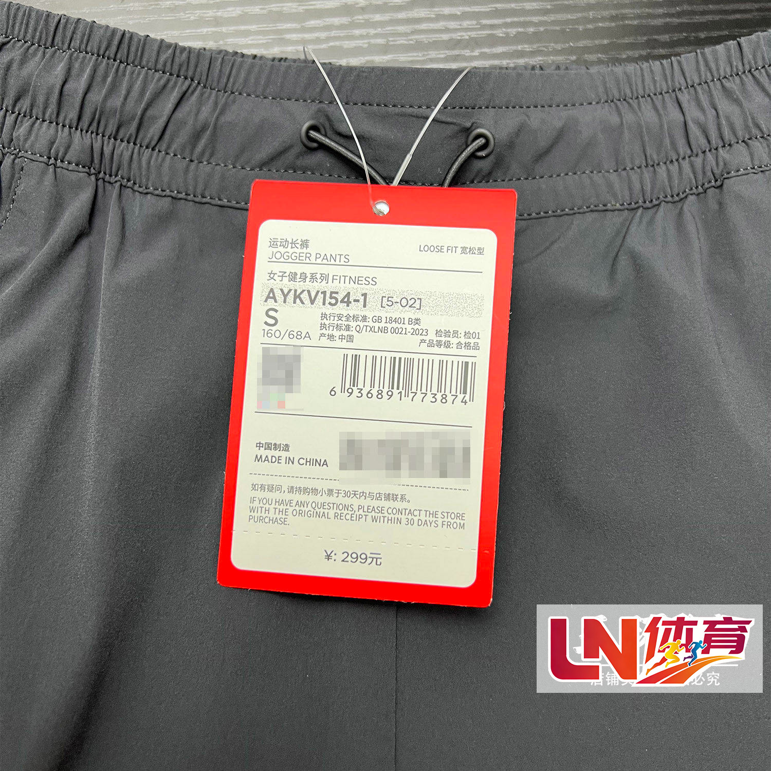 李甯速乾褲 2025夏季新品女子束腳冰感舒適防曬寬鬆運動褲AYKV154