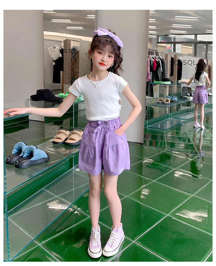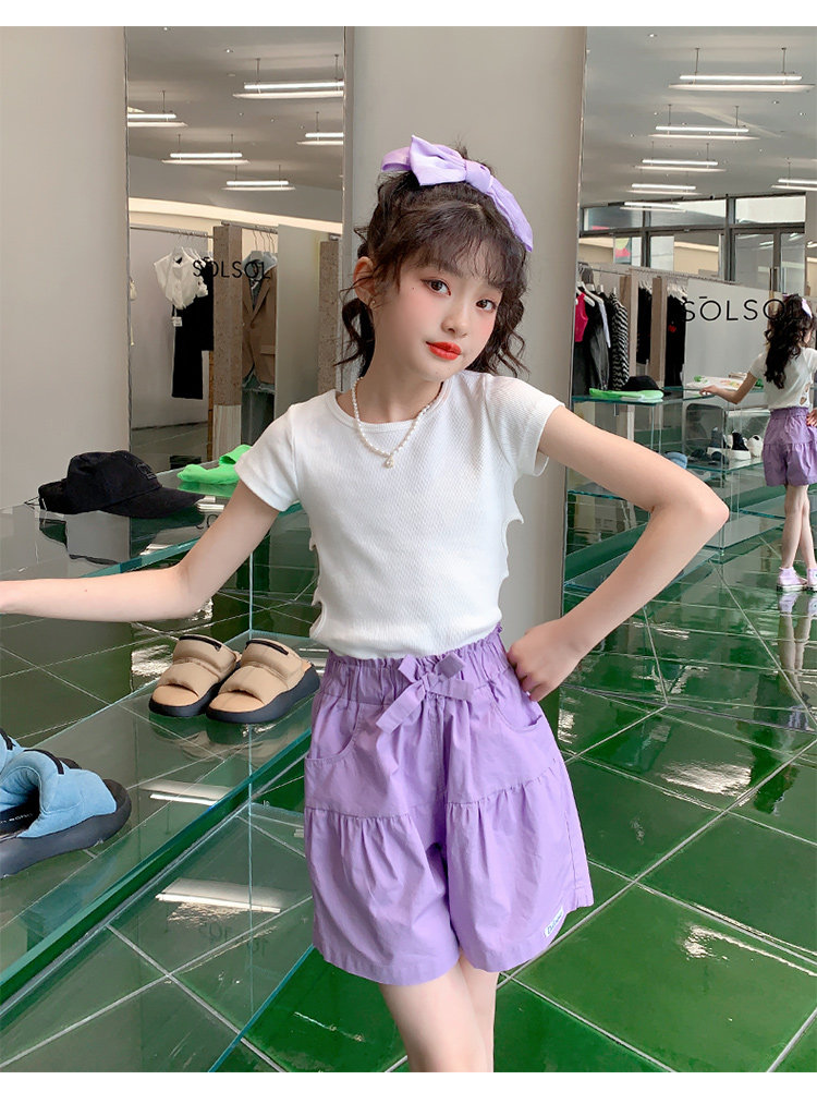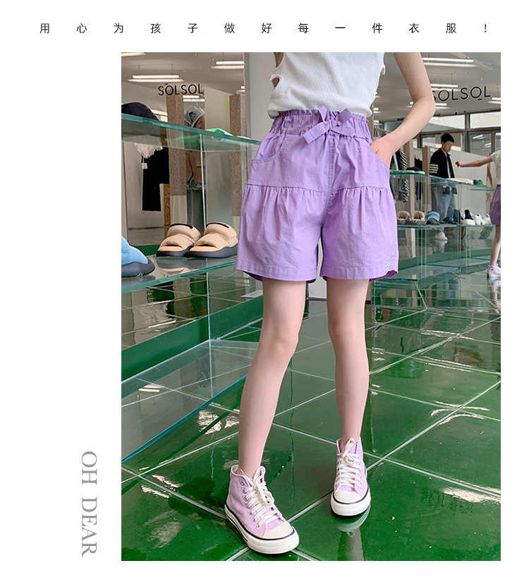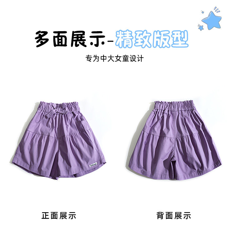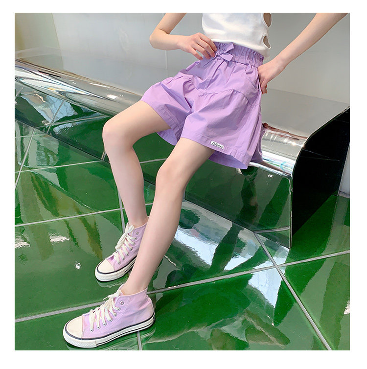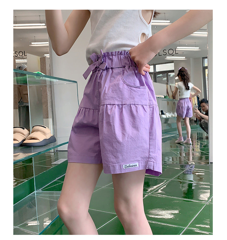 女童短褲外穿薄紫色純棉休閒夏裝季新款孩兒童中大童褲子熱褲中褲