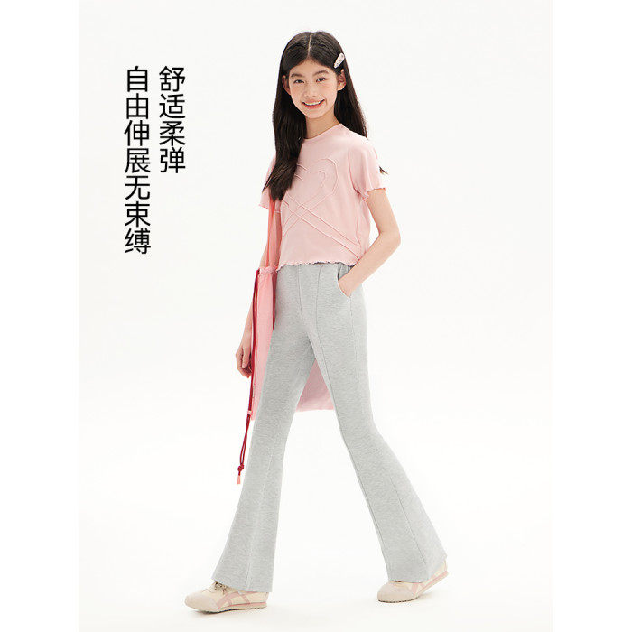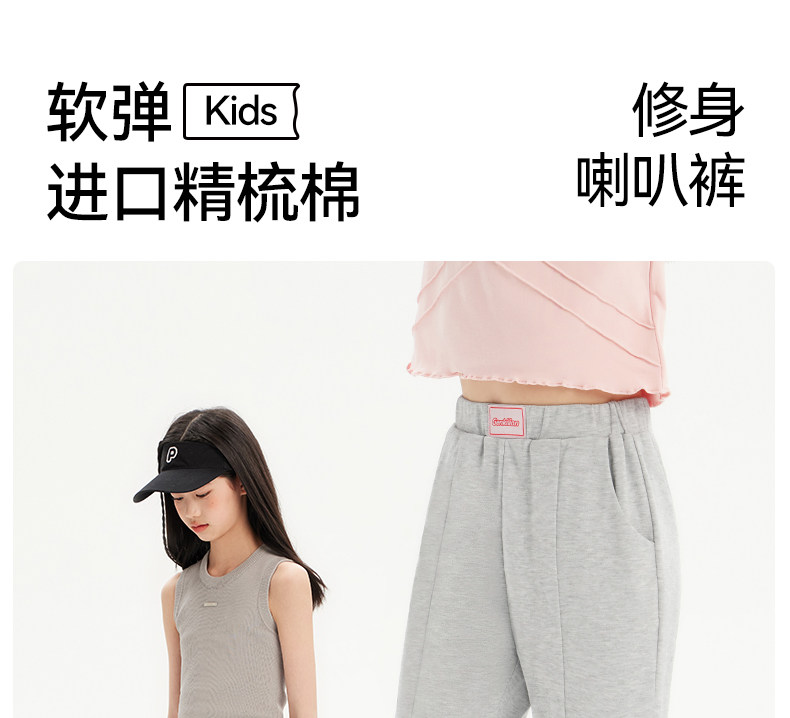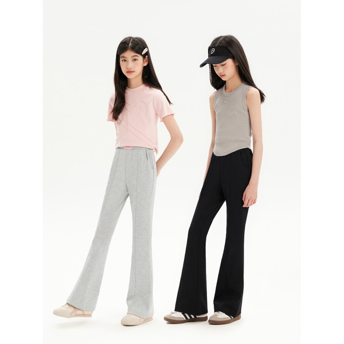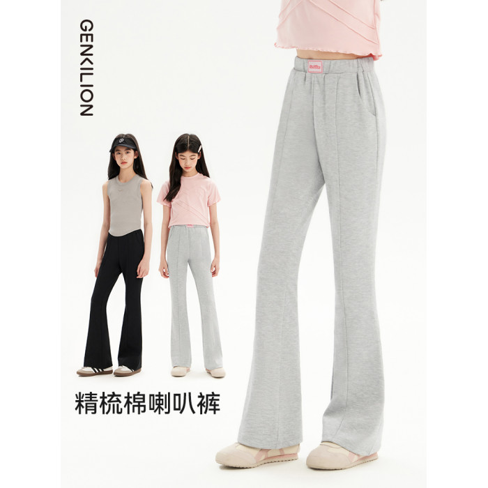 女童運動褲兒童春秋新款加絨微喇褲子女孩大童初中生濶腿喇叭衛褲