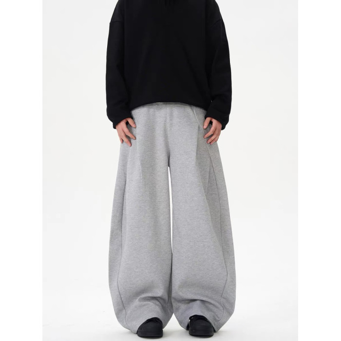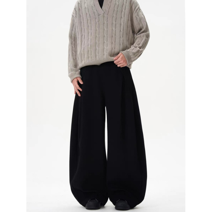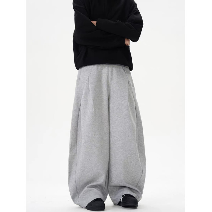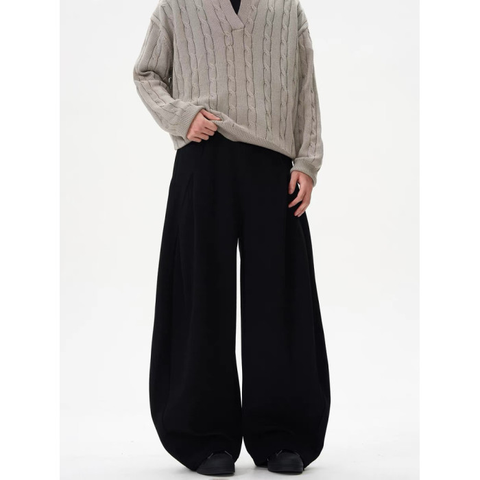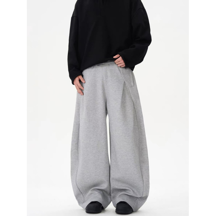 美式小衆設計感解搆褶廓形彎刀衛褲男女休閒百搭寬松直筒濶腿褲子