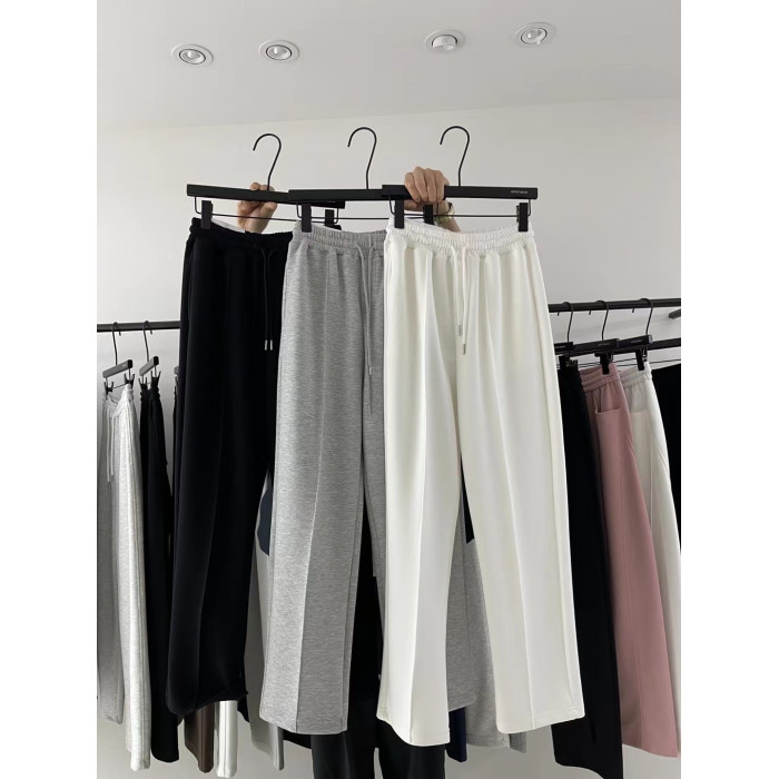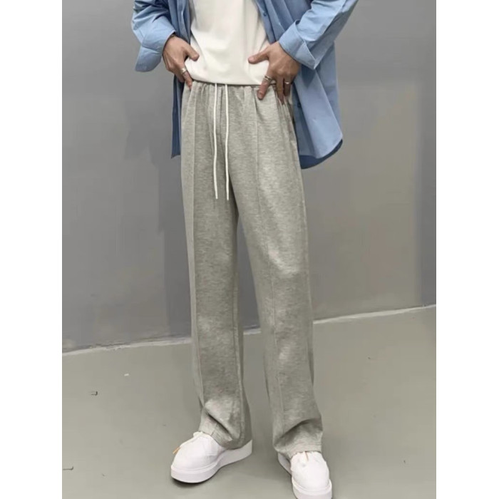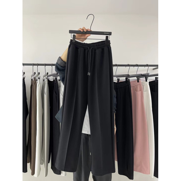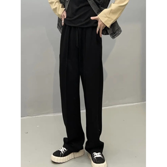 垂感休閒褲男夏季濶腿褲男士韓版寬松直筒褲長褲子黑色運動衛褲男