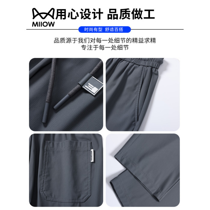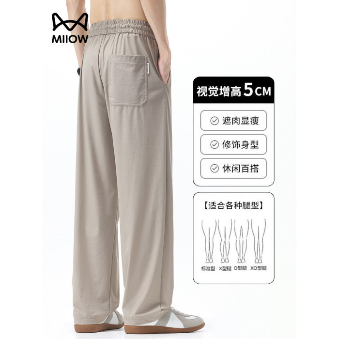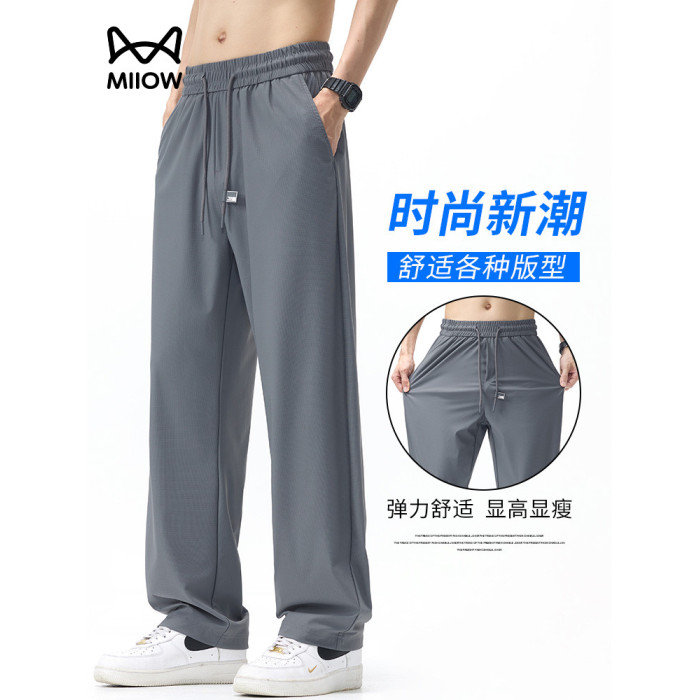 貓人冰絲褲男士夏季薄款直筒寬松透氣涼感速乾寬松休閒防曬褲子男