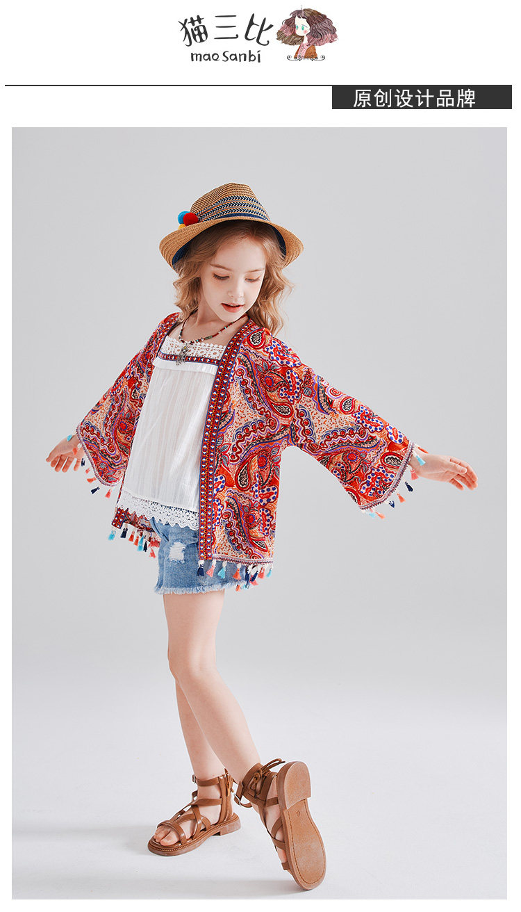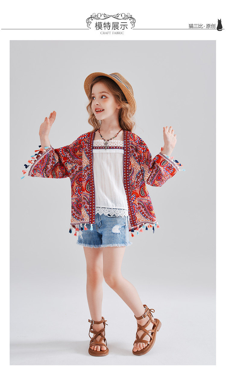 度假女童防曬衫薄款夏季沙灘拍照開衫外搭民族風波西米亞兒童外套