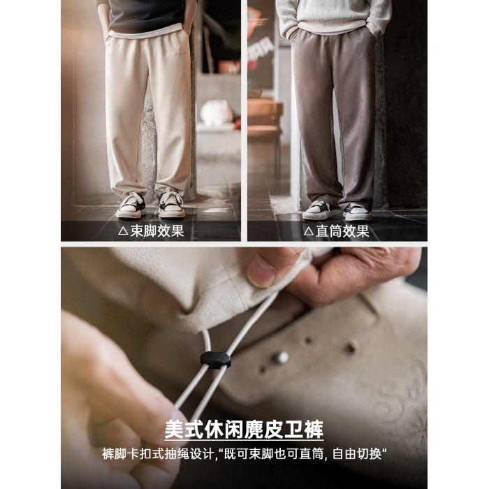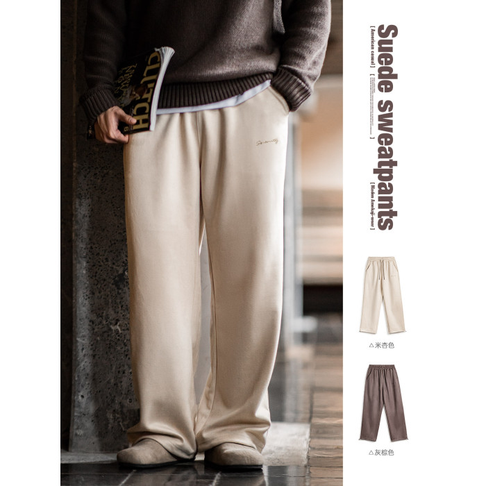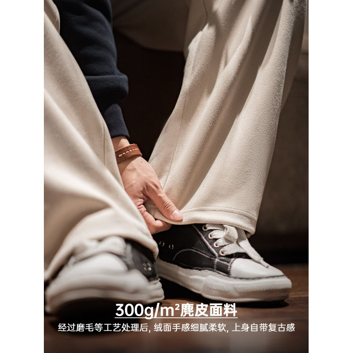 馬登工裝美式休閒磨毛麂皮衛褲慵懶風寬松垂感直筒濶腿褲子男春