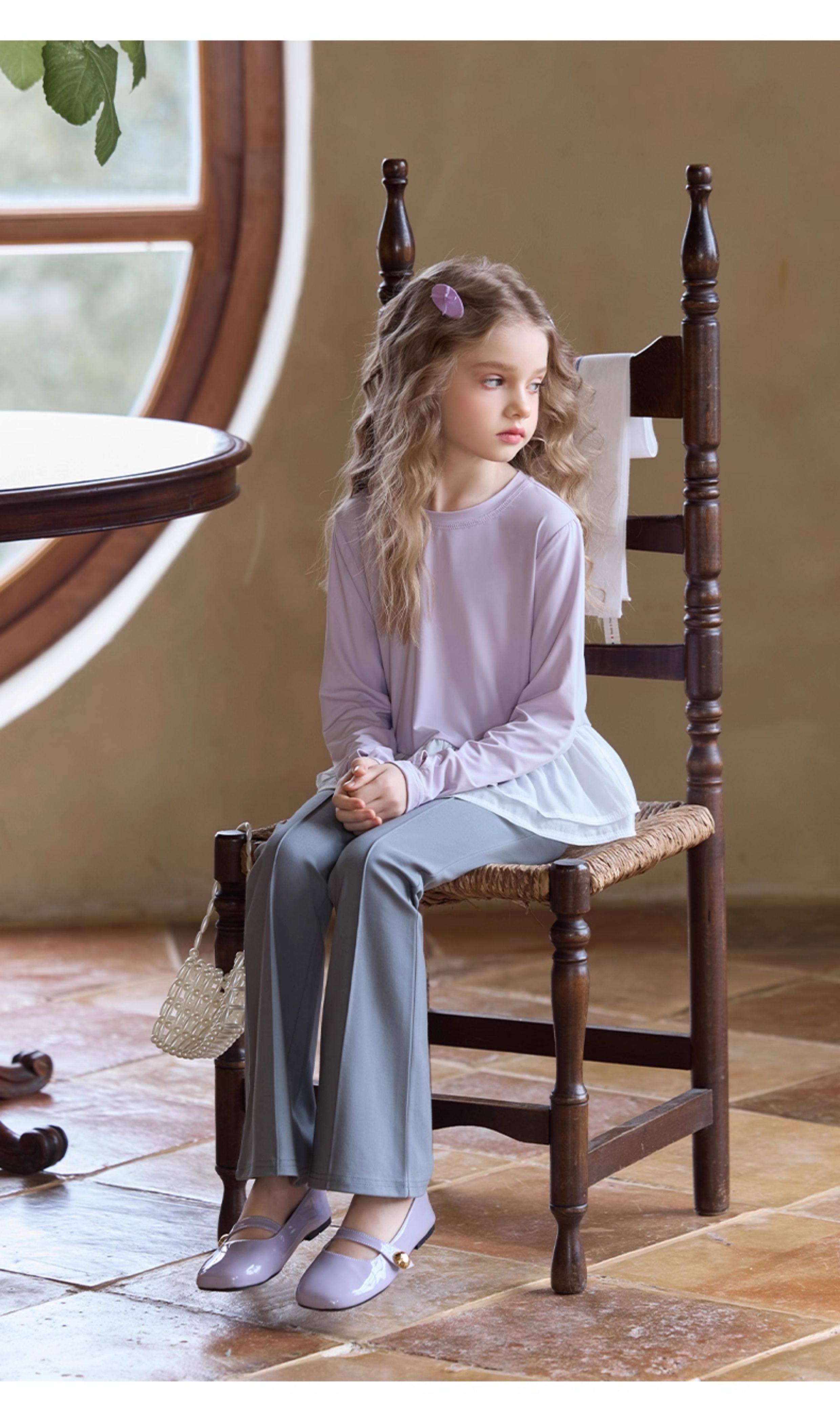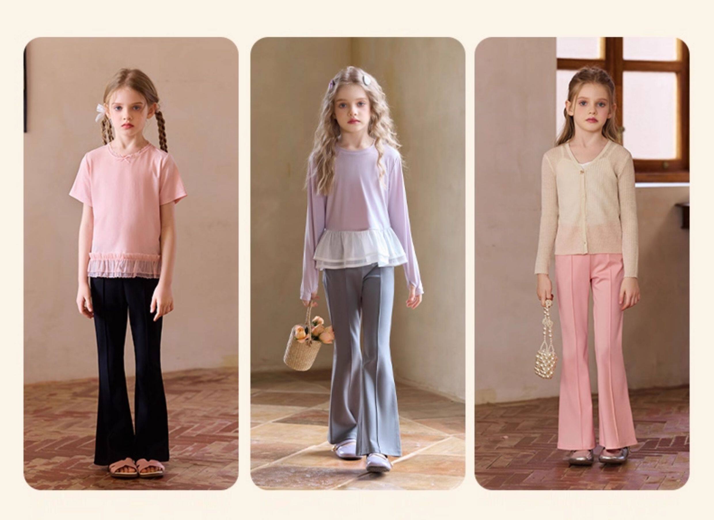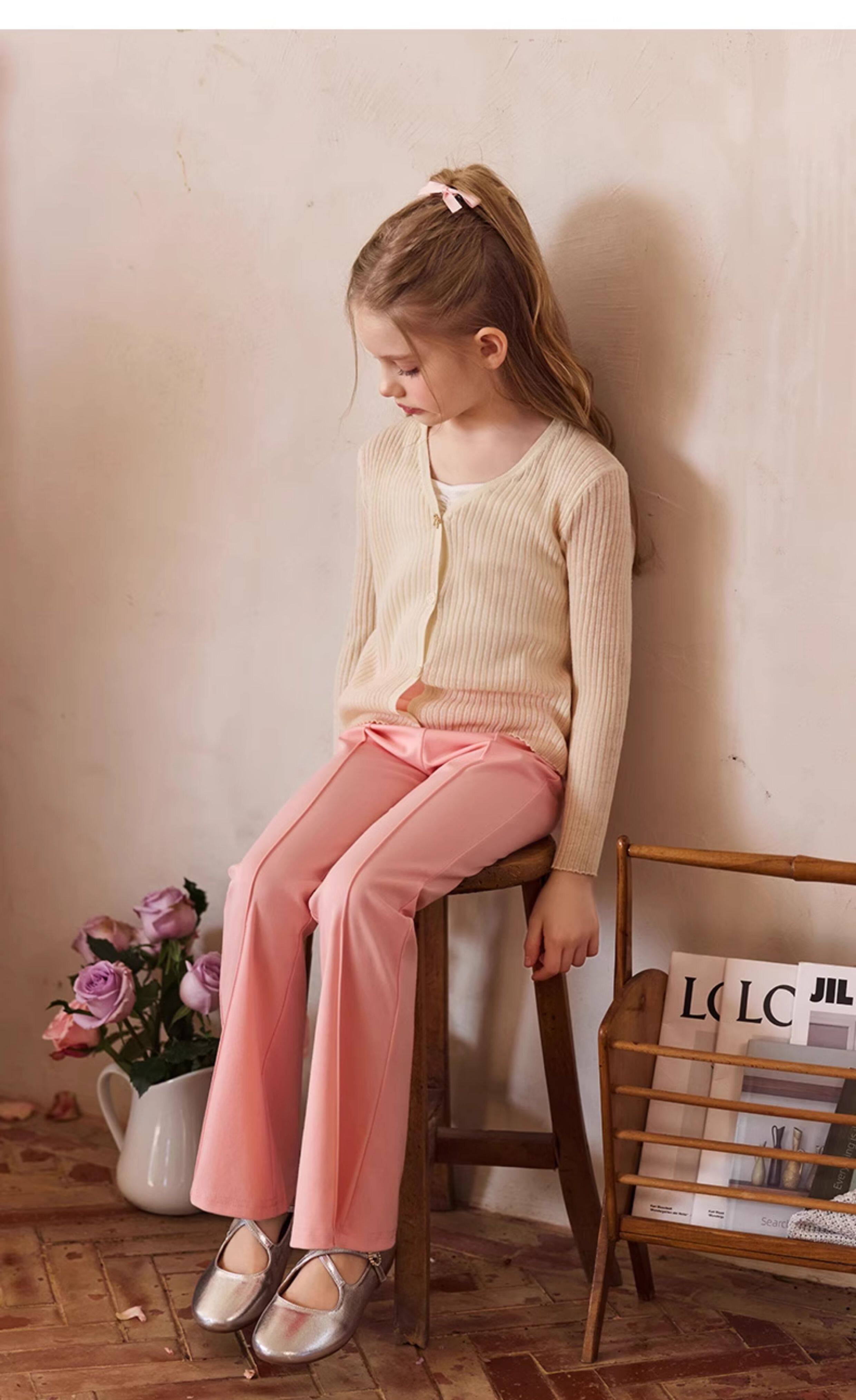Little Naive女童喇叭褲春秋薄款兒童休閒褲女童多巴胺微喇褲長褲