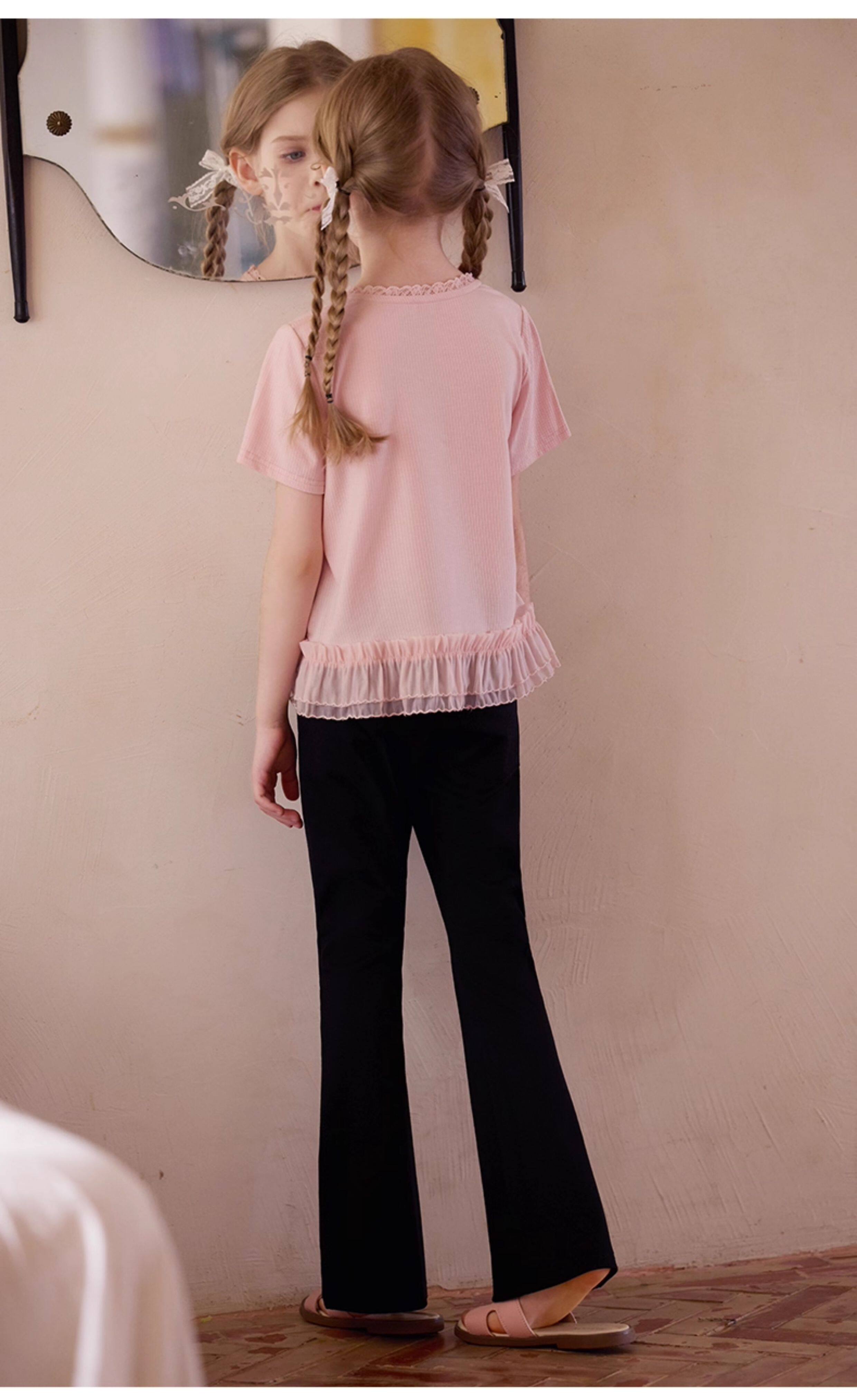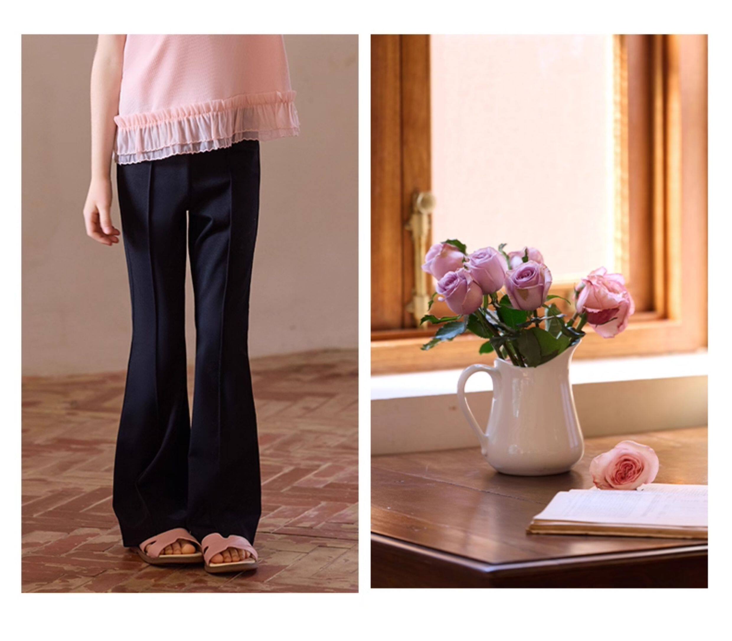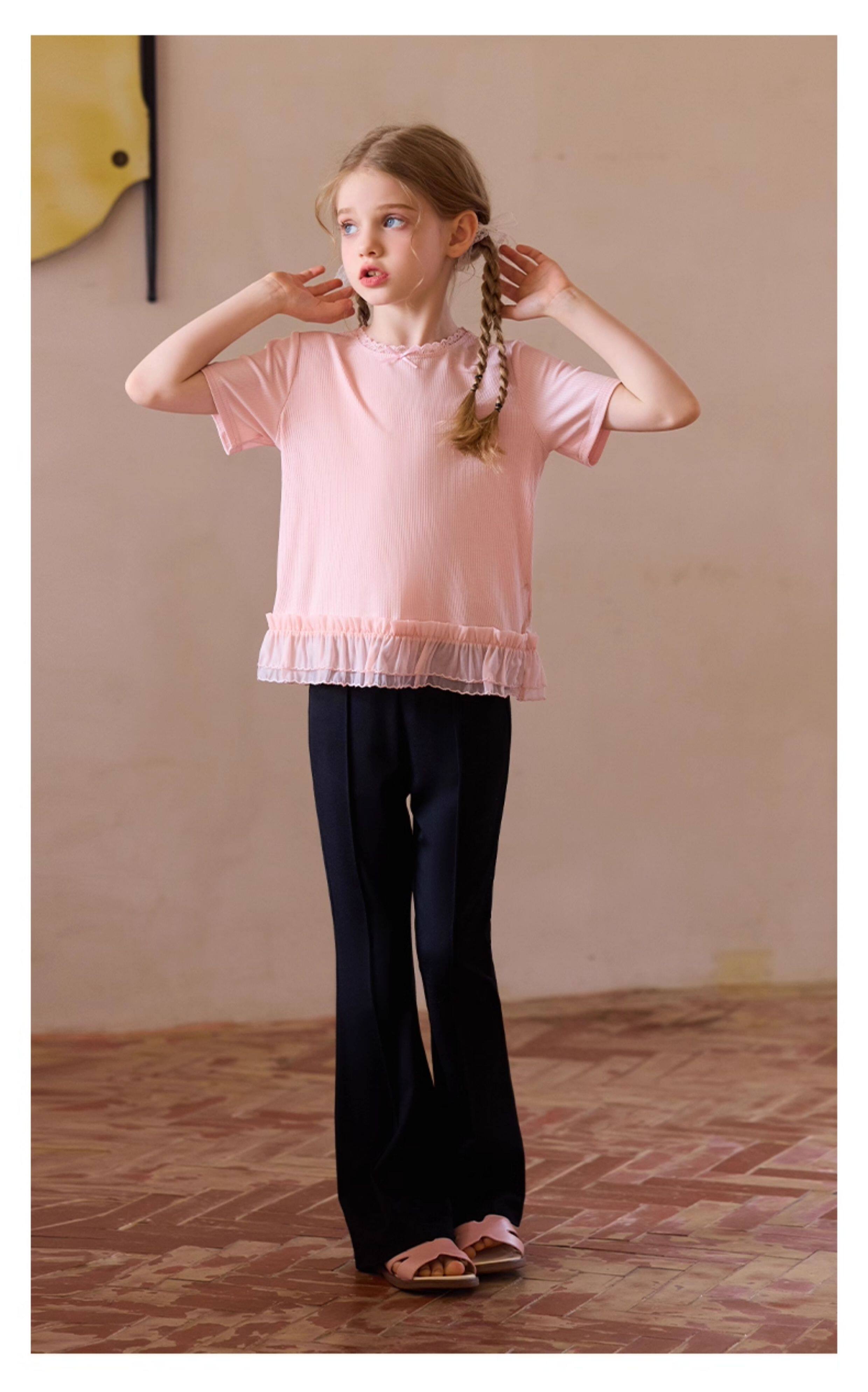 Little Naive女童喇叭褲春秋薄款兒童休閒褲女童多巴胺微喇褲長褲