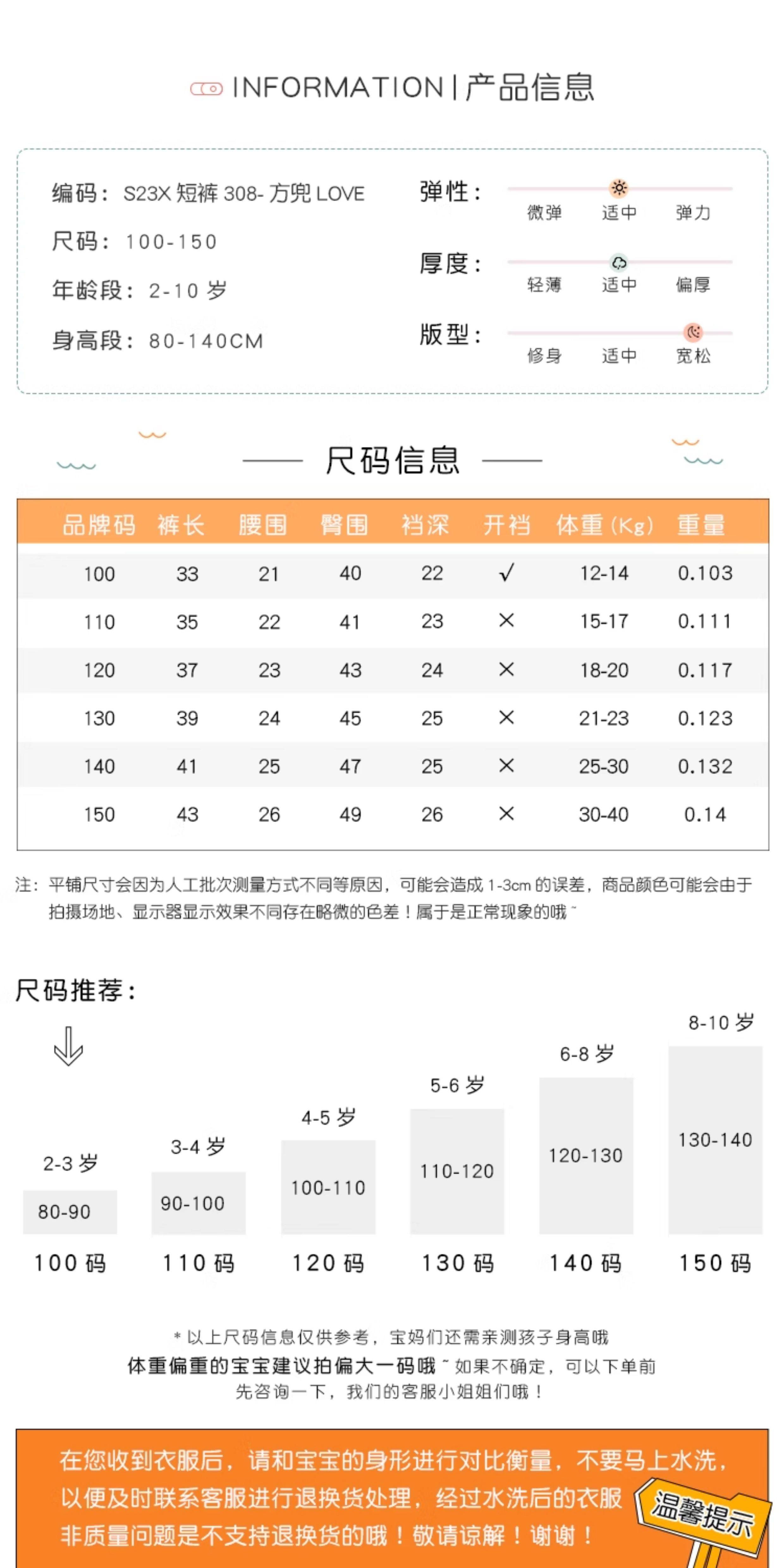 | 褲長 | 短褲 |