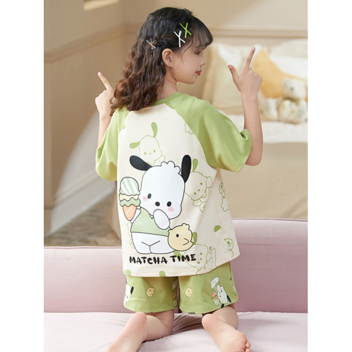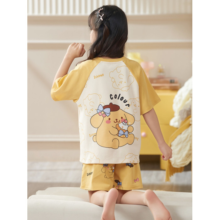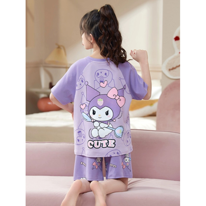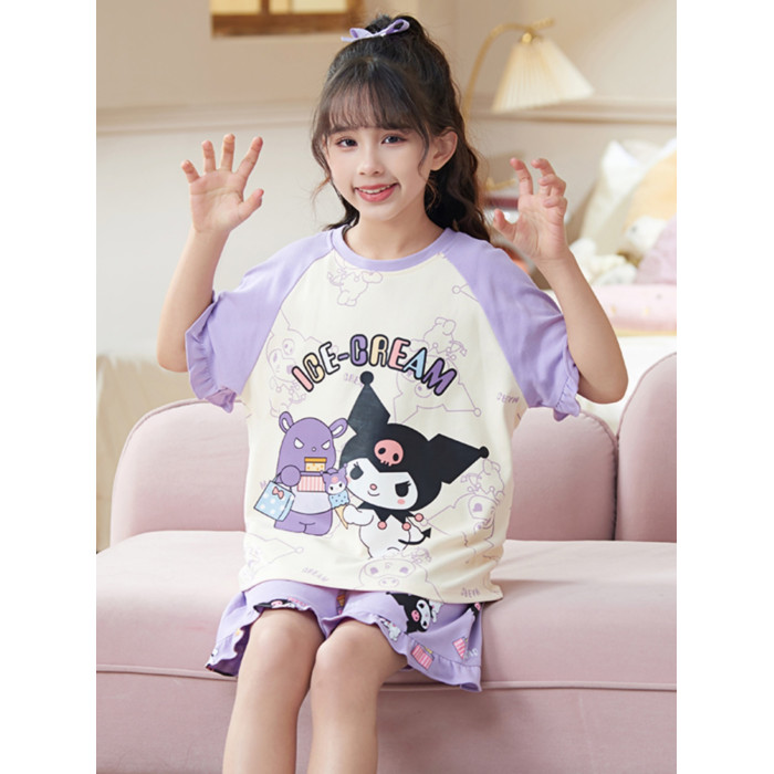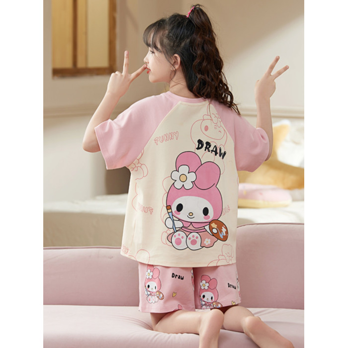 2025新款女童夏季睡衣套裝純棉短袖薄款公主風女孩大童兒童家居服