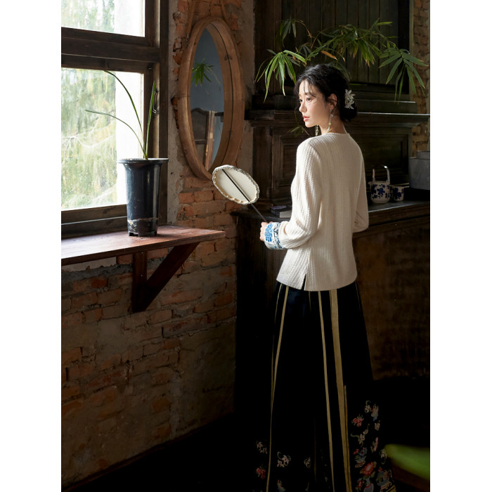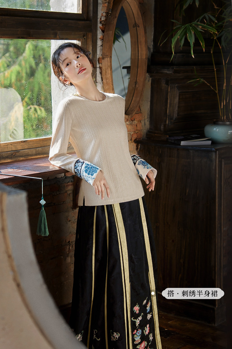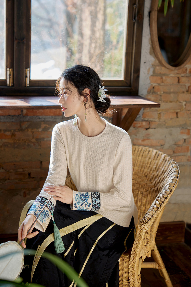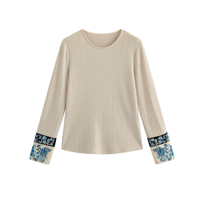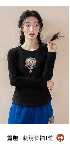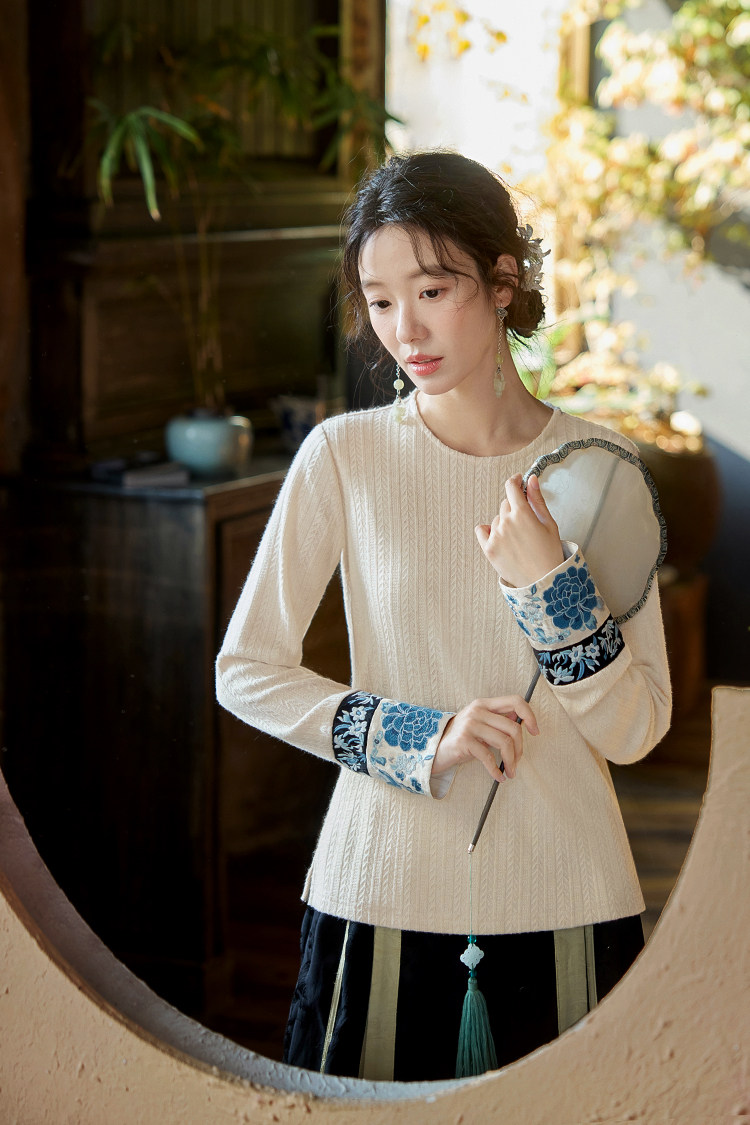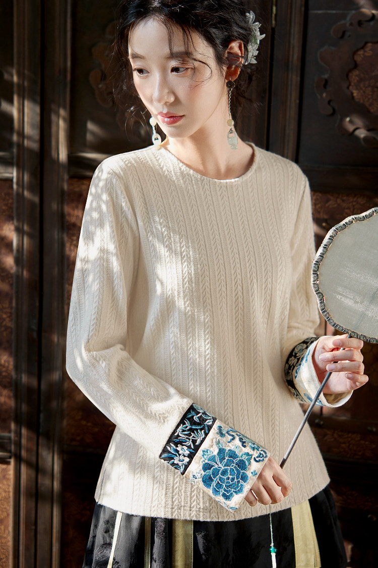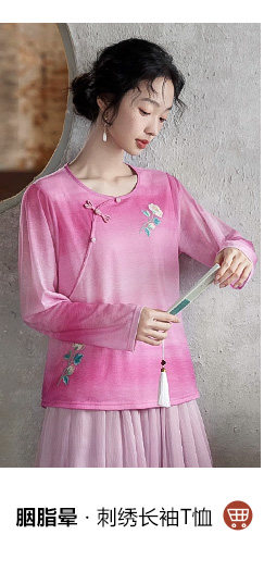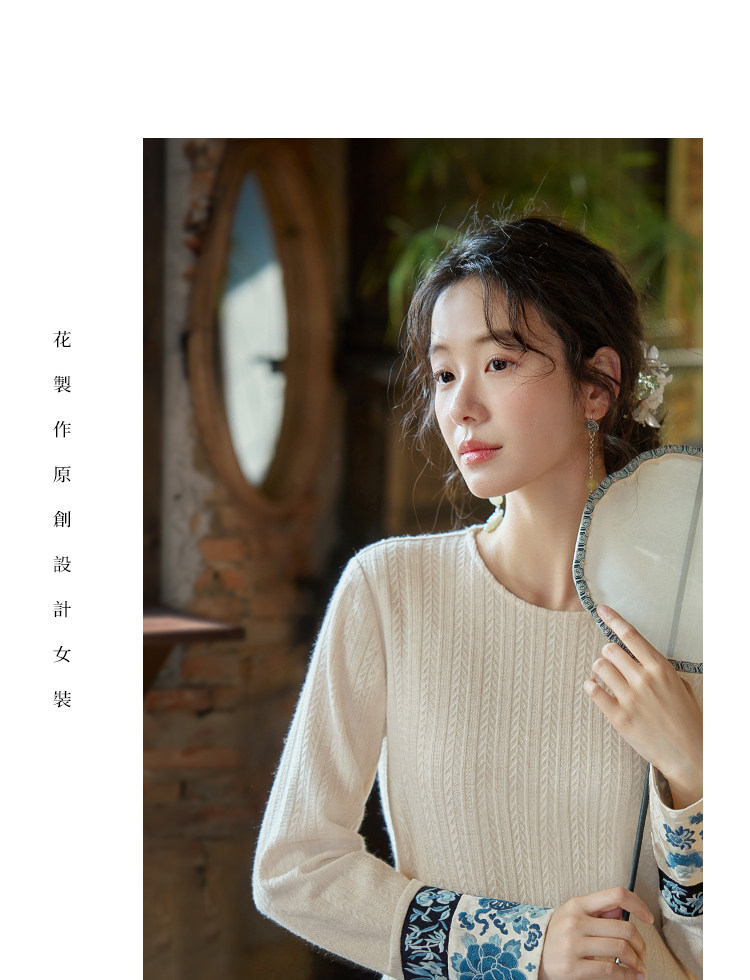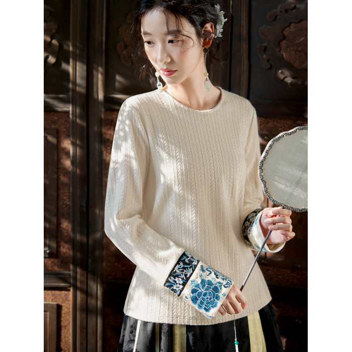 花製作 唸遠叁 原創國風刺綉打底衫女新中式民族風休閒針織上衣