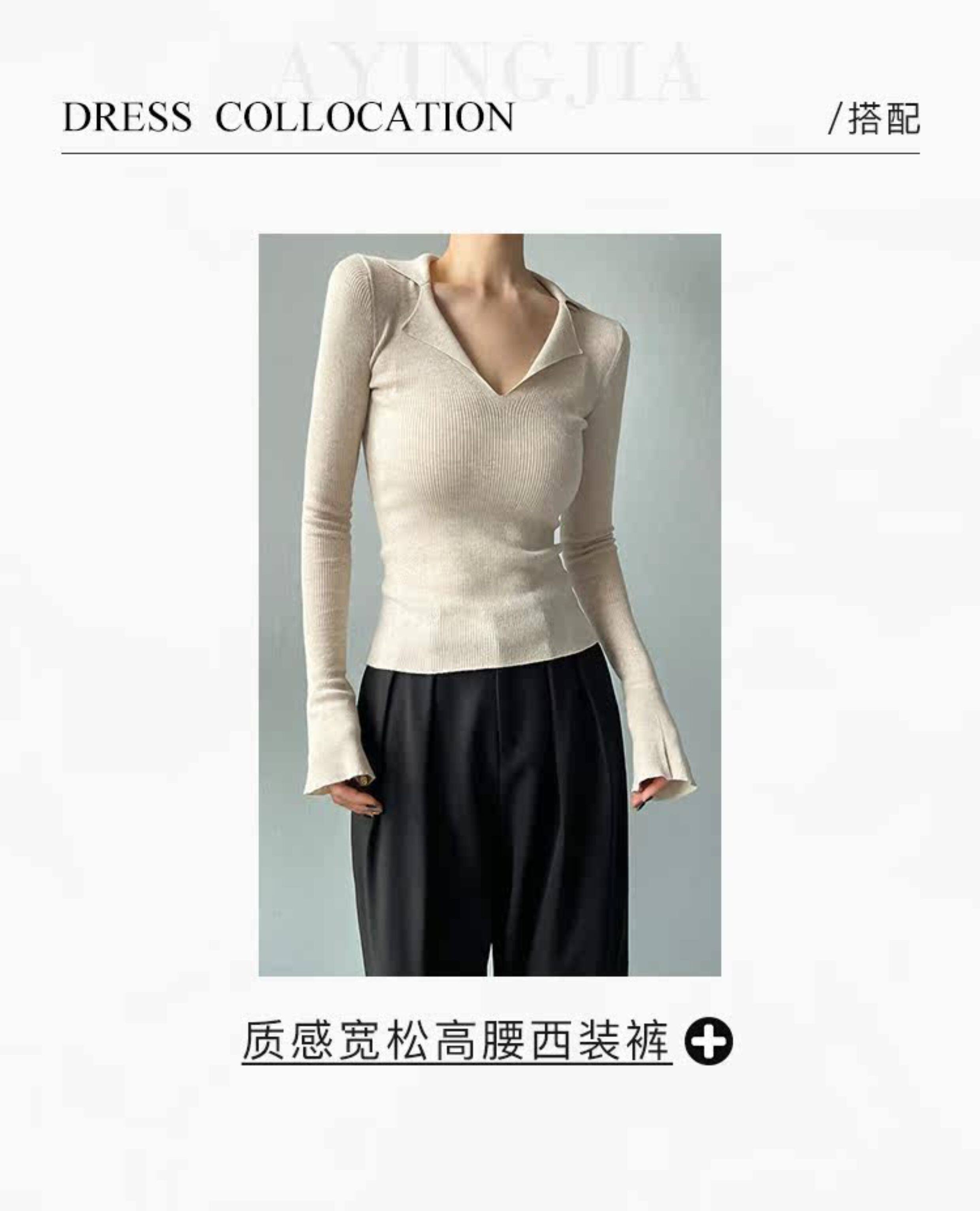 AYINGJIA 法式大V領針織衫女春內搭打底衫設計感小衆修身顯瘦上衣