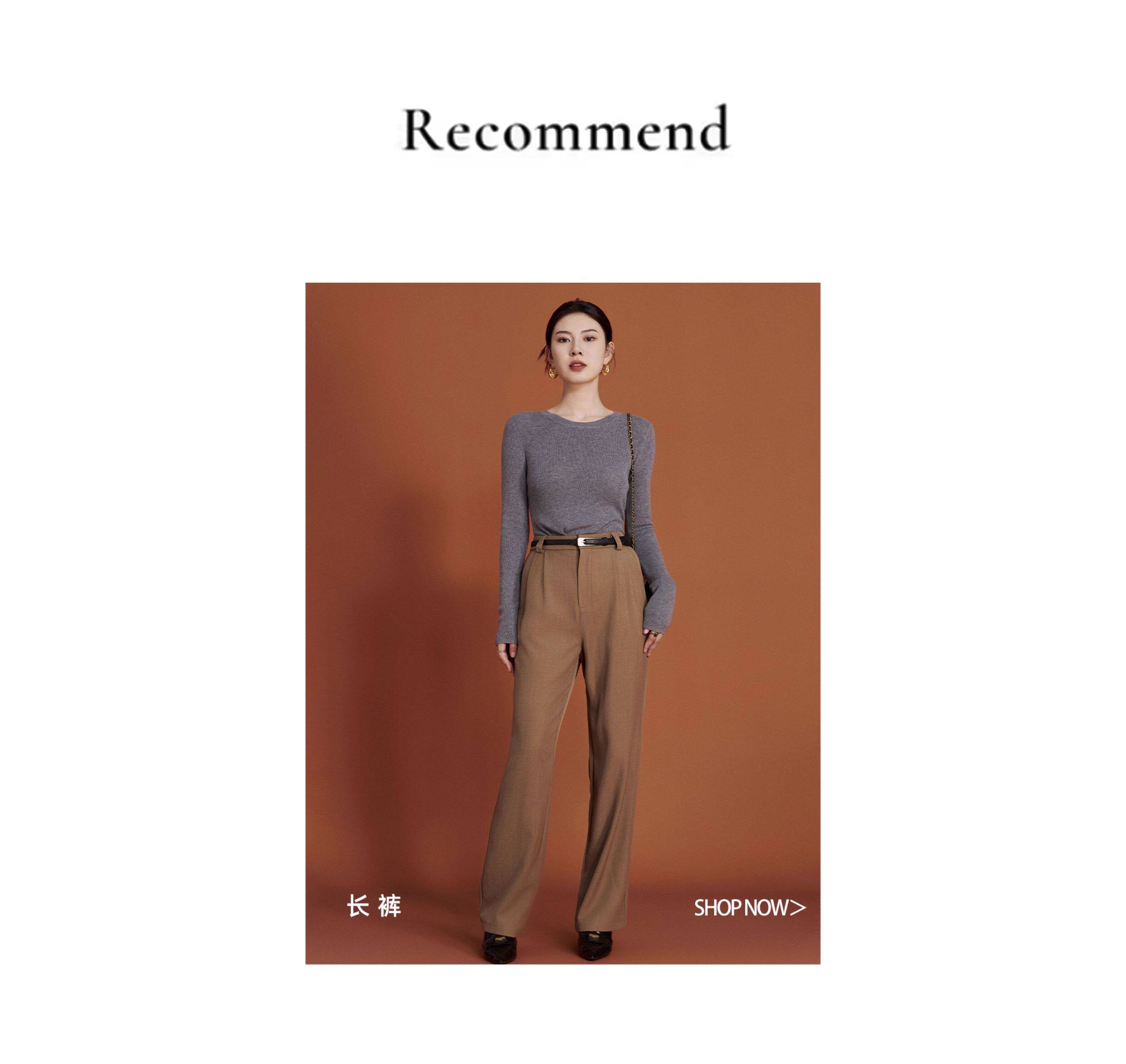 Basic House/百家好簡約修身內搭灰色圓領長袖針織打底衫女裝春季
