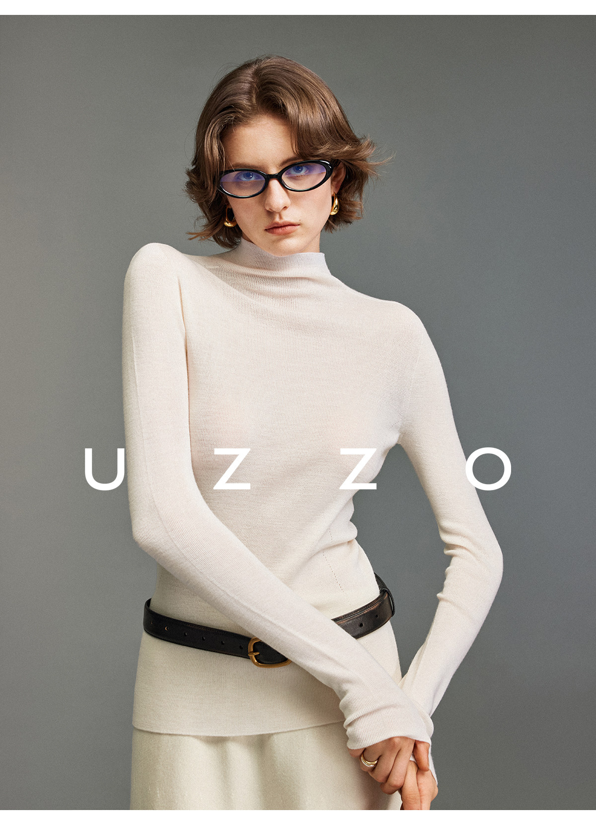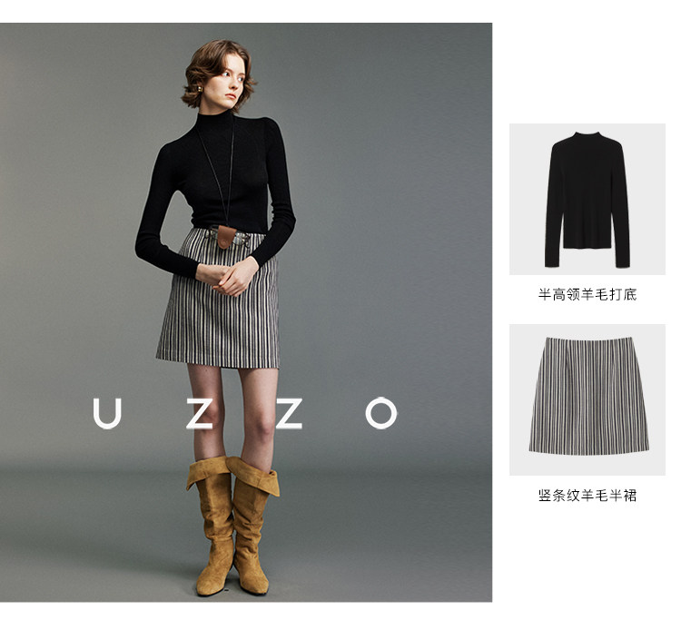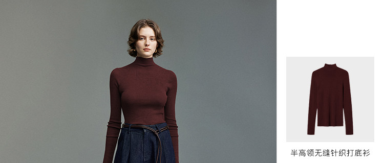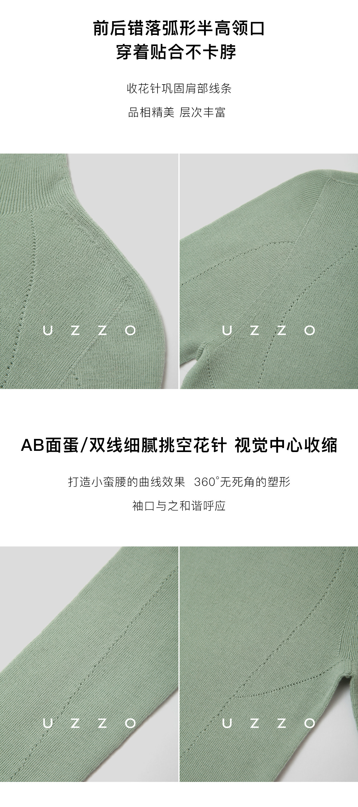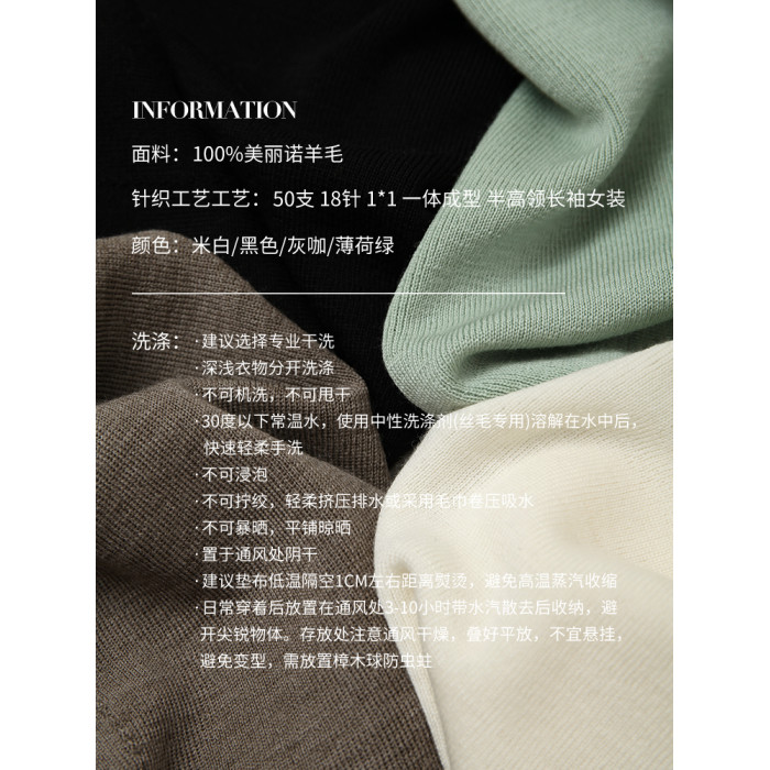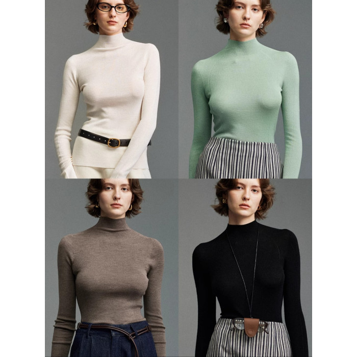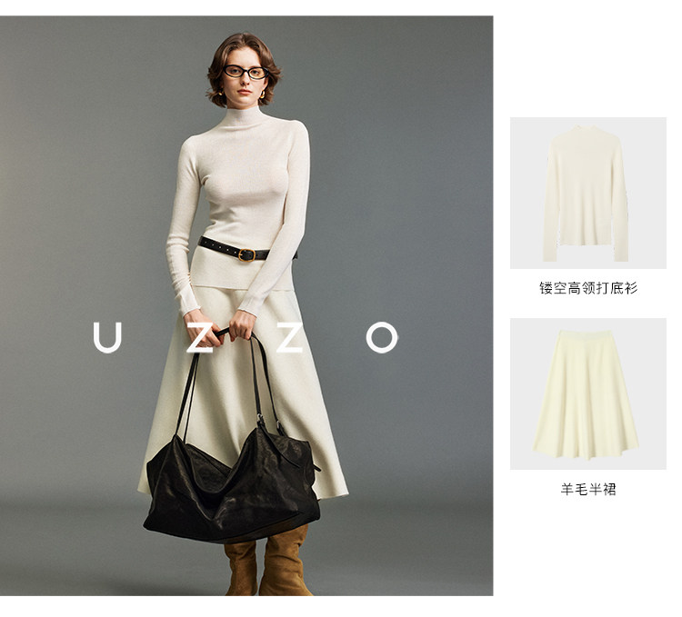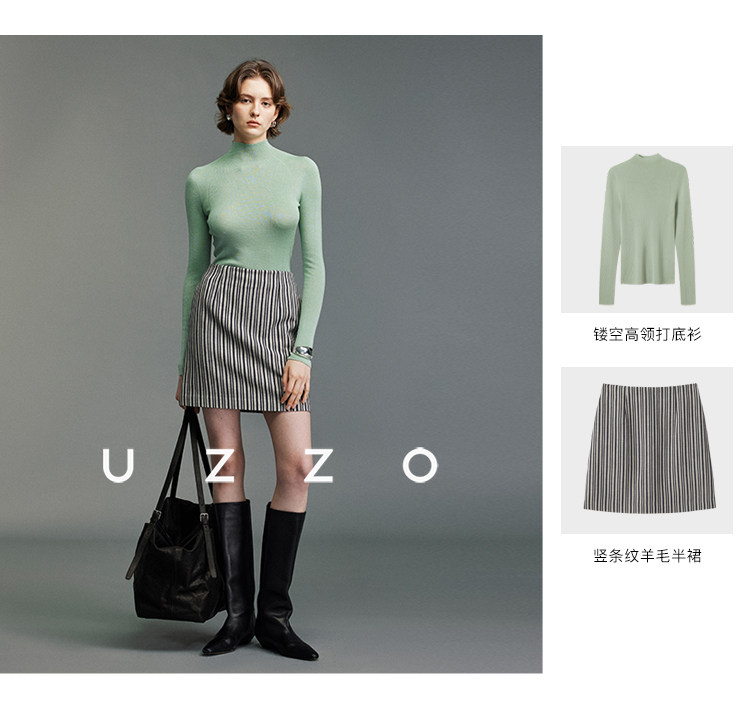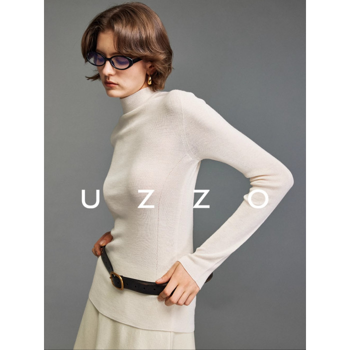 UZZO澳洲美麗諾羊毛_ 冬日小暖爐50支無縫半高領鏤空針織打底衫