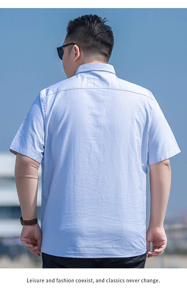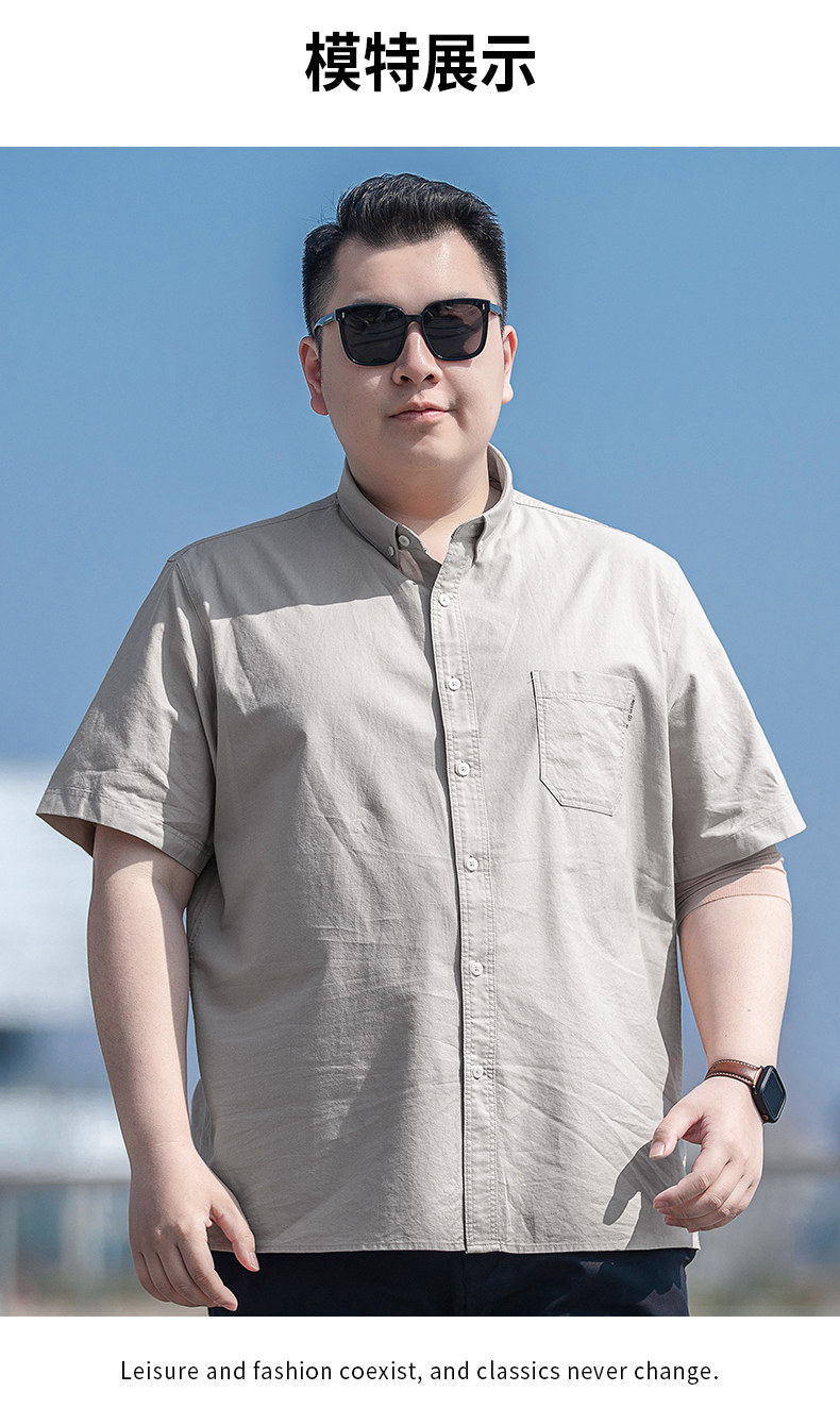 加大碼休閒半袖襯衣男夏季薄款純棉打底衫胖子寬鬆牛津紡短袖襯衫