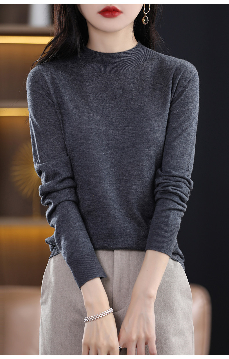 精紡超細羊毛衫女洋氣半高領針織衫春秋新款薄毛衣長袖短款打底衫