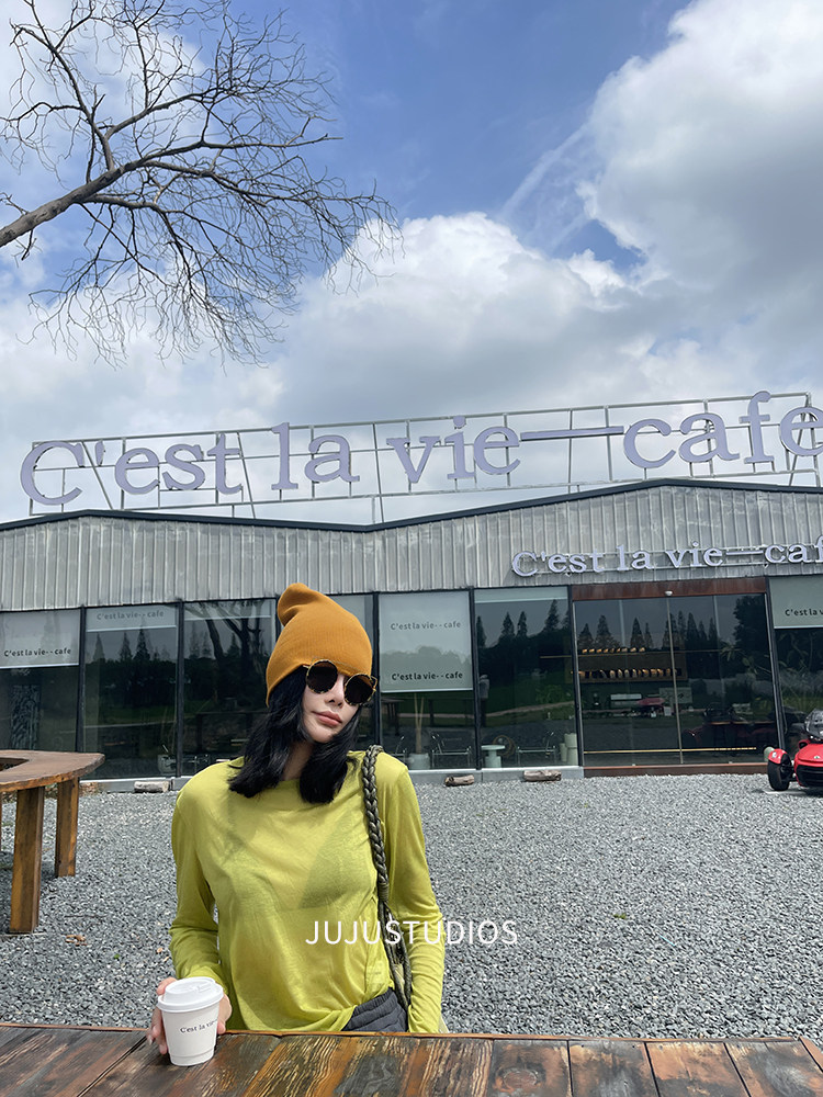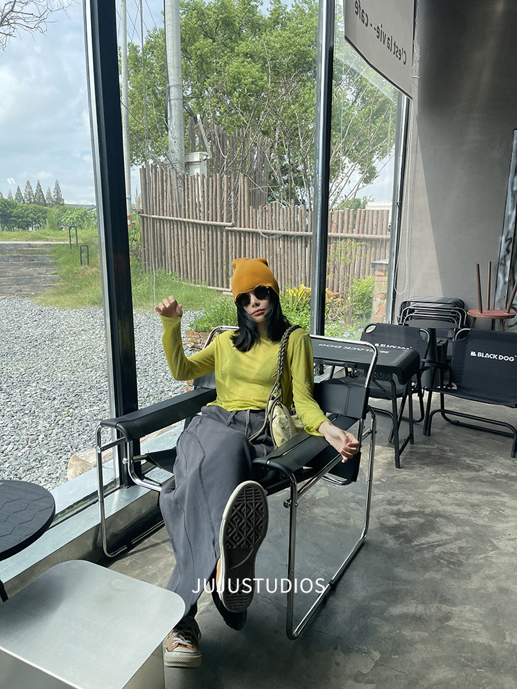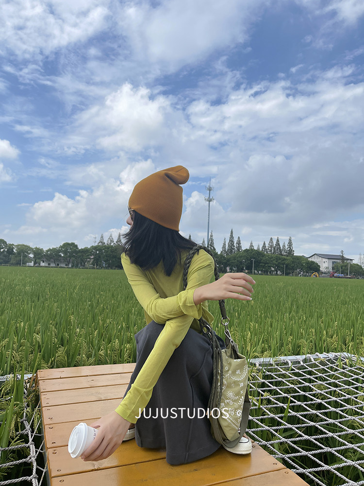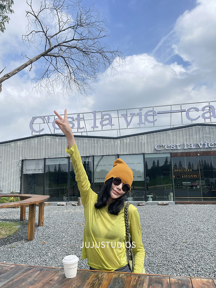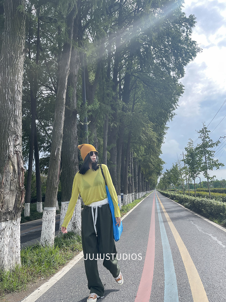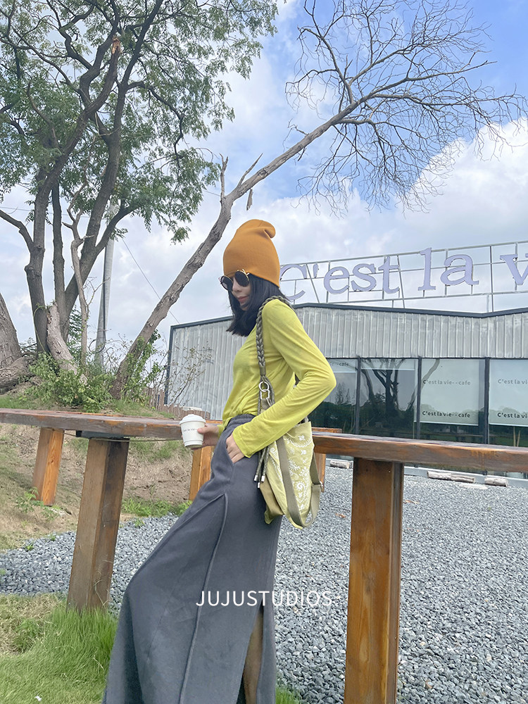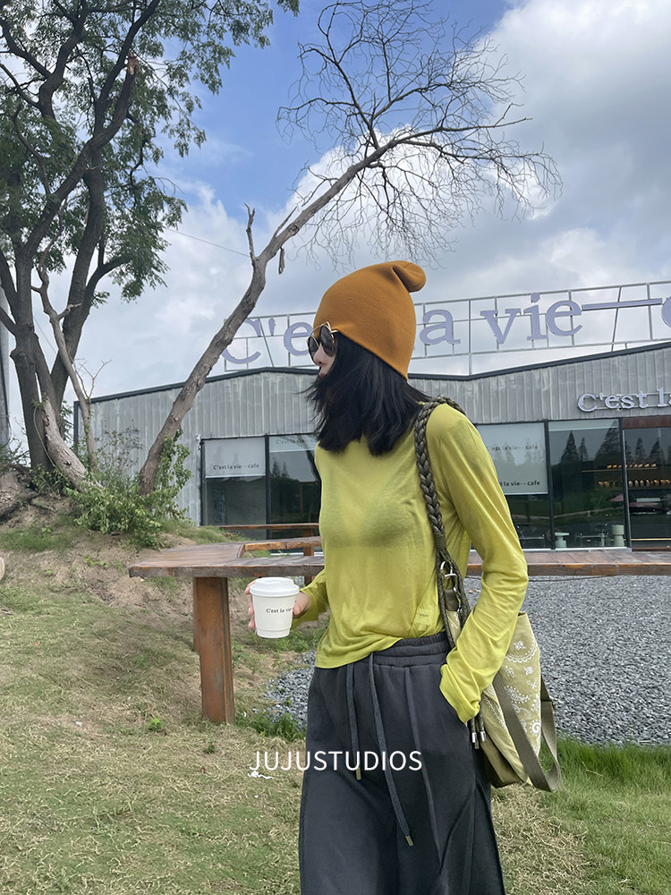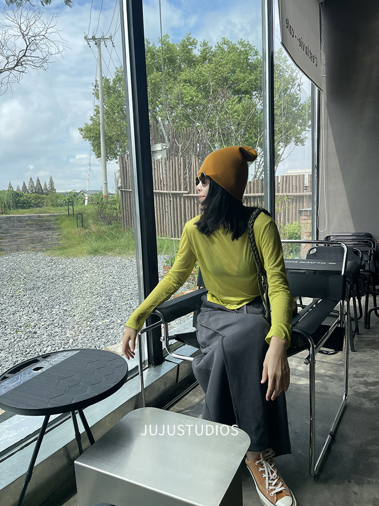 古祖祖 原創細軟羊毛果綠色針織打底衫多巴胺秋季曡穿上衣女