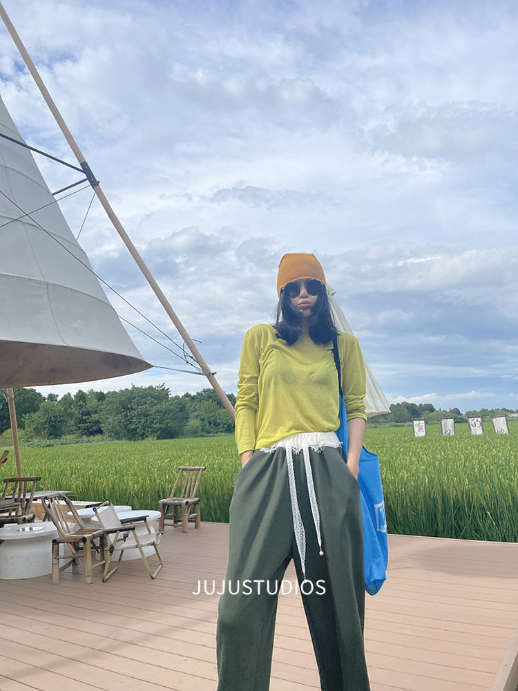JuJuStudios . 綠色針織打底衫曡穿上衣
