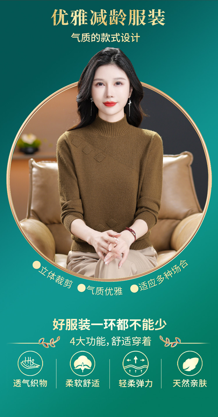 恒源祥彩羊半高領毛衣女款2025新款冬季羊毛衫加厚高級內搭打底衫