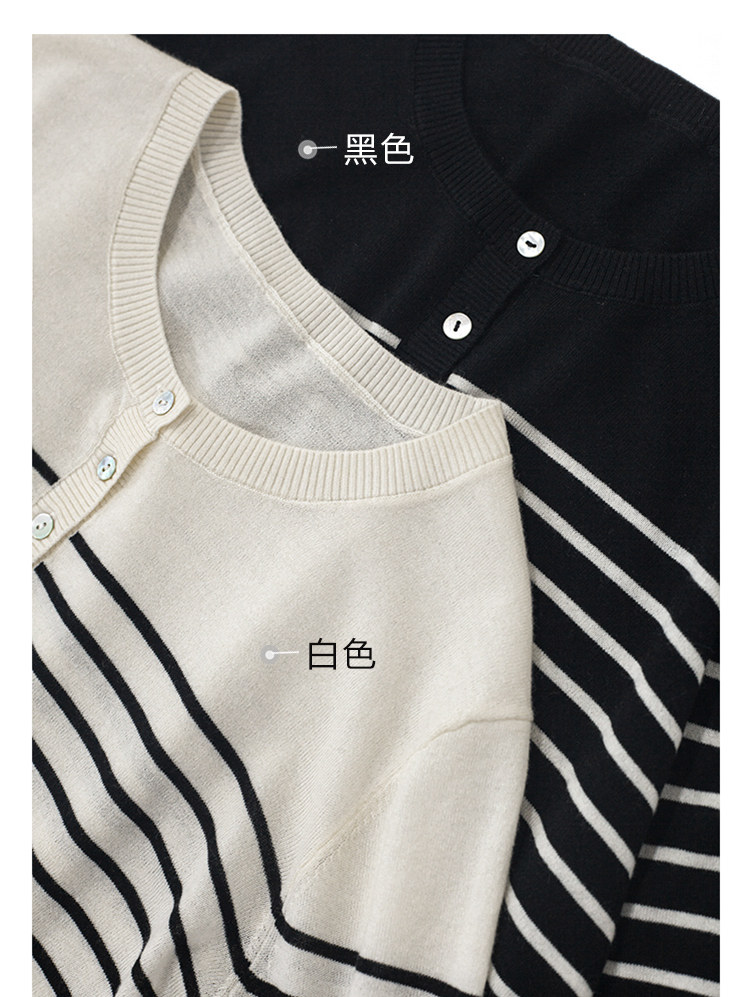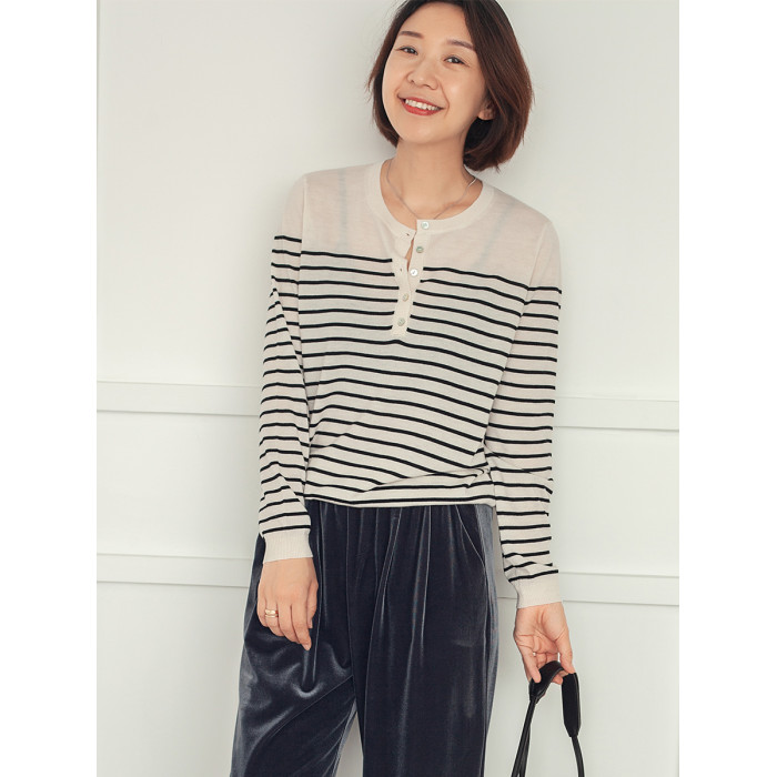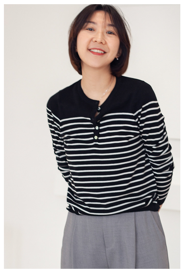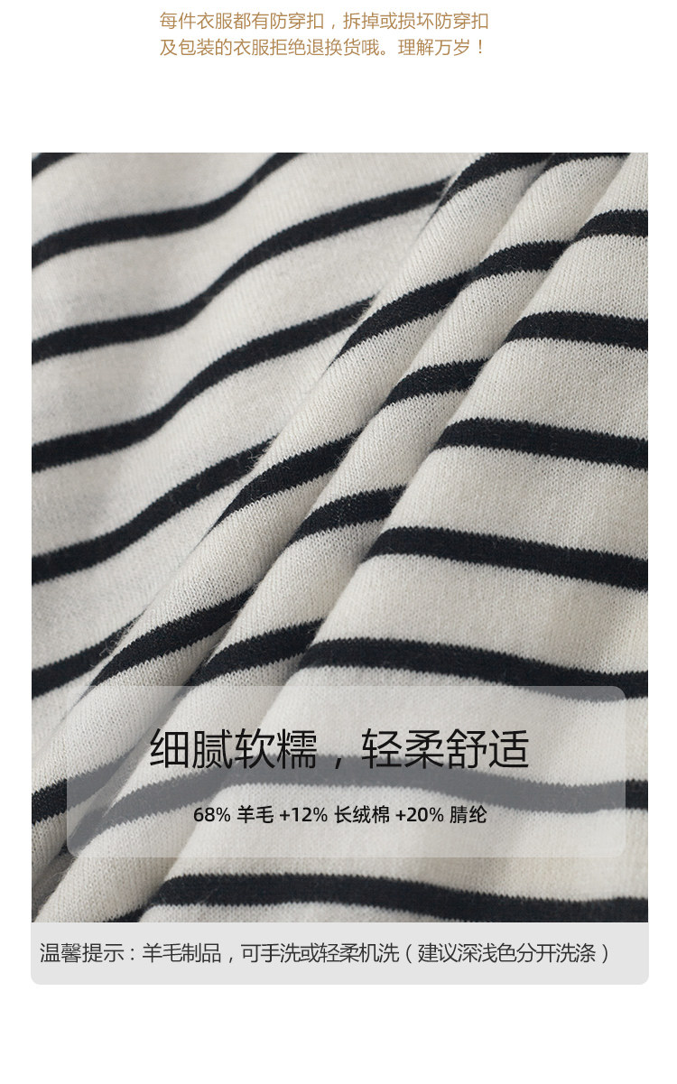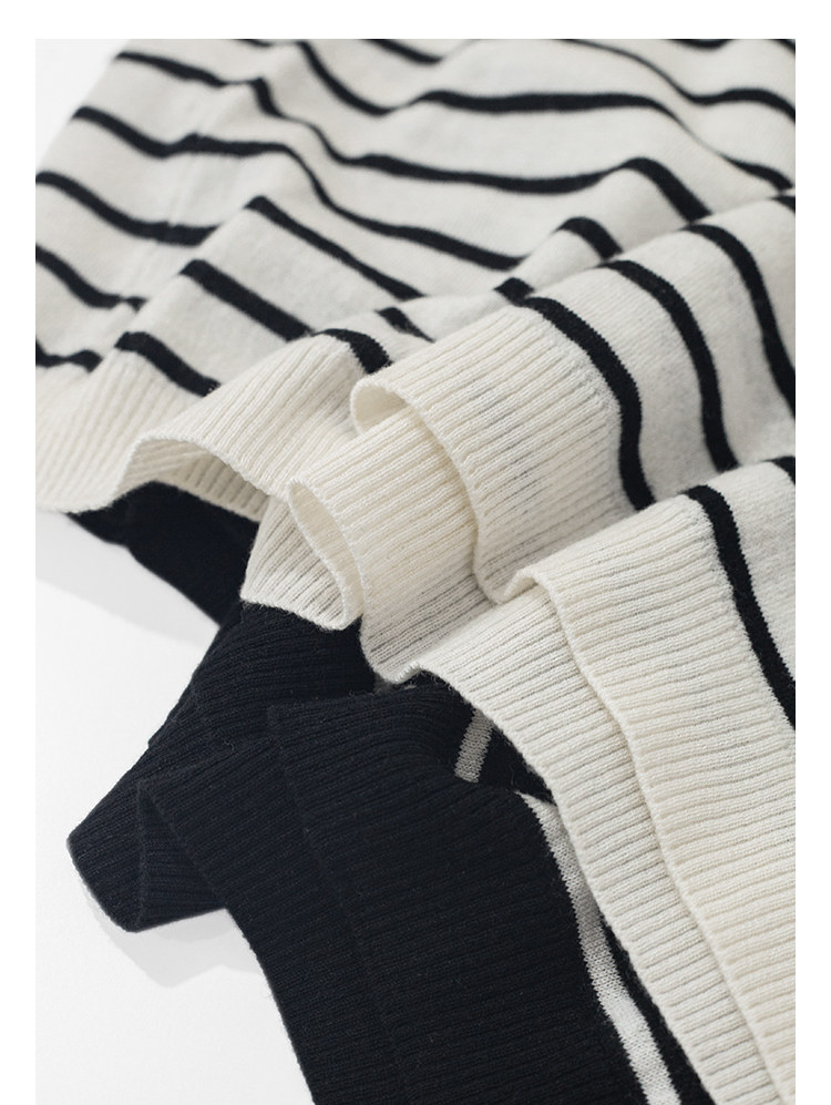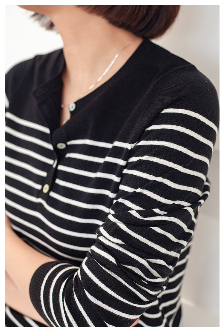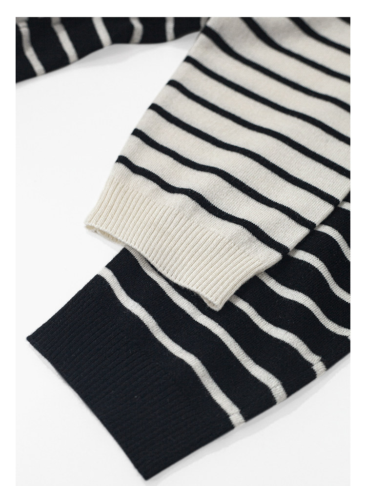 三吋時光3507經典條紋針織衫 黑白套頭圓領羊毛打底衫女春秋長袖