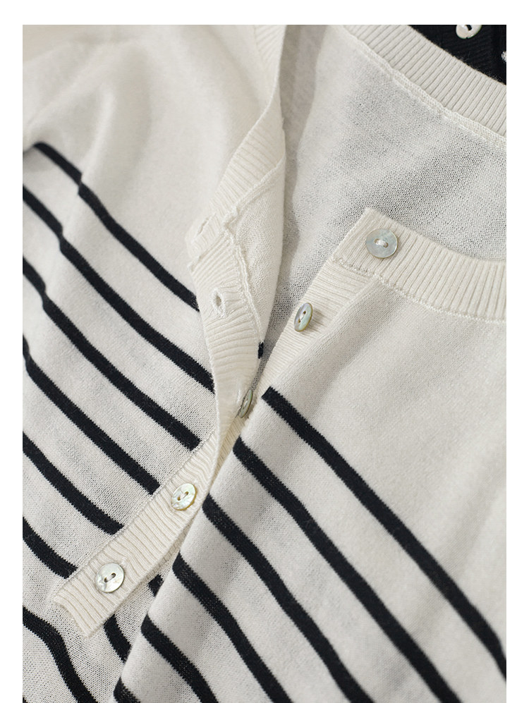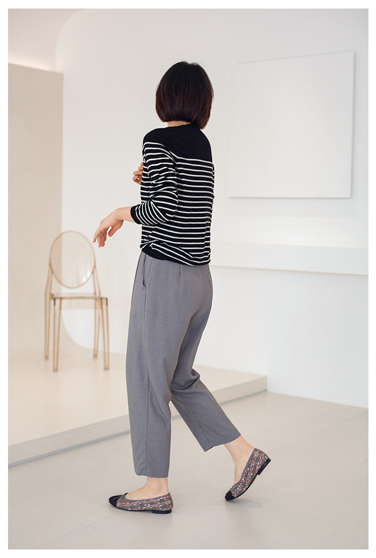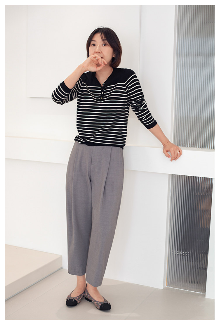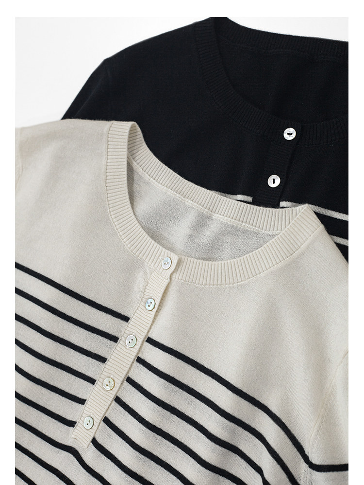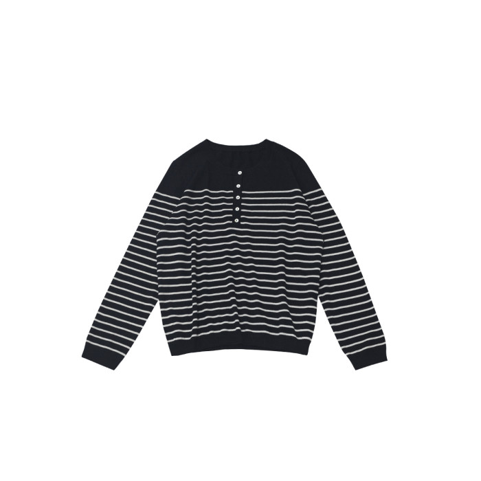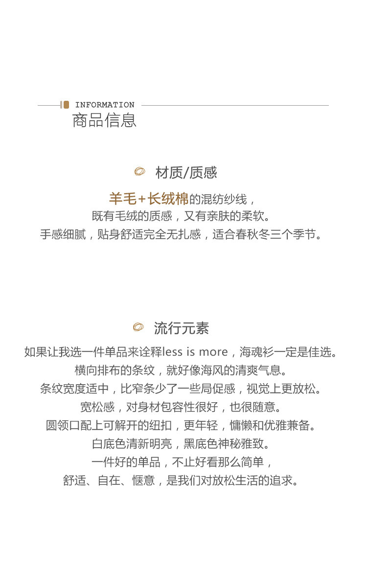 三吋時光3507經典條紋針織衫 黑白套頭圓領羊毛打底衫女春秋長袖