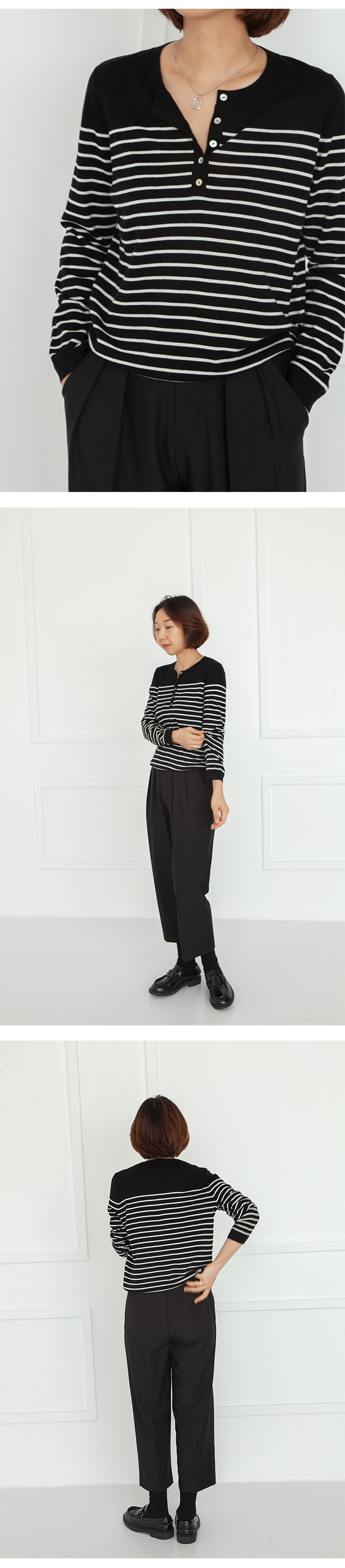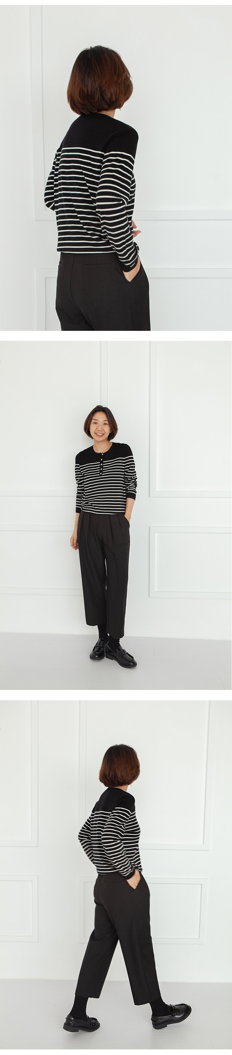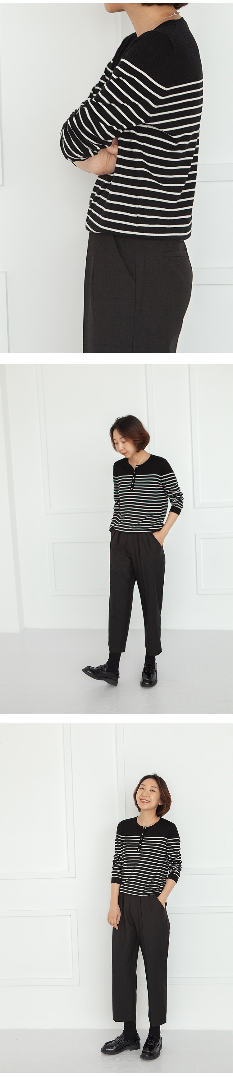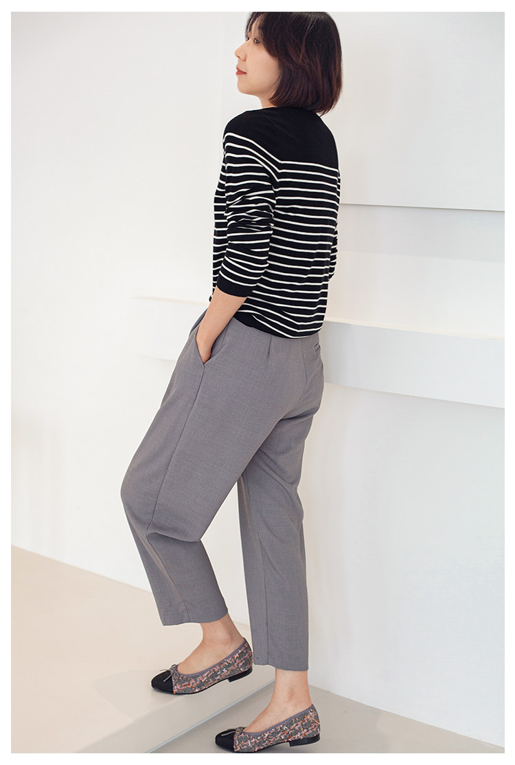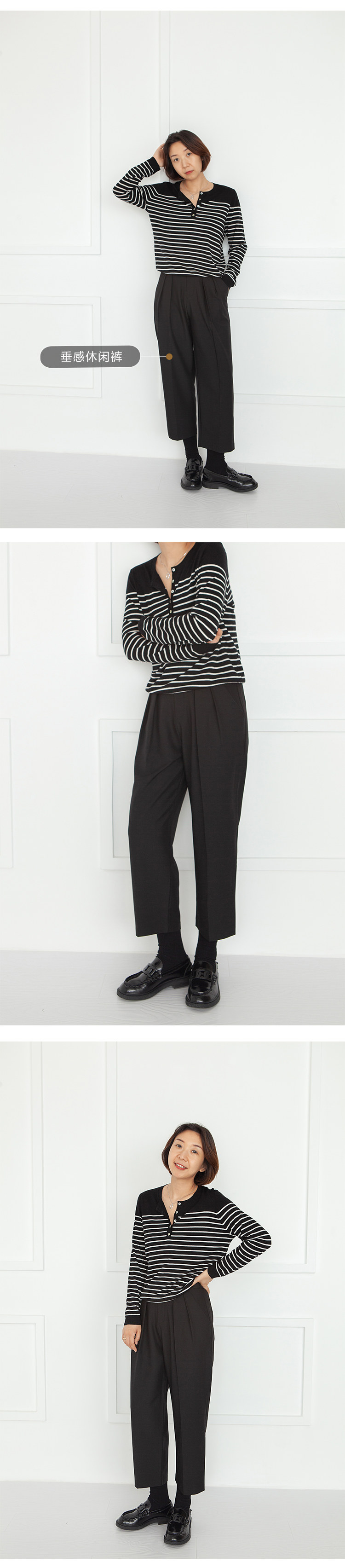 三吋時光3507經典條紋針織衫 黑白套頭圓領羊毛打底衫女春秋長袖