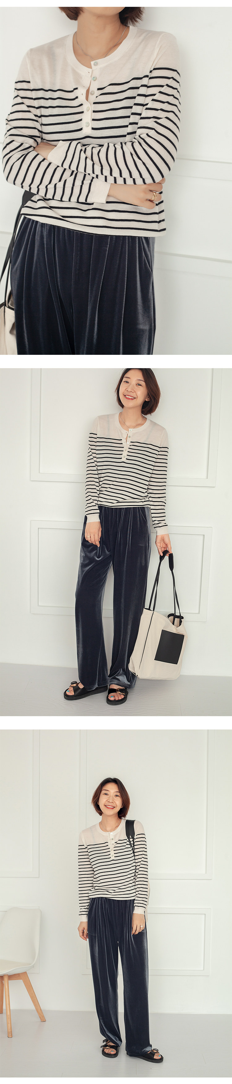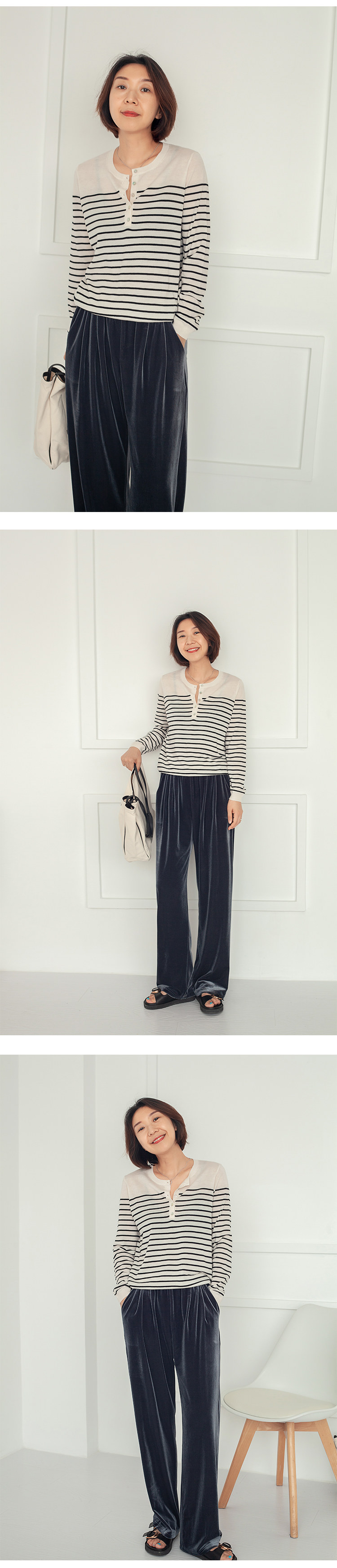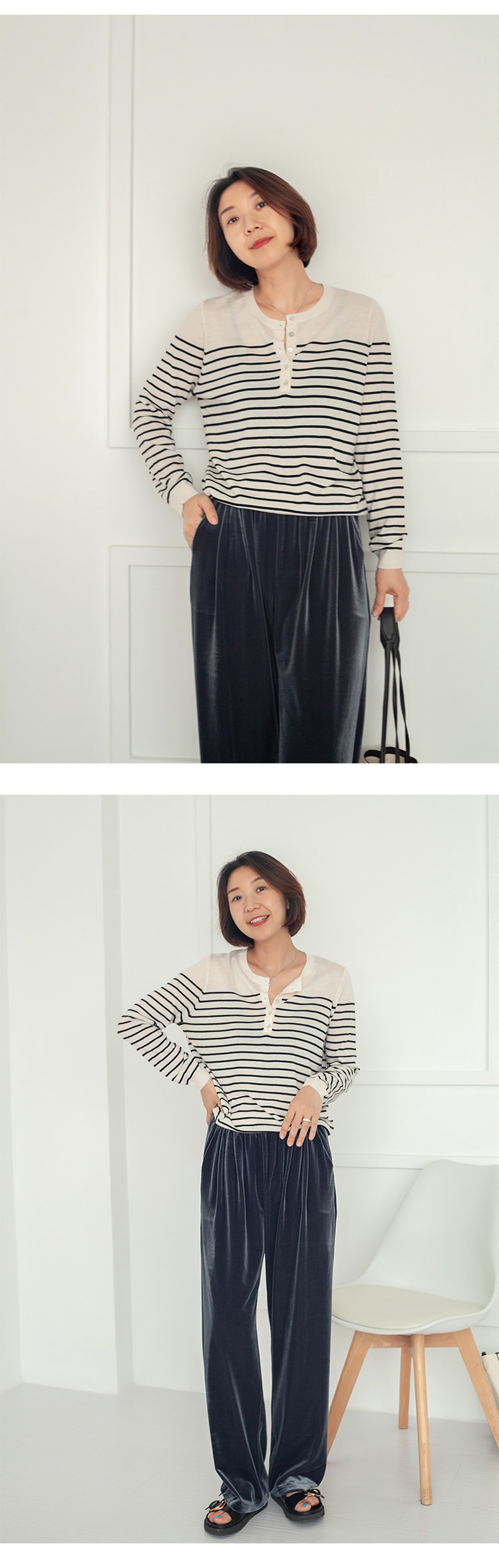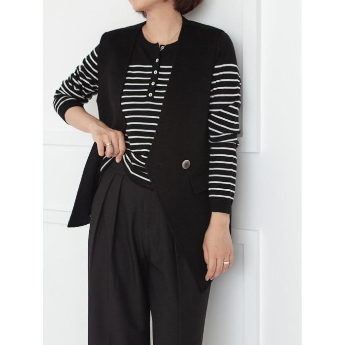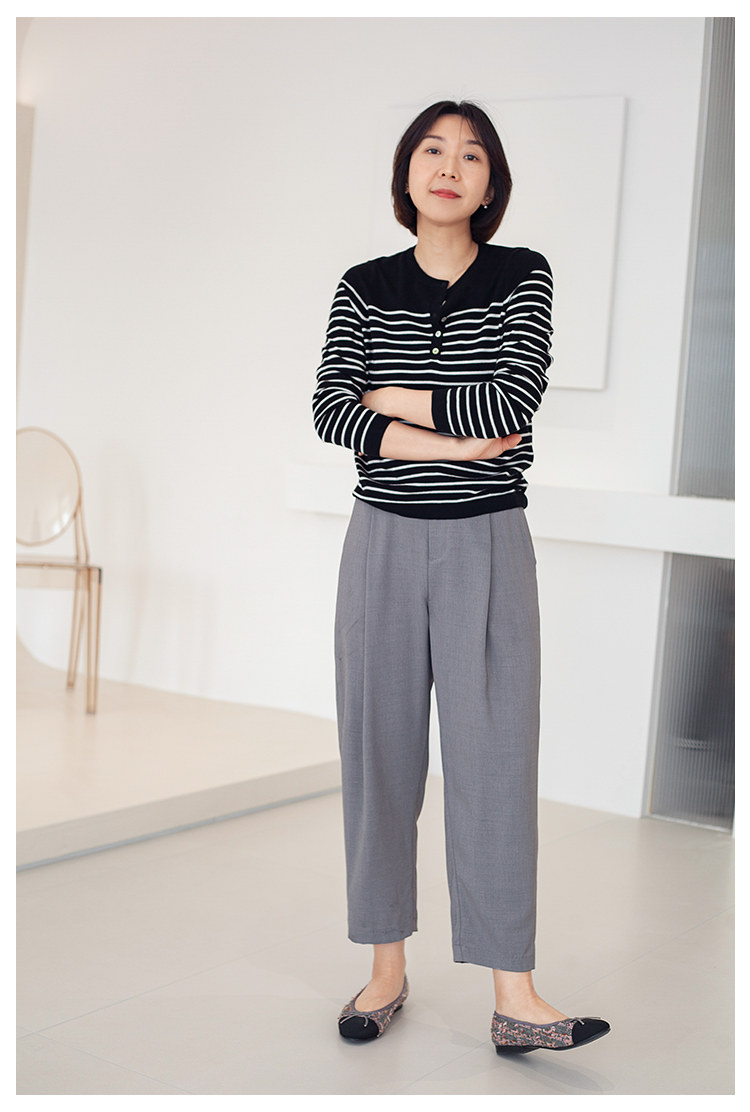 三吋時光3507經典條紋針織衫 黑白套頭圓領羊毛打底衫女春秋長袖
