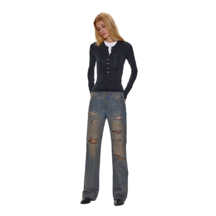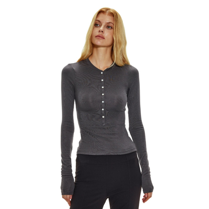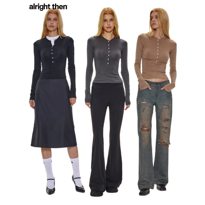 alright then亨利領羊毛修身打底衫貝殼釦顯瘦薄款長袖針織衫
