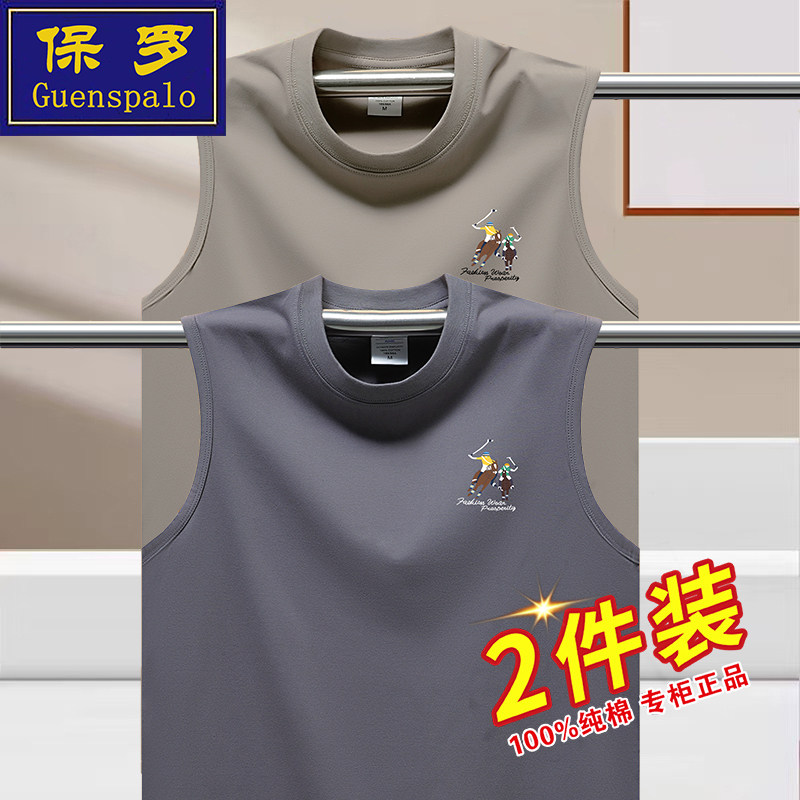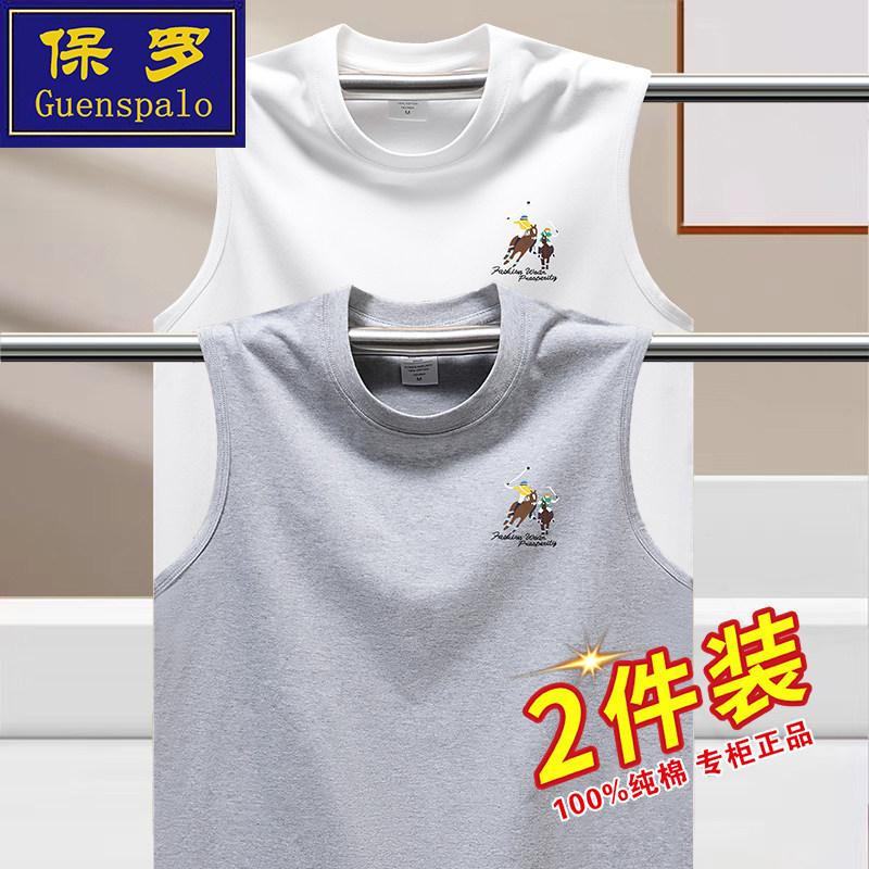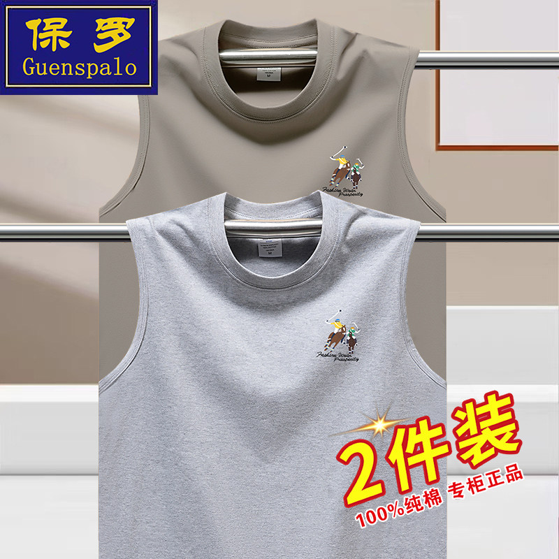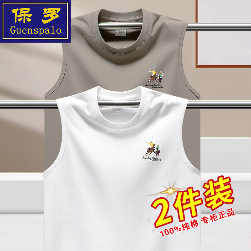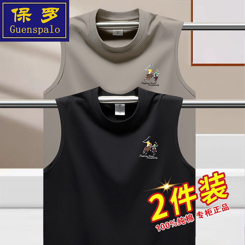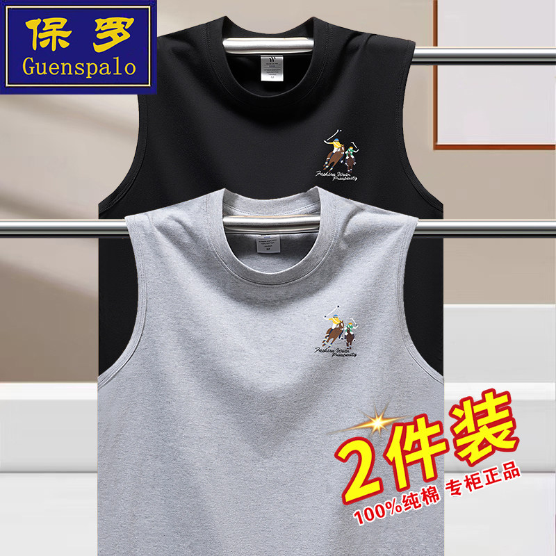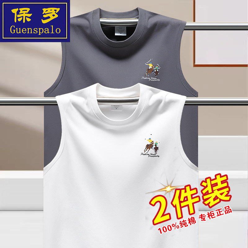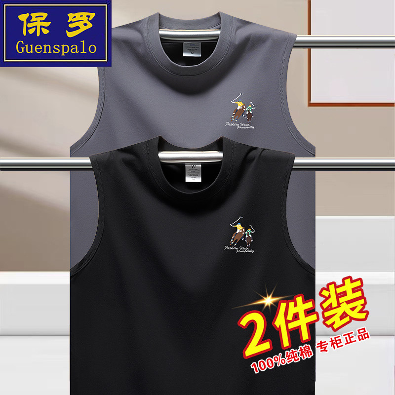 保羅純棉背心男款坎肩夏季薄款寬鬆休閒汗衫運動跨欄全棉無袖t恤