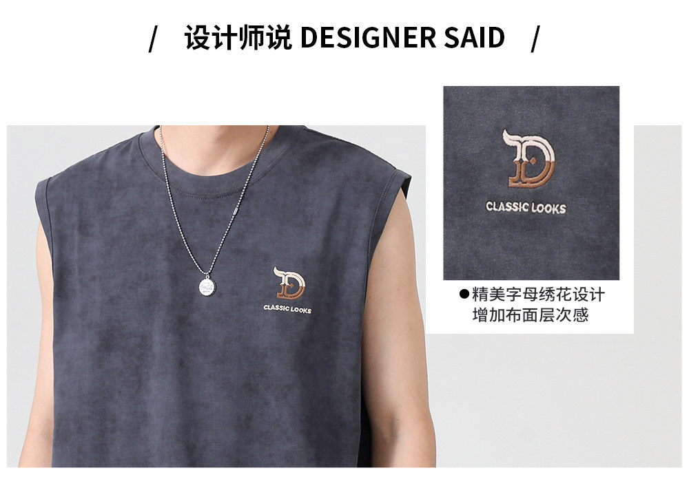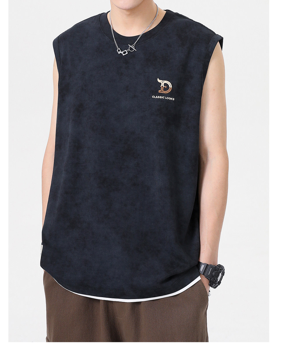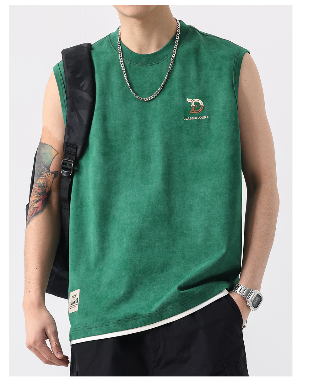 2025夏季新款美式高街背心男字母綉花寬鬆大碼休閒坎肩無袖T恤潮