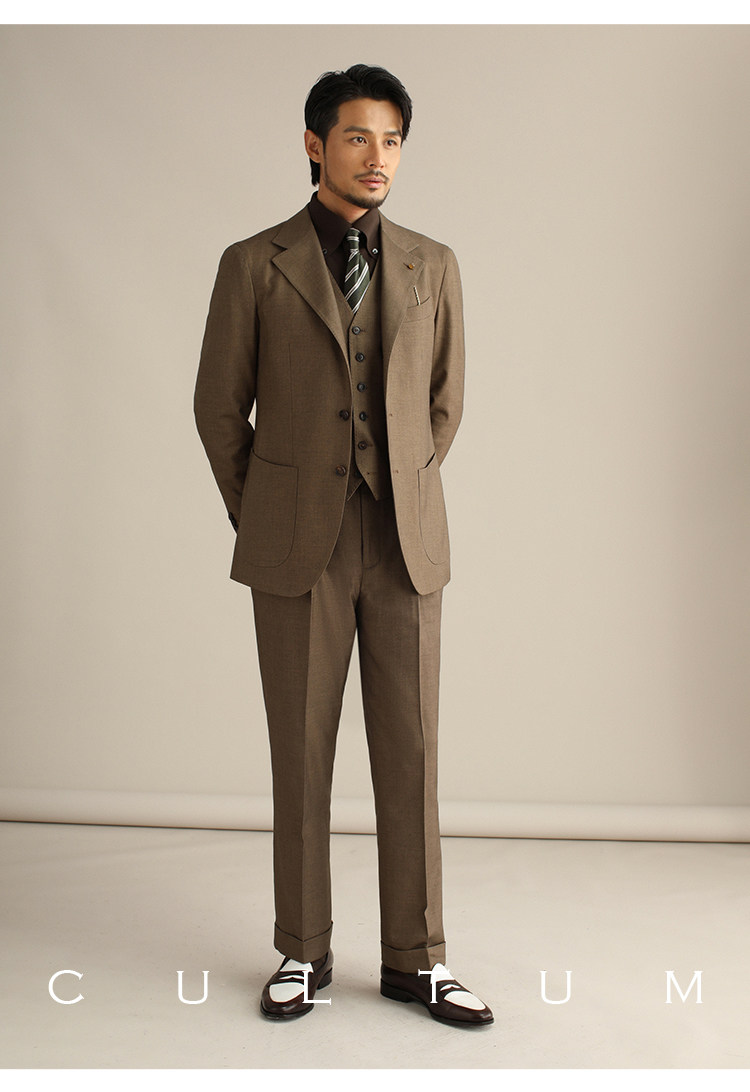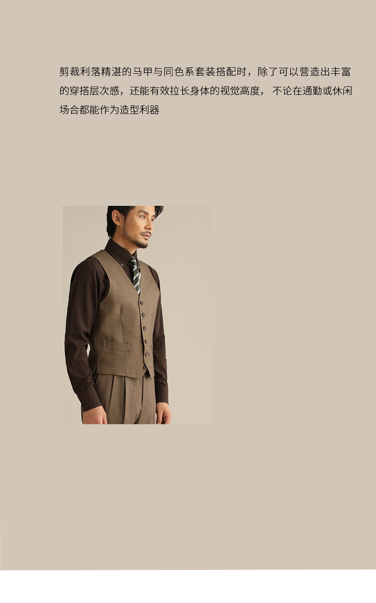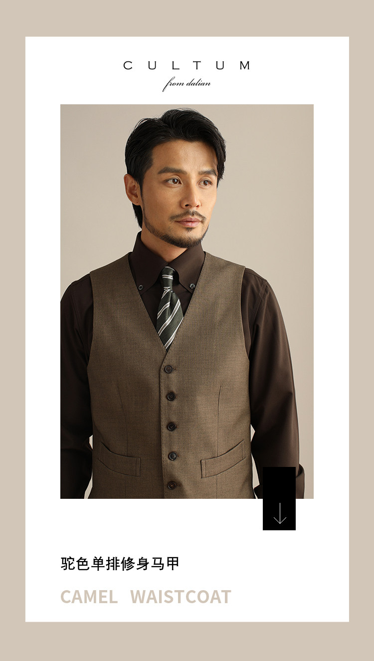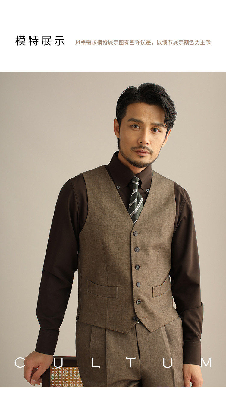 CULTUM單排六粒釦V領西裝馬甲男套裝側開衩修身商務正裝西服馬夾