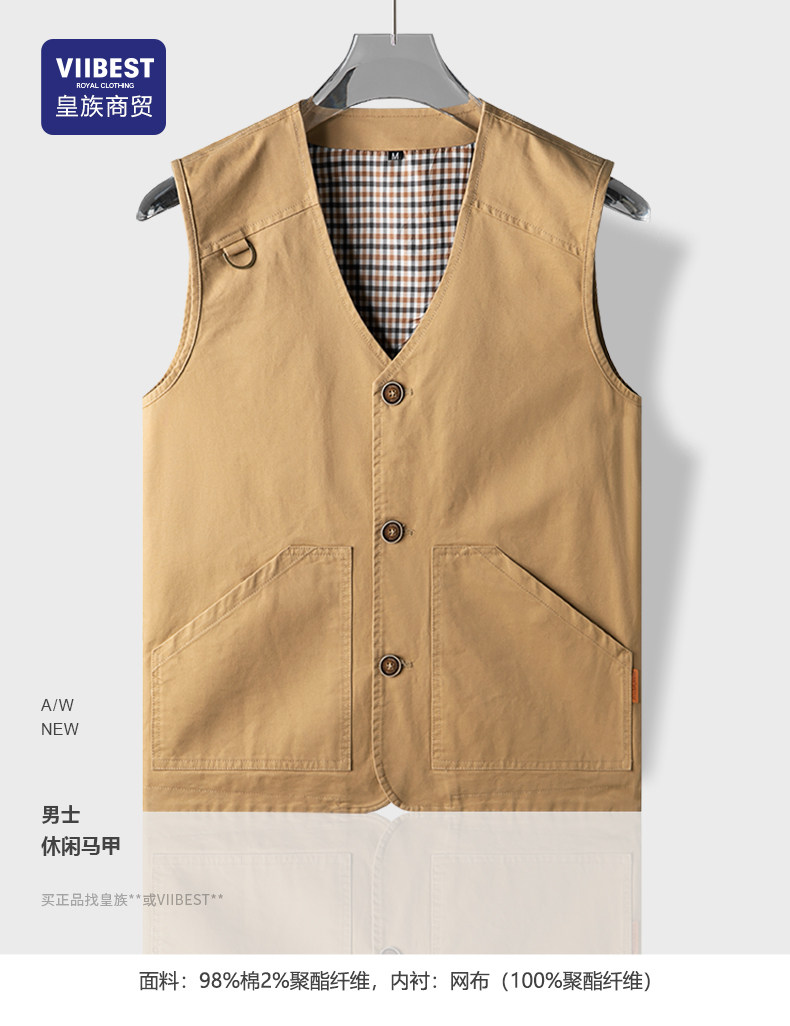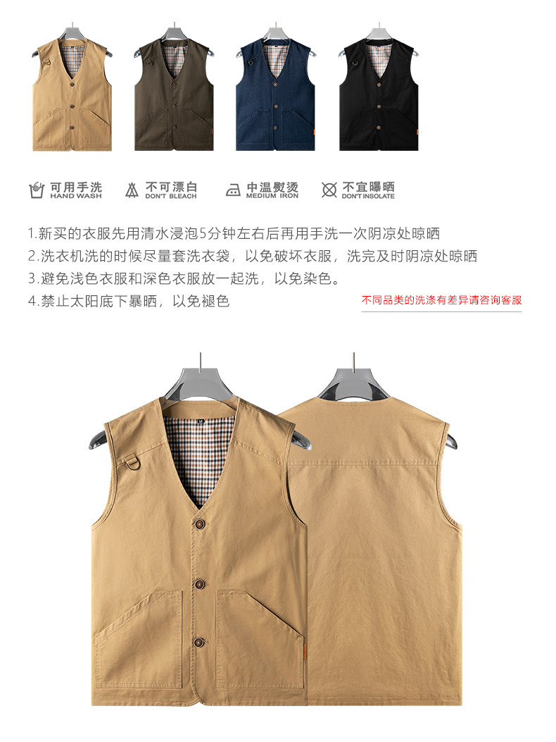 純棉帆布馬甲男多口袋拉鍊春夏季立領中青年爸爸裝夾坎肩戶外休閒
