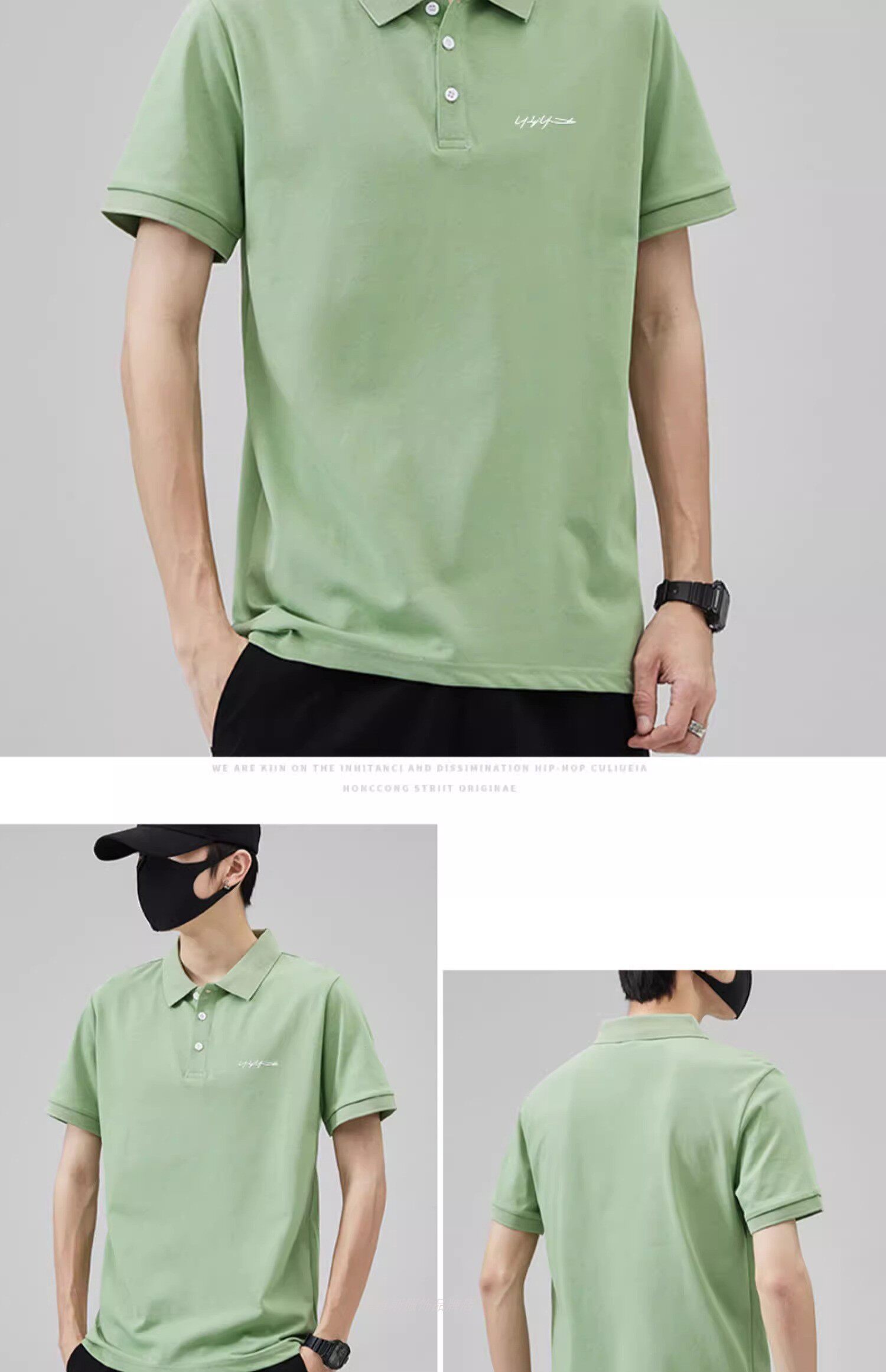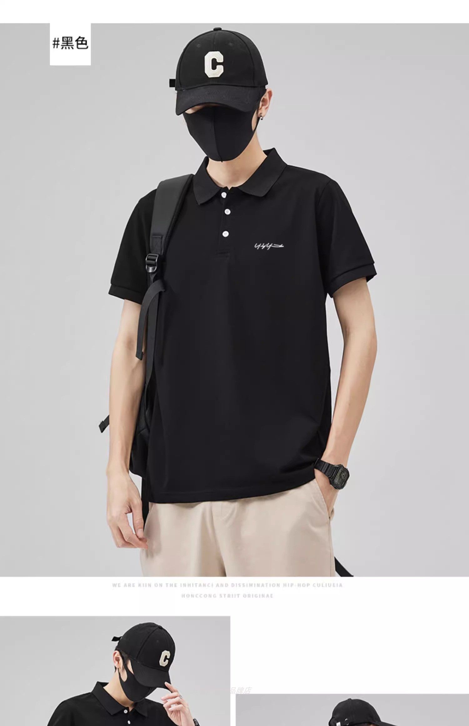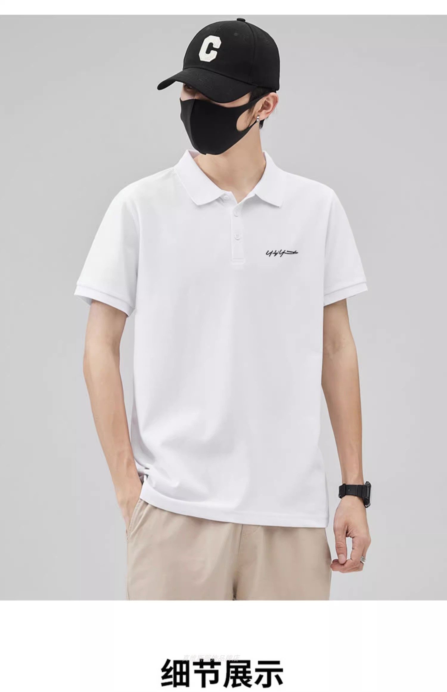 港風潮男生帥氣珠地棉繙領POLO衫男夏薄款體恤上衣短袖t