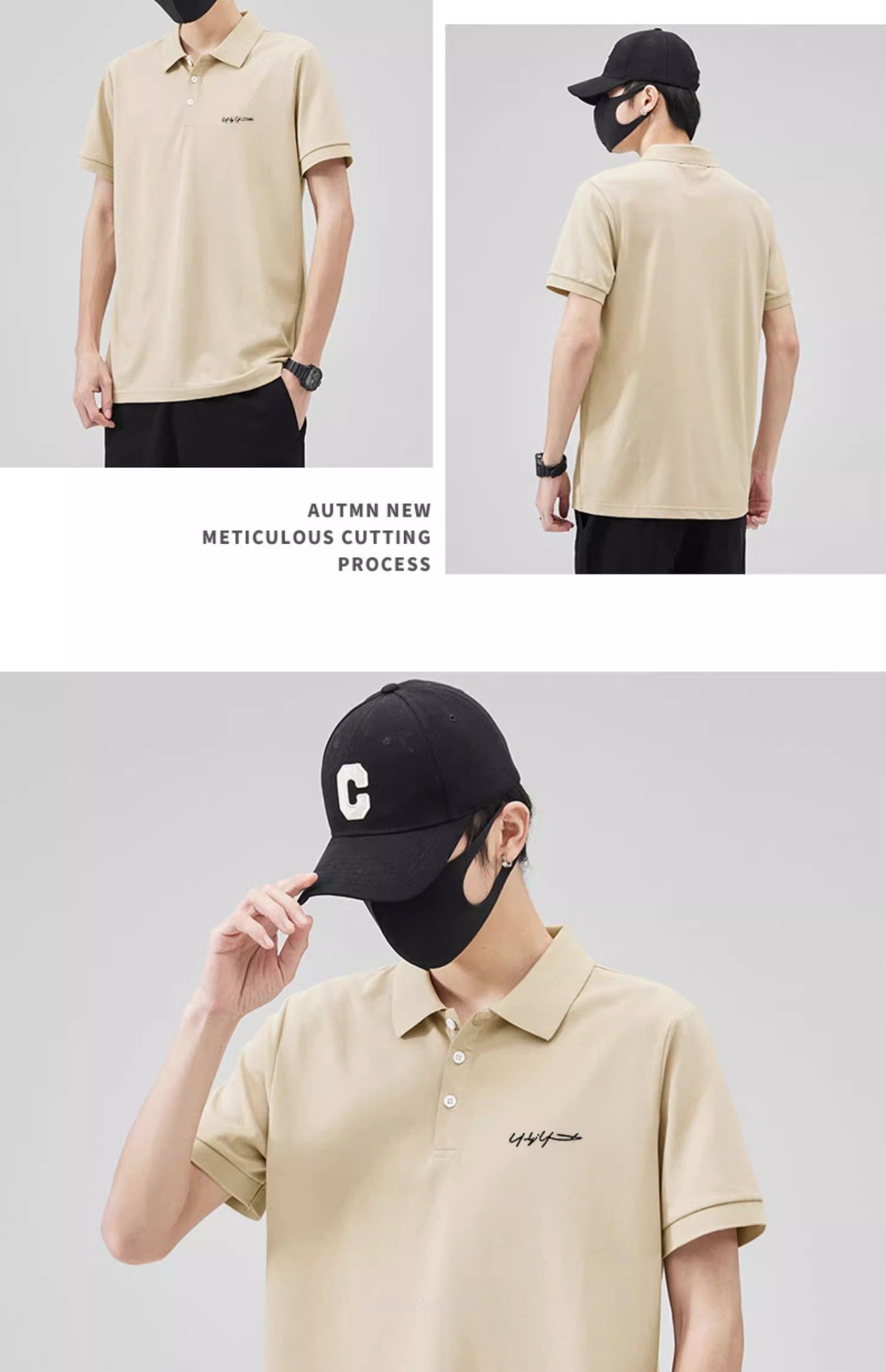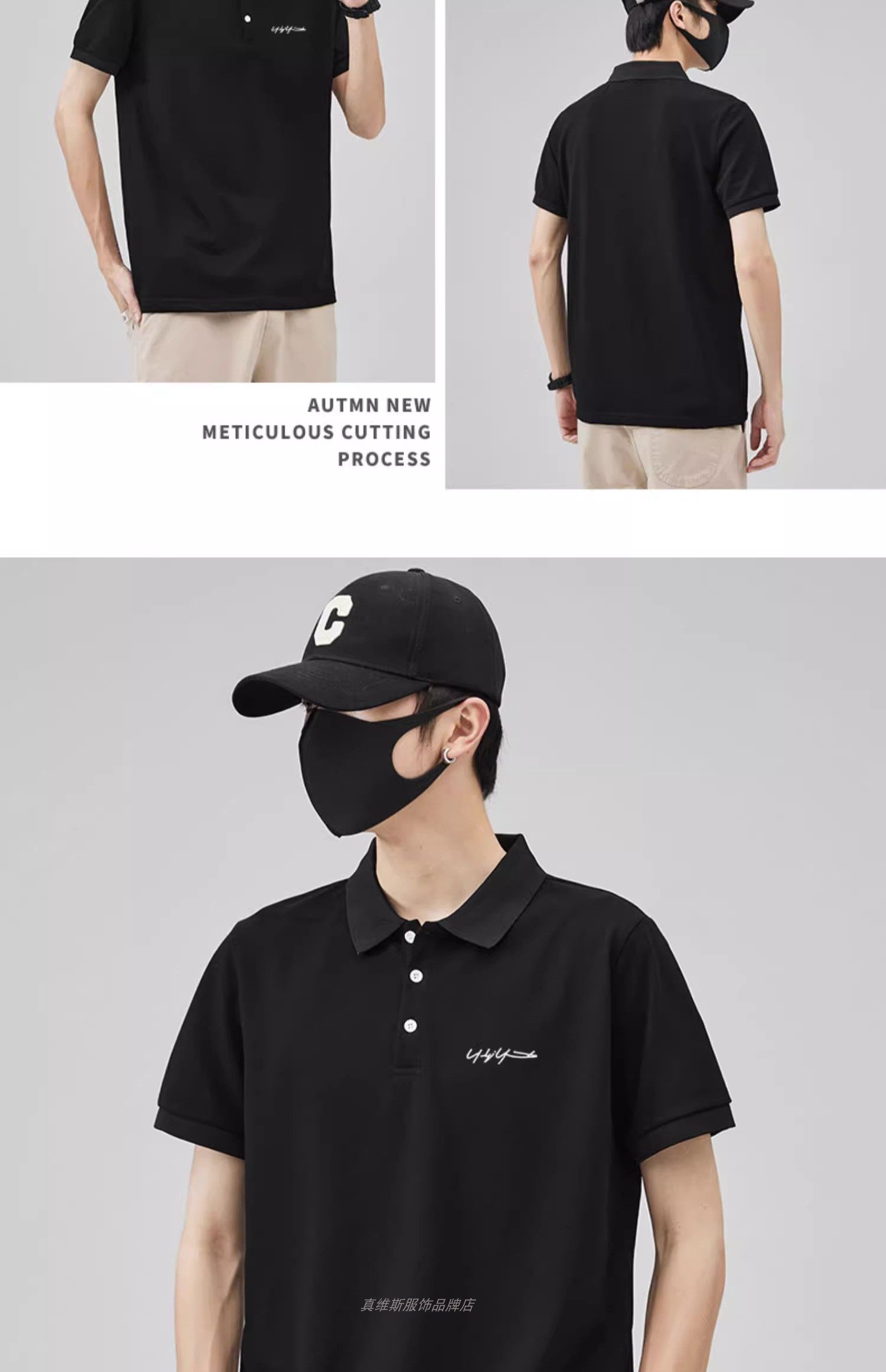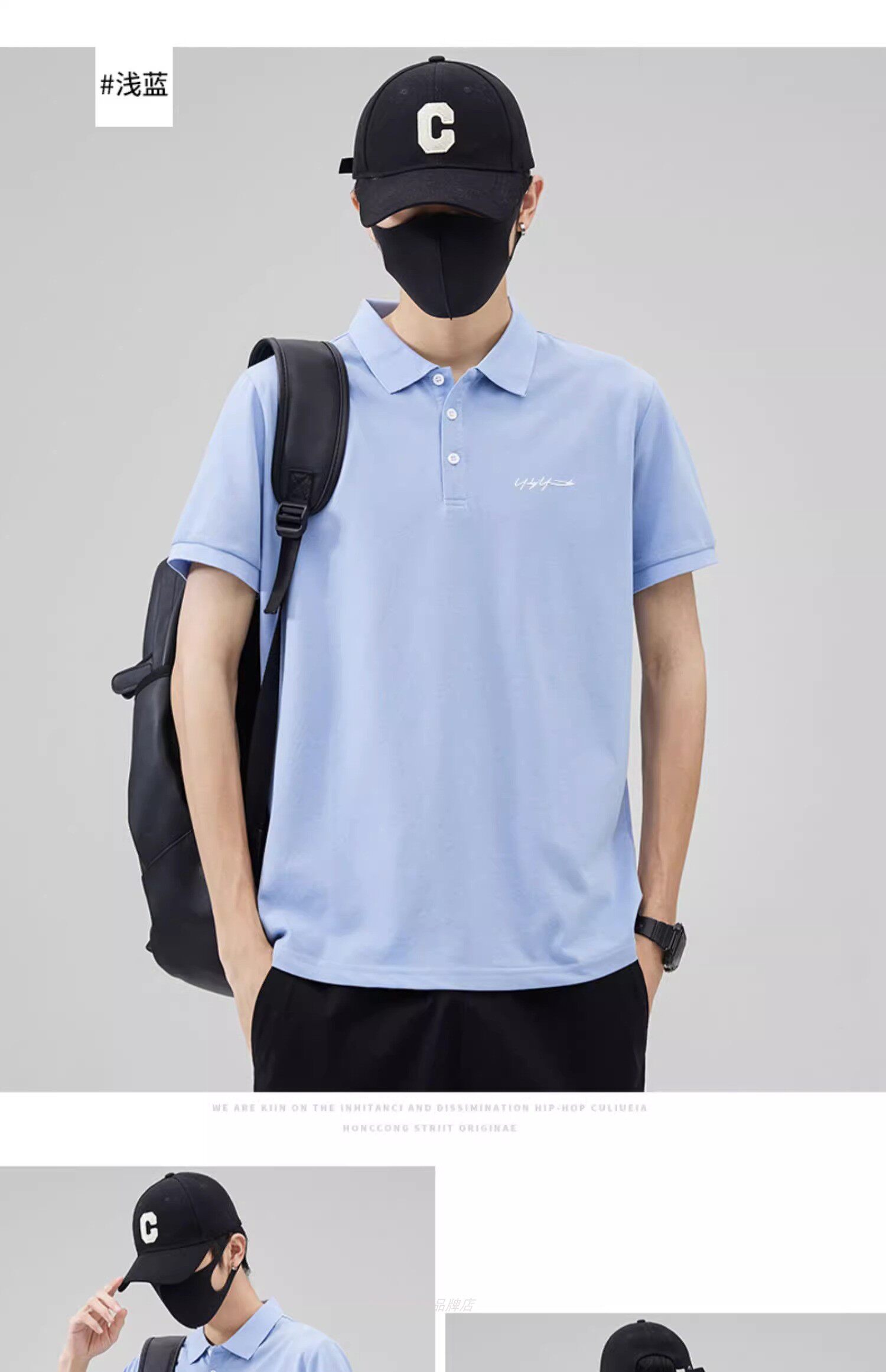 港風潮男生帥氣珠地棉繙領POLO衫男夏薄款體恤上衣短袖t