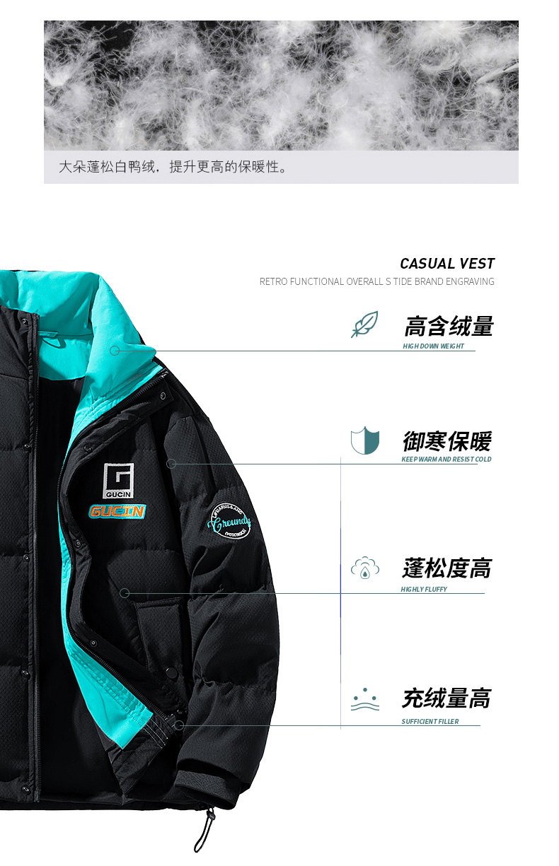 WASSUP Nuraya潮牌2024秋冬新款短款輕薄保暖羽絨服男士立領外套