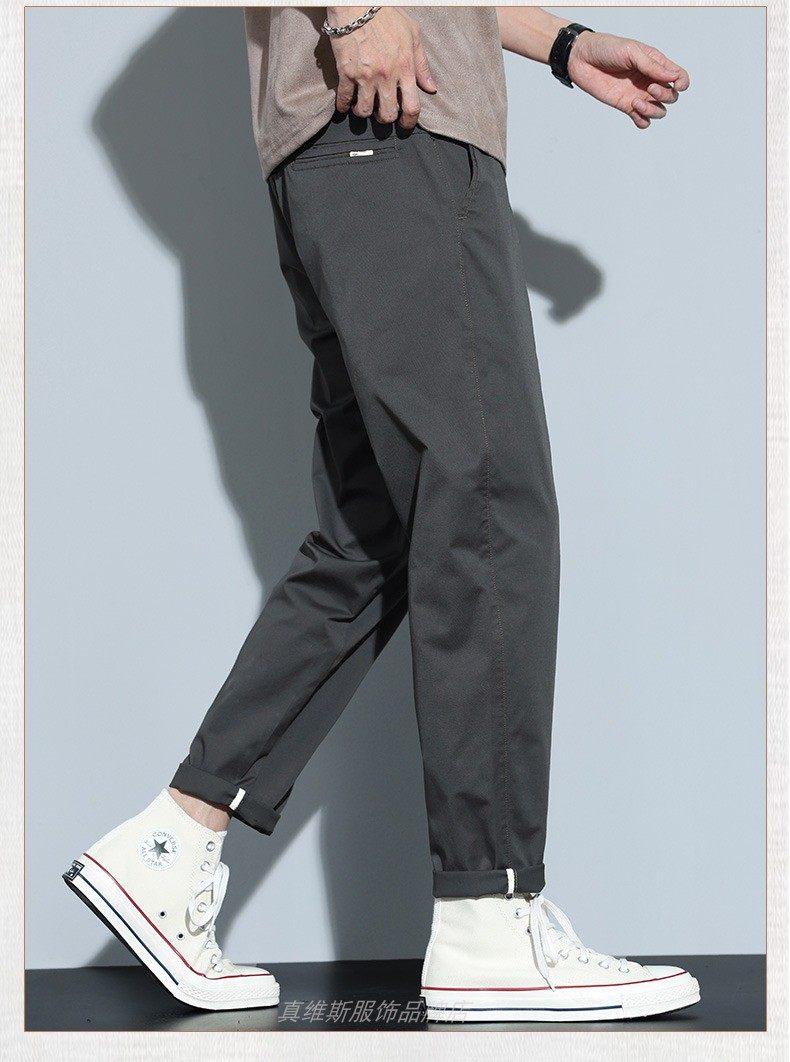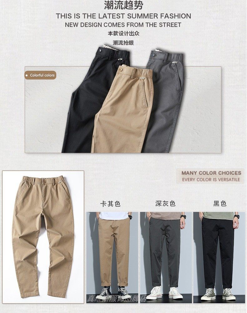 夏季薄款純棉休閒褲男款寬鬆直筒長褲子春秋日系高級感男