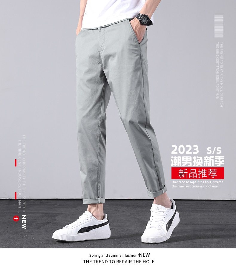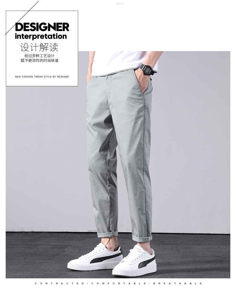 工裝休閒褲男士夏季速乾百搭直筒冰絲潮流薄款修身九分褲