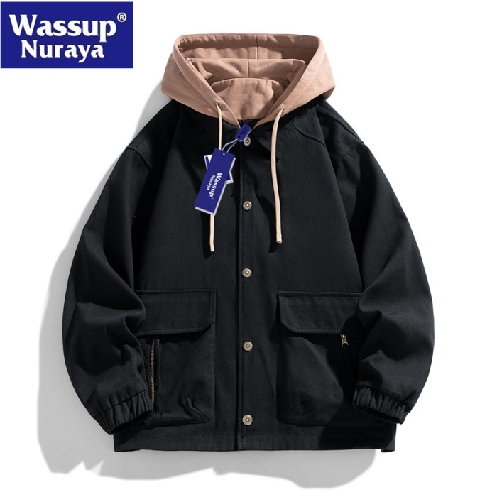 WASSUP Nuraya潮牌假兩件外套男春秋季寬鬆休閒百搭夾克情侶上款
