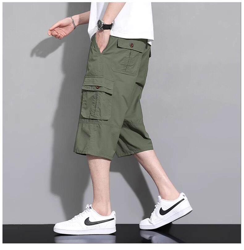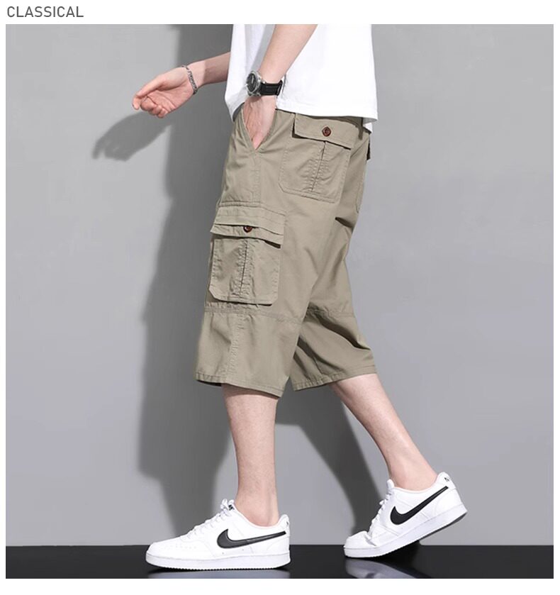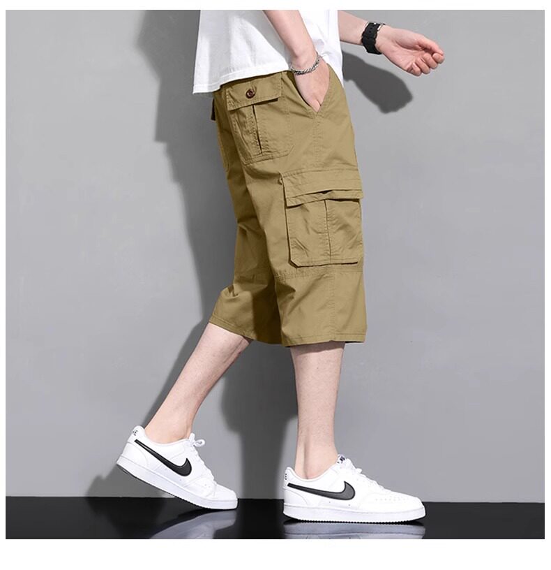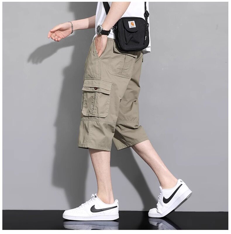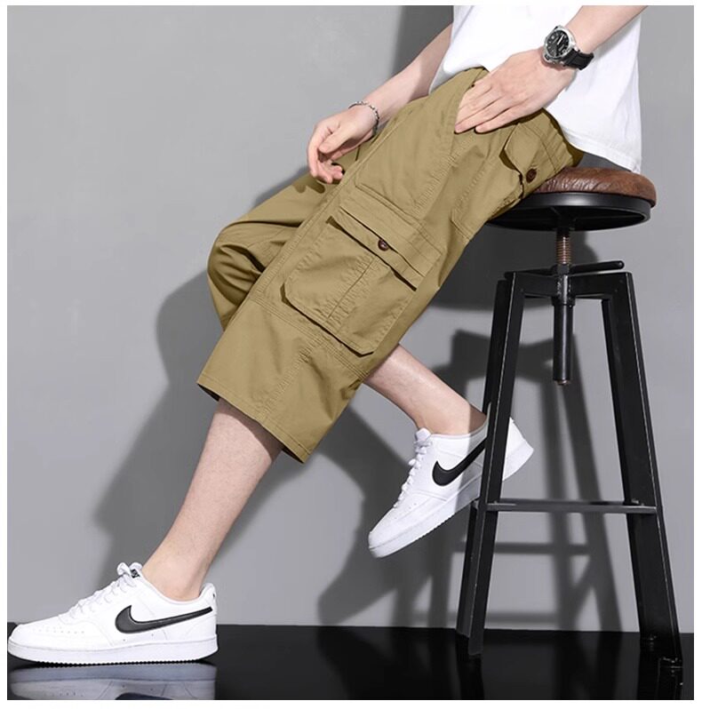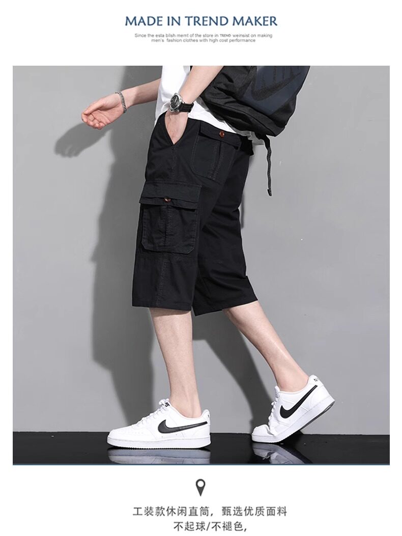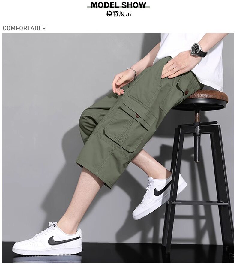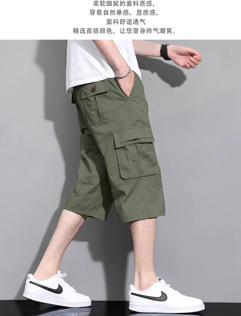 啄木鳥工裝純棉七分褲男士夏季薄款2026新款休閒過膝爸爸短褲子K