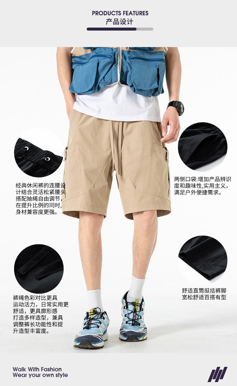 WASSUP NURAYA工裝短褲男透氣2025年夏季寬鬆直筒休閒冰絲五分褲