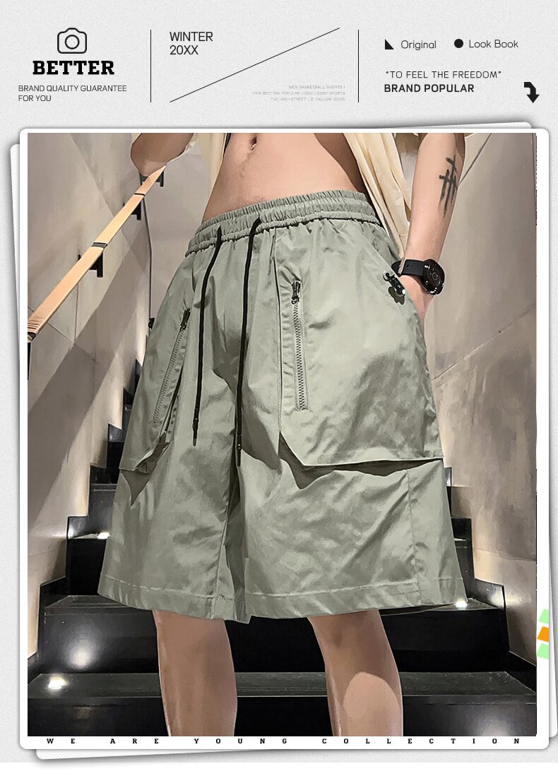 WASSUP NURAYA美式工裝短褲立體大口袋五分休閒運動褲男夏季中褲