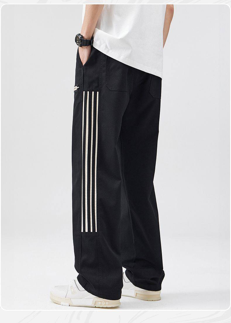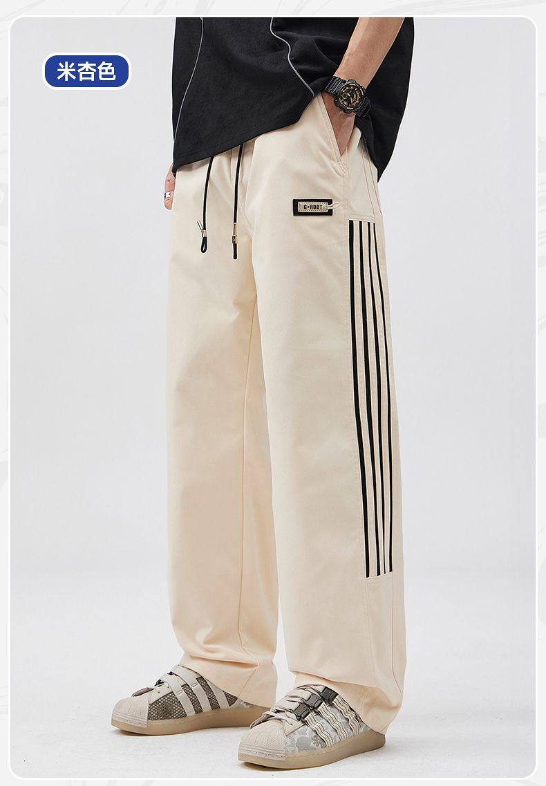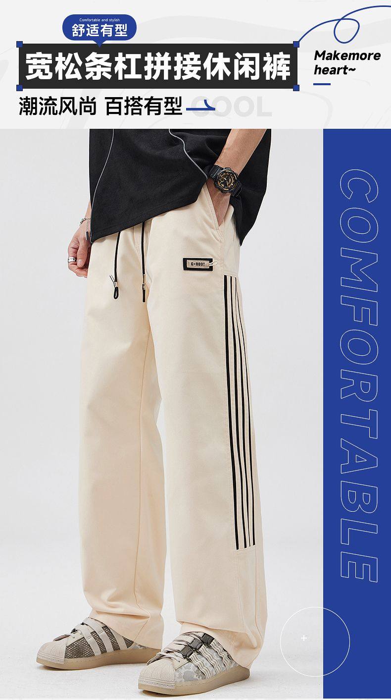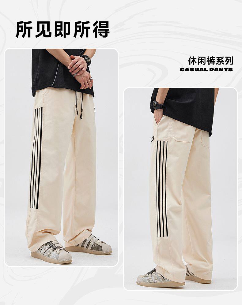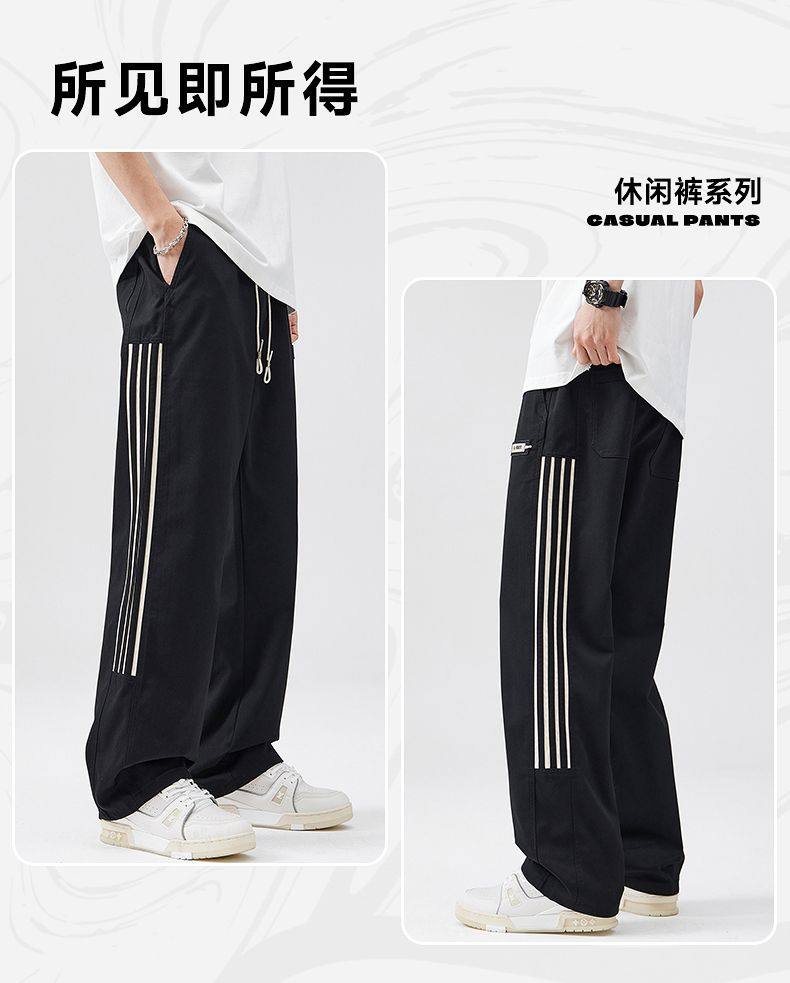 2025春季新款休閒褲男美式高街vibe風三條杠寬鬆直筒運動褲