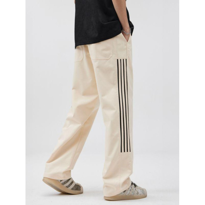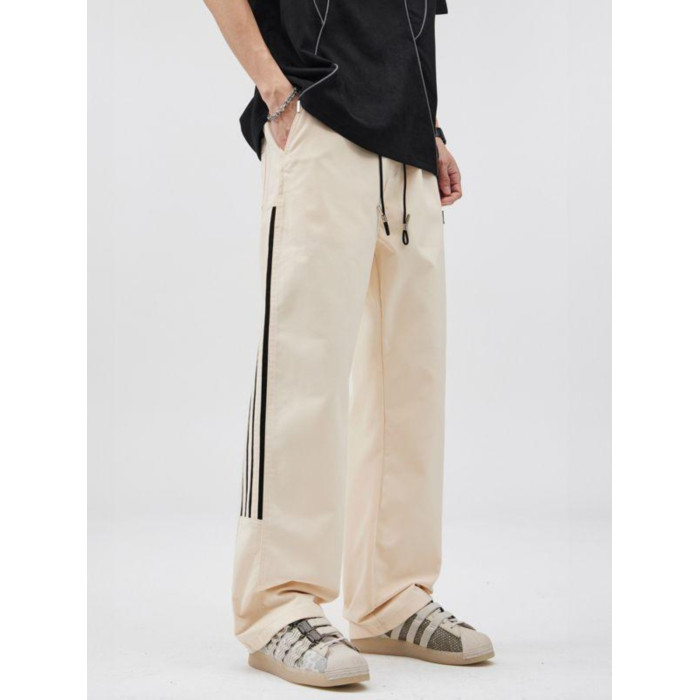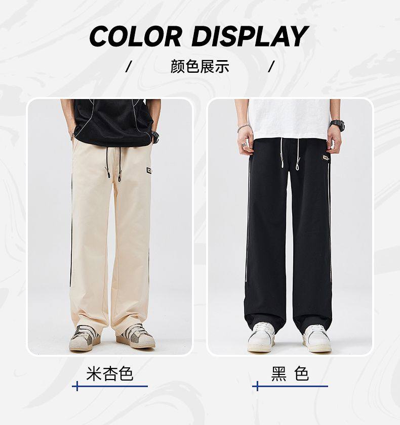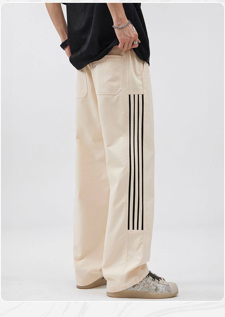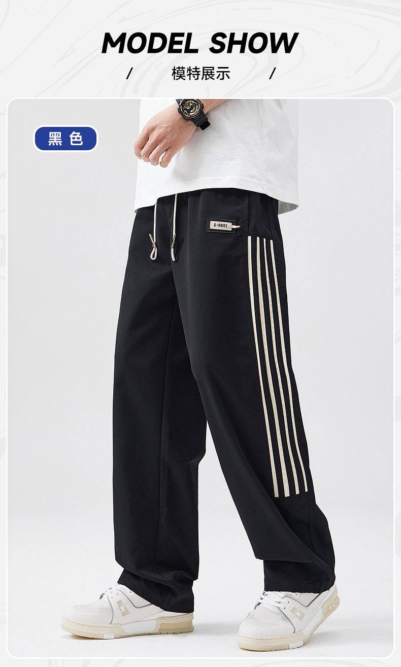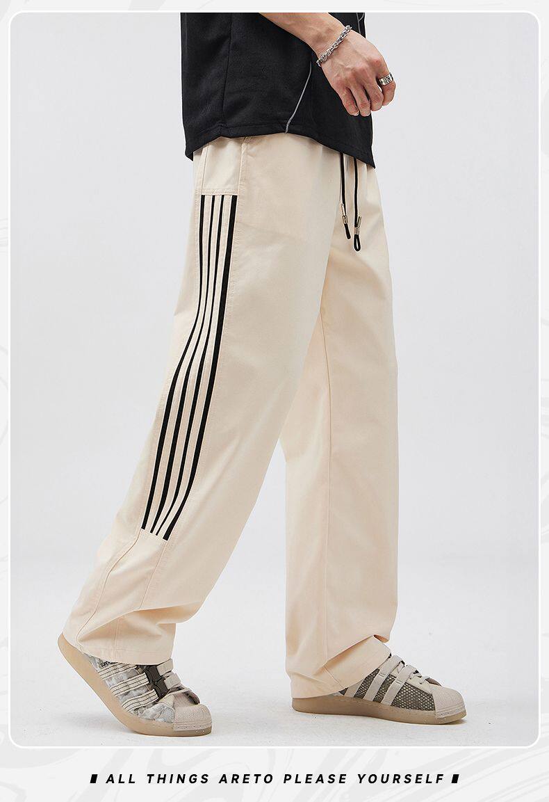 2025春季新款休閒褲男美式高街vibe風三條杠寬鬆直筒運動褲