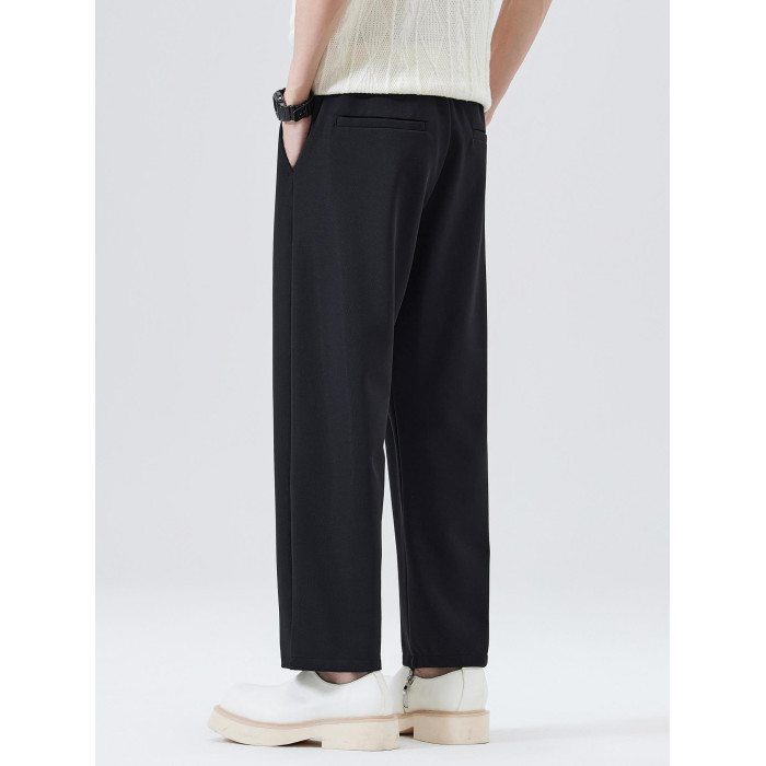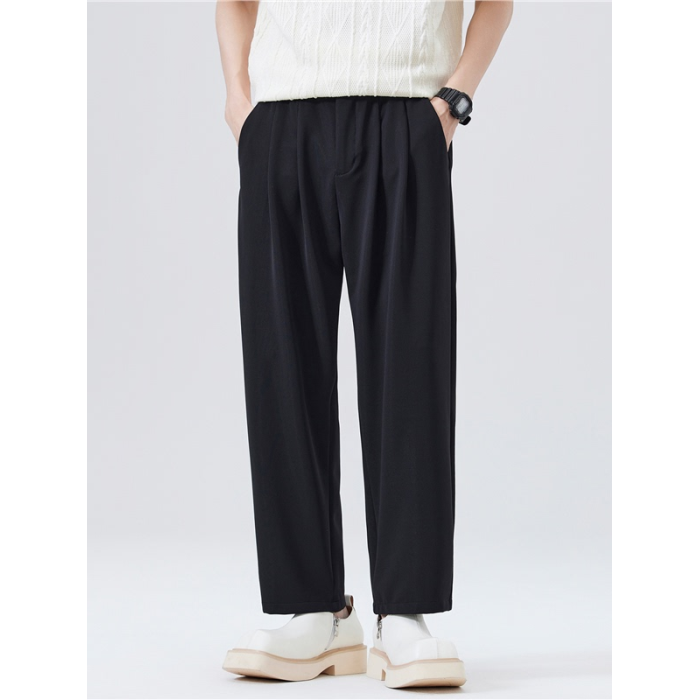 日系夏季薄款九分休閒褲男士2026新款垂感寬鬆冰絲西褲男生褲子
