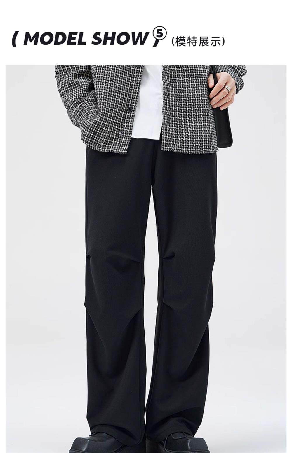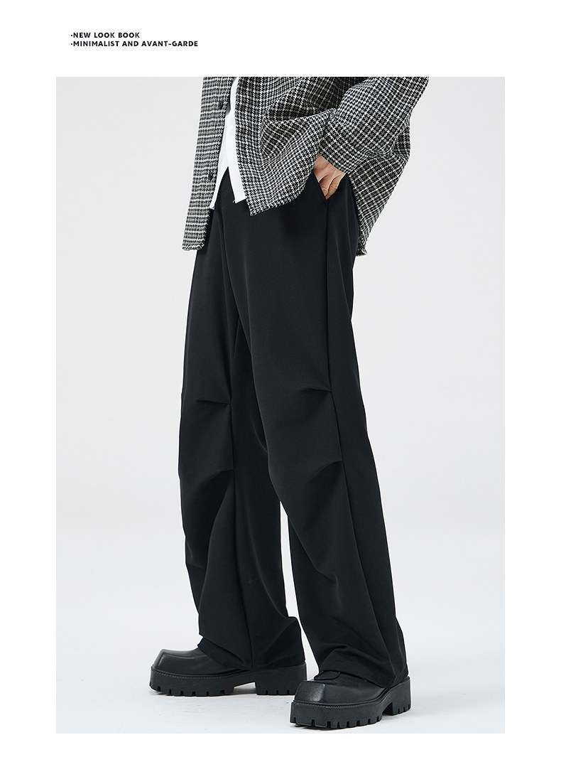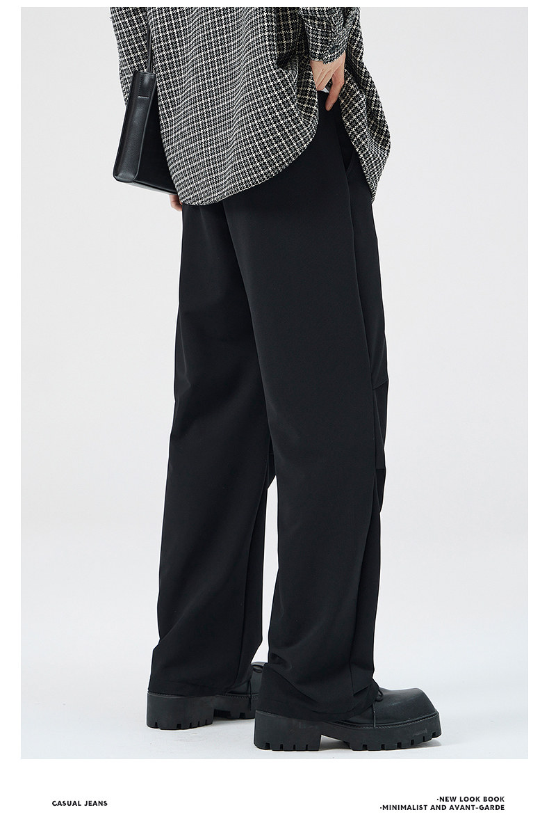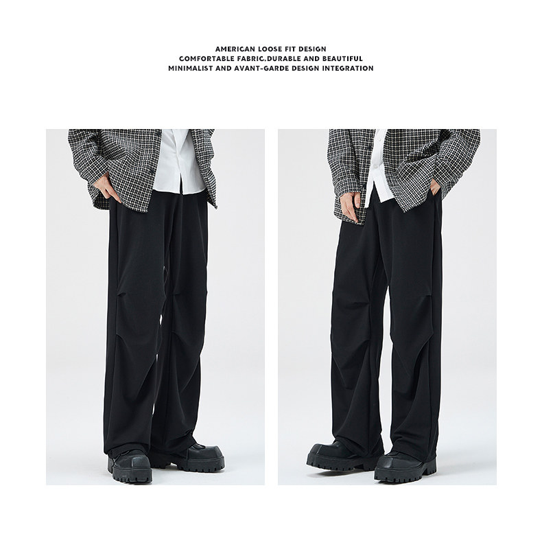 黑色直筒休閒褲子男秋季濶腿寬鬆直筒垂感美式傘兵褲西裝褲