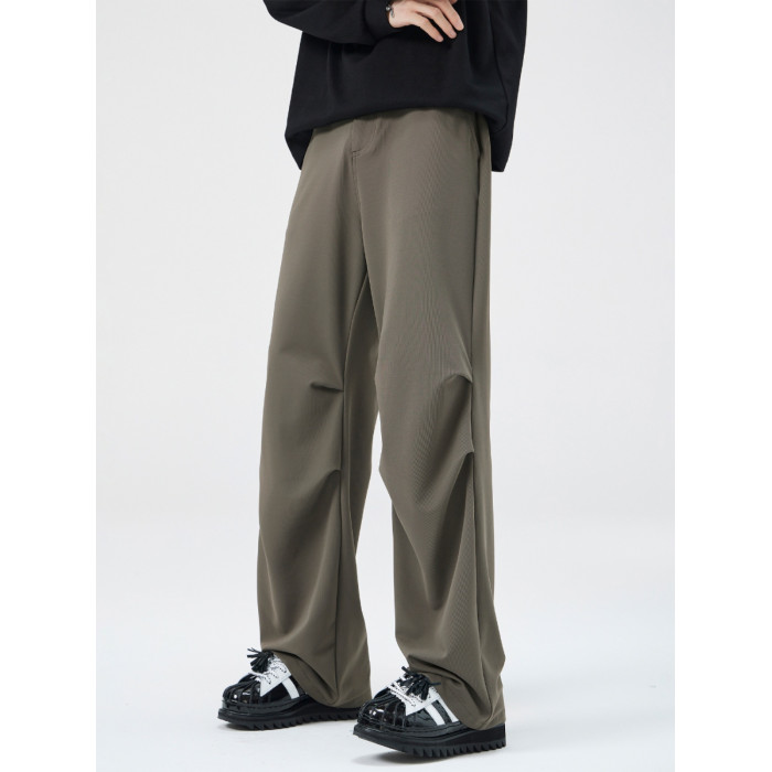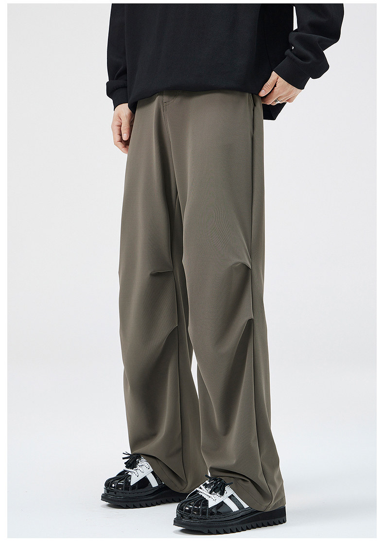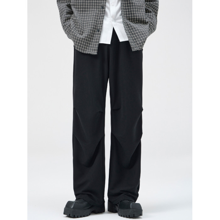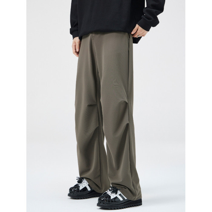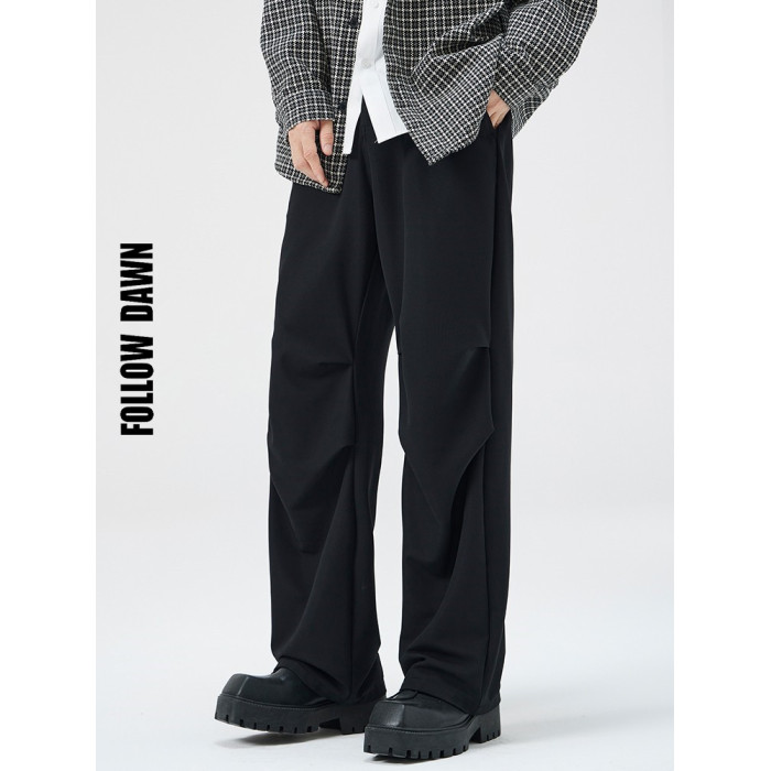黑色直筒休閒褲子男秋季濶腿寬鬆直筒垂感美式傘兵褲西裝褲