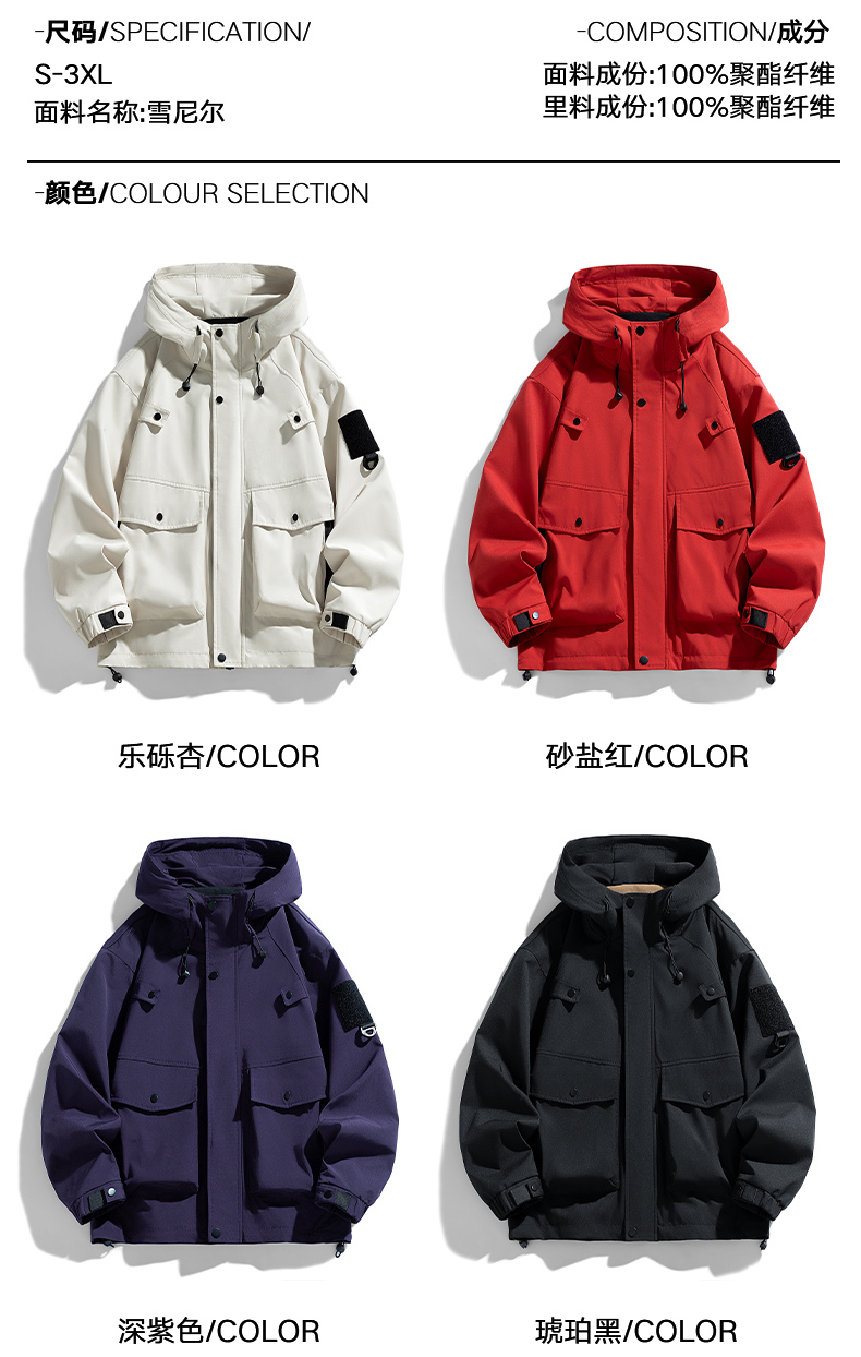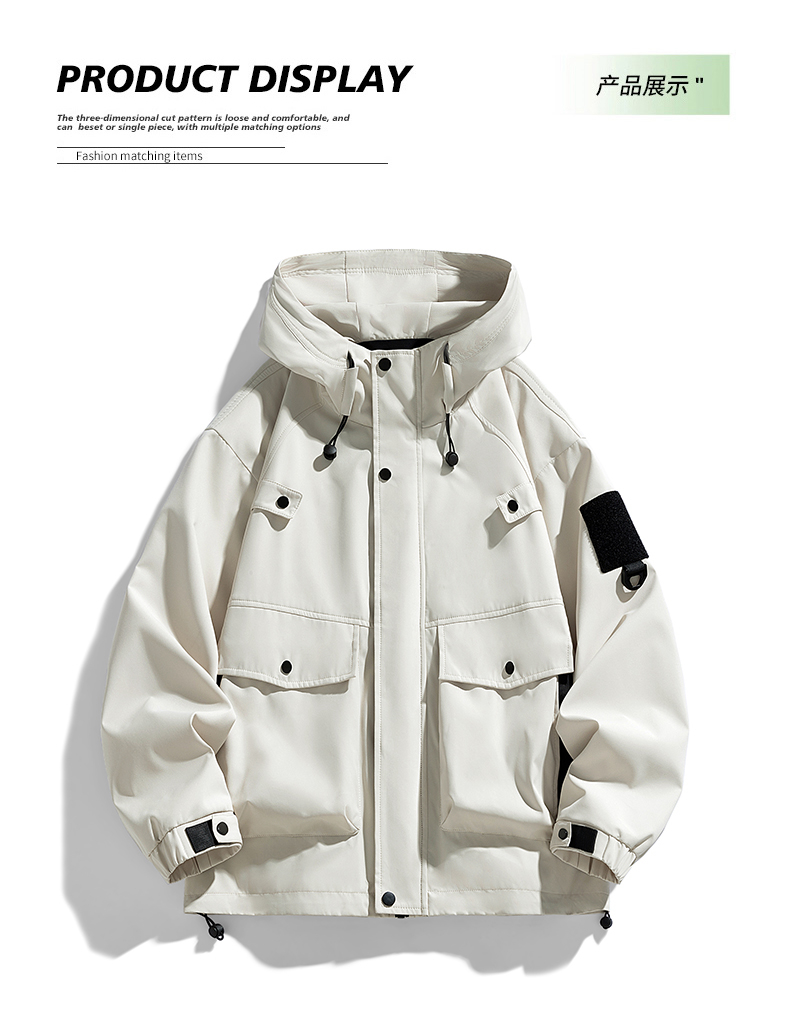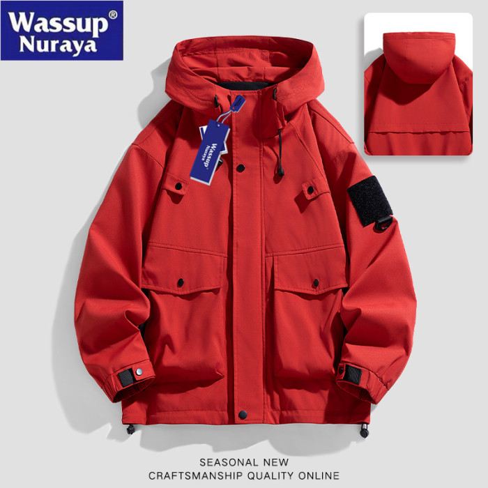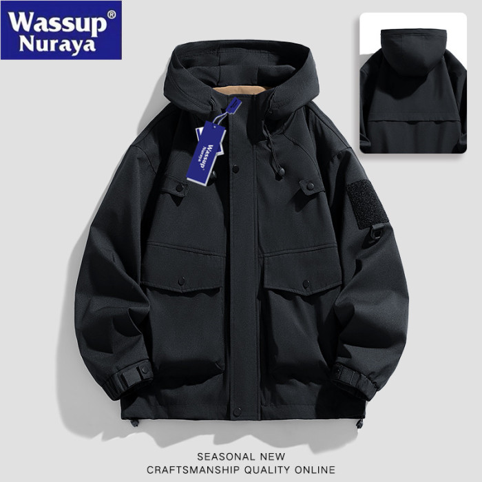 WASSUP Nuraya潮牌沖鋒衣外套男春秋寬松連帽工裝戶外防水夾克男