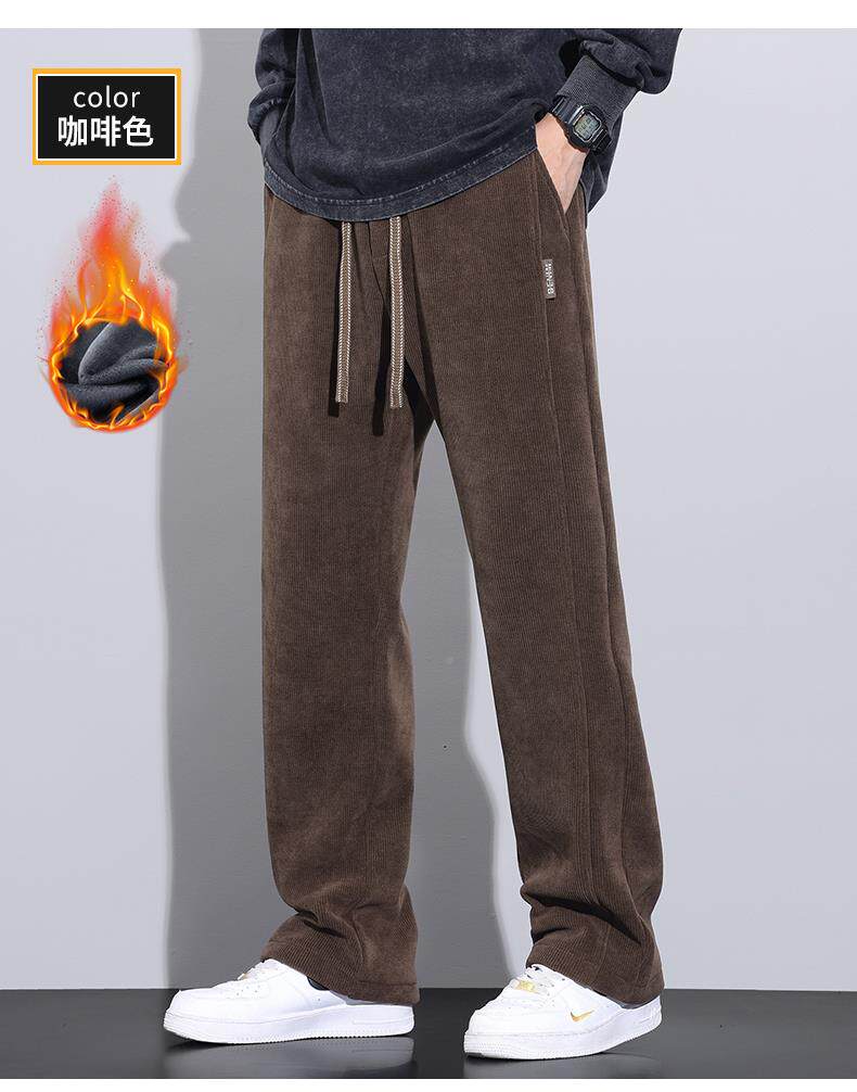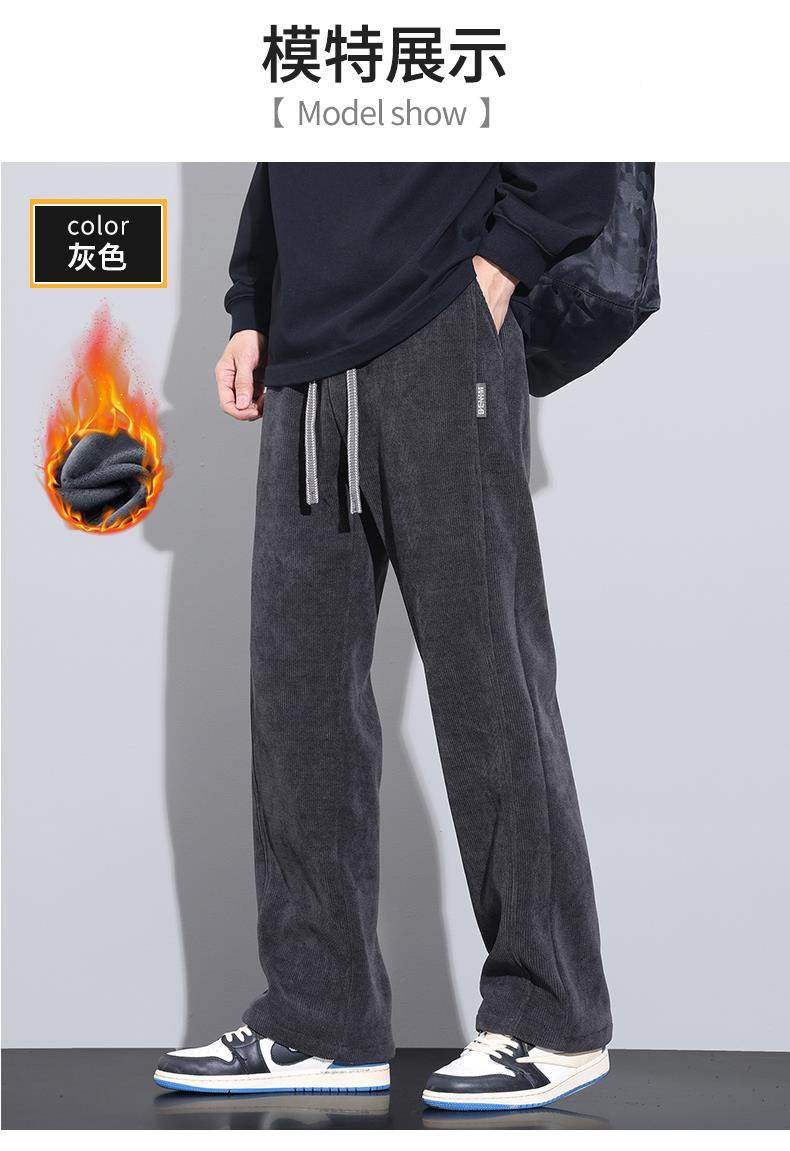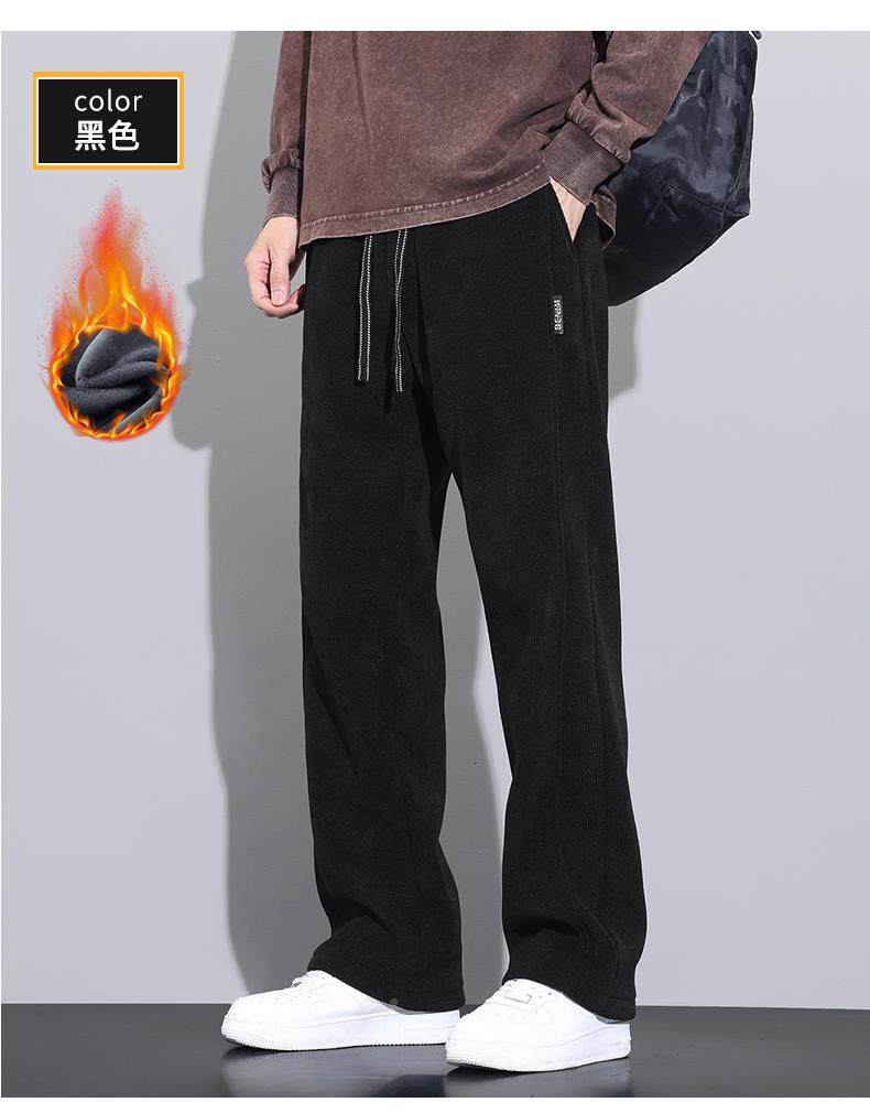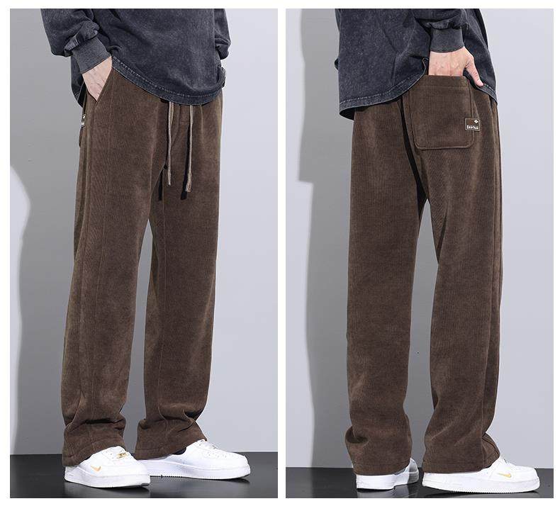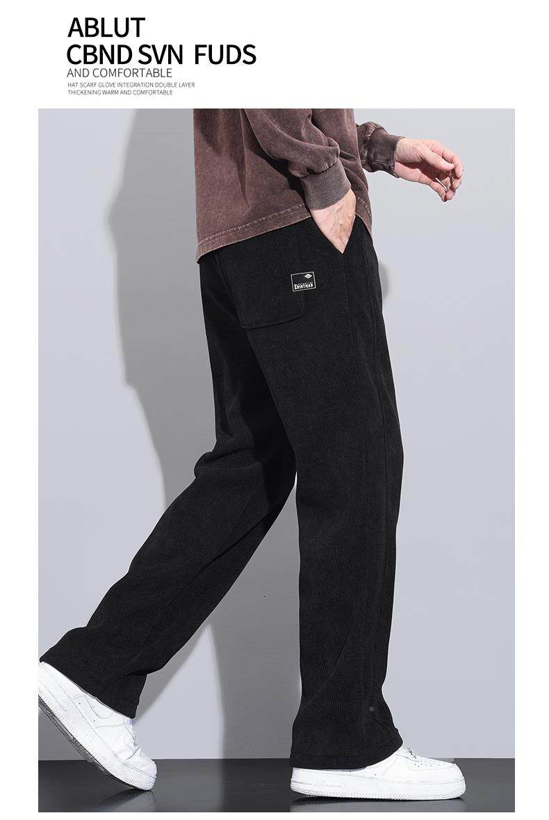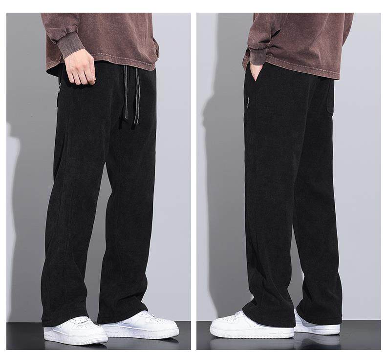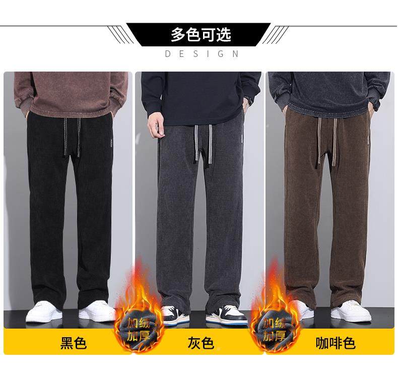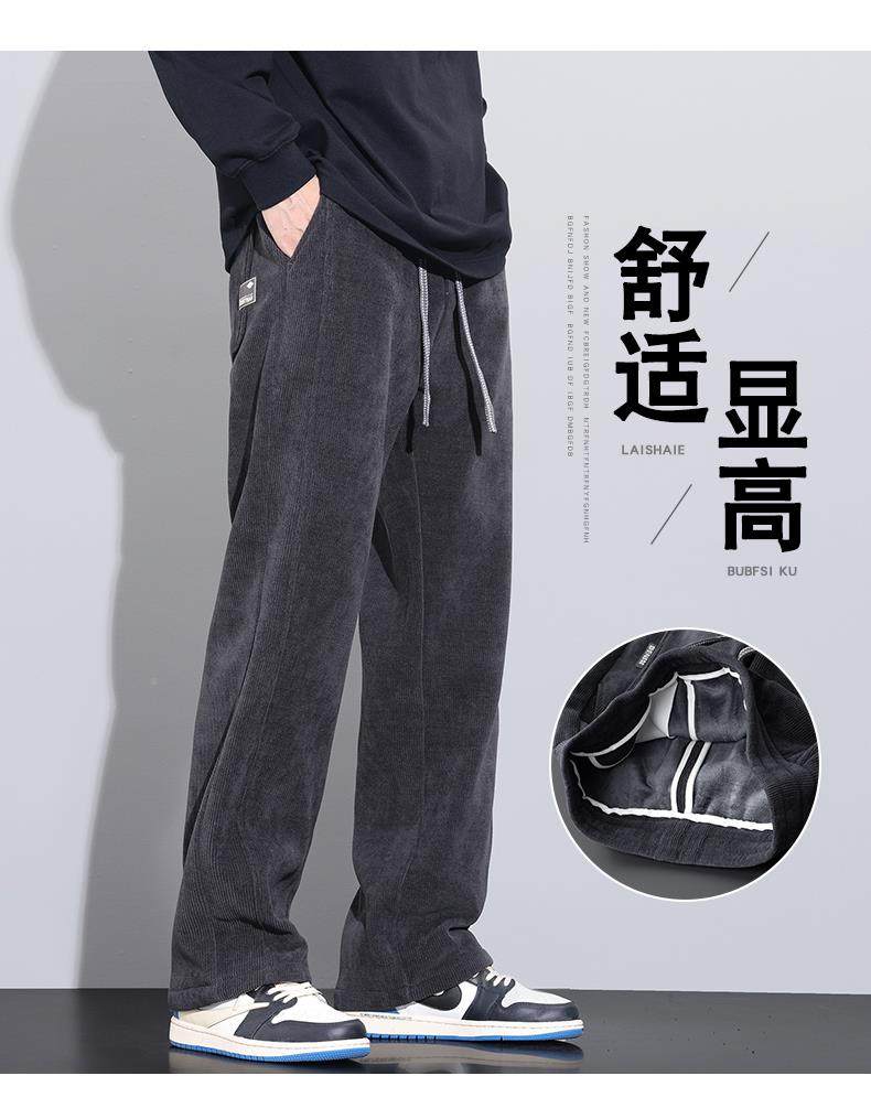 休閒褲男士寬鬆直筒秋冬燈芯絨垂感運動褲美式潮牌濶腿衛