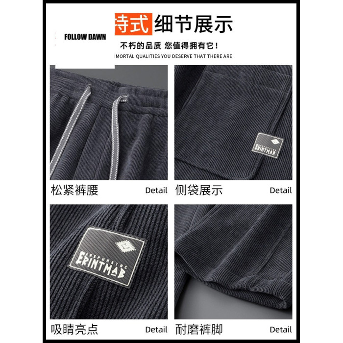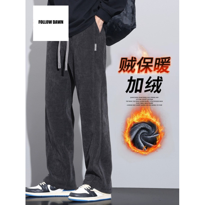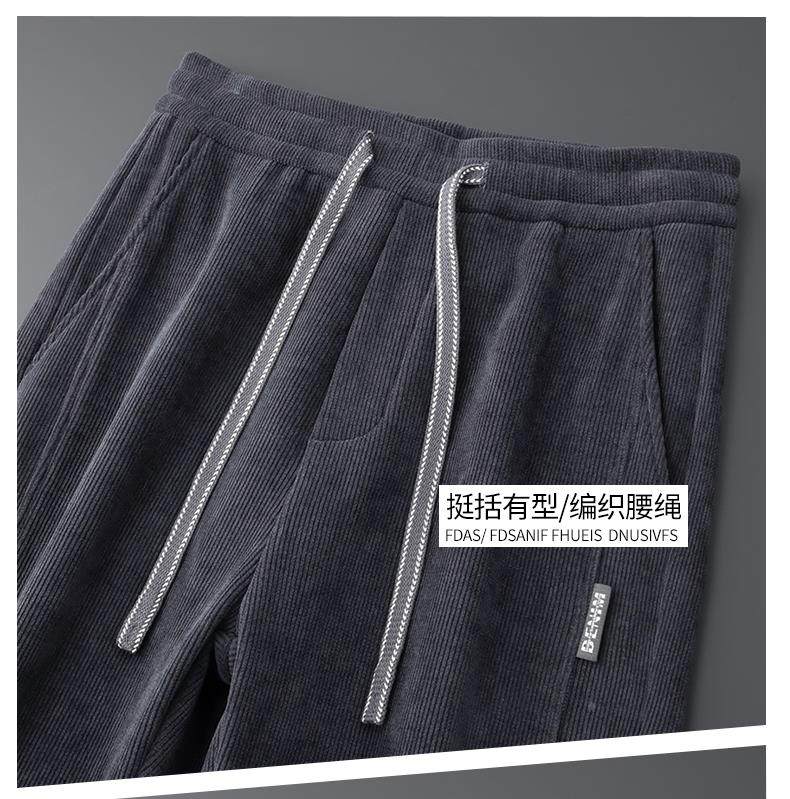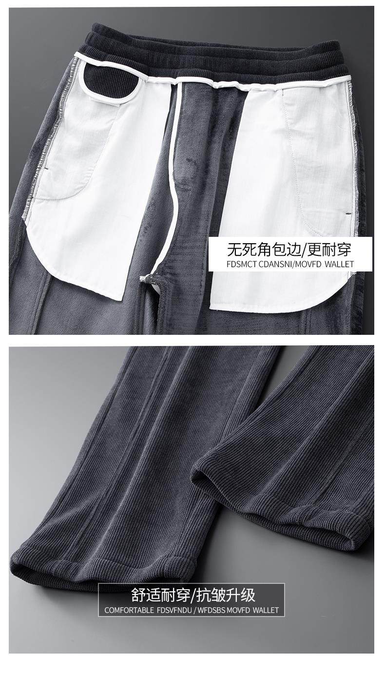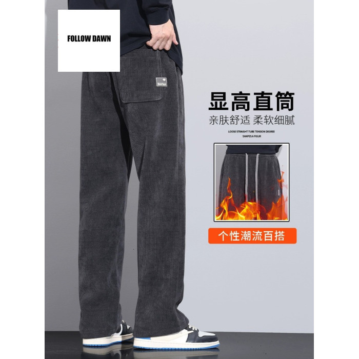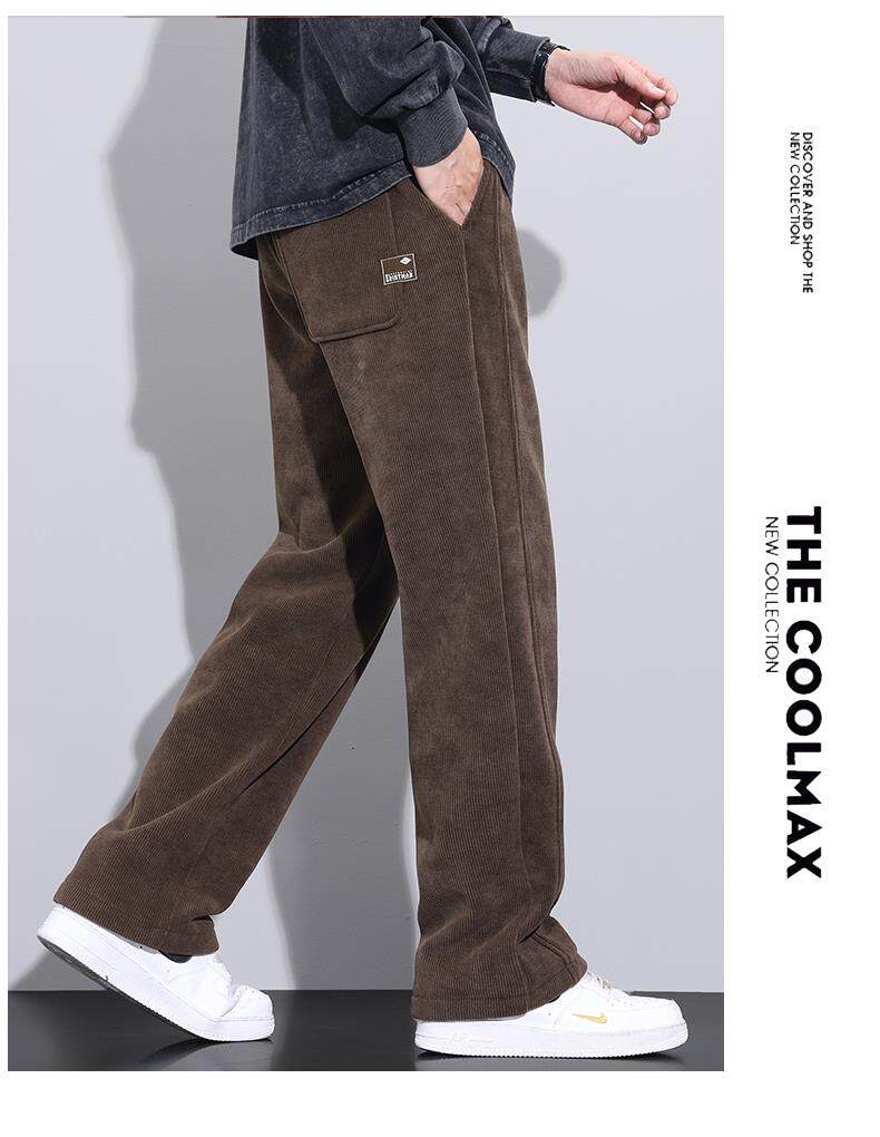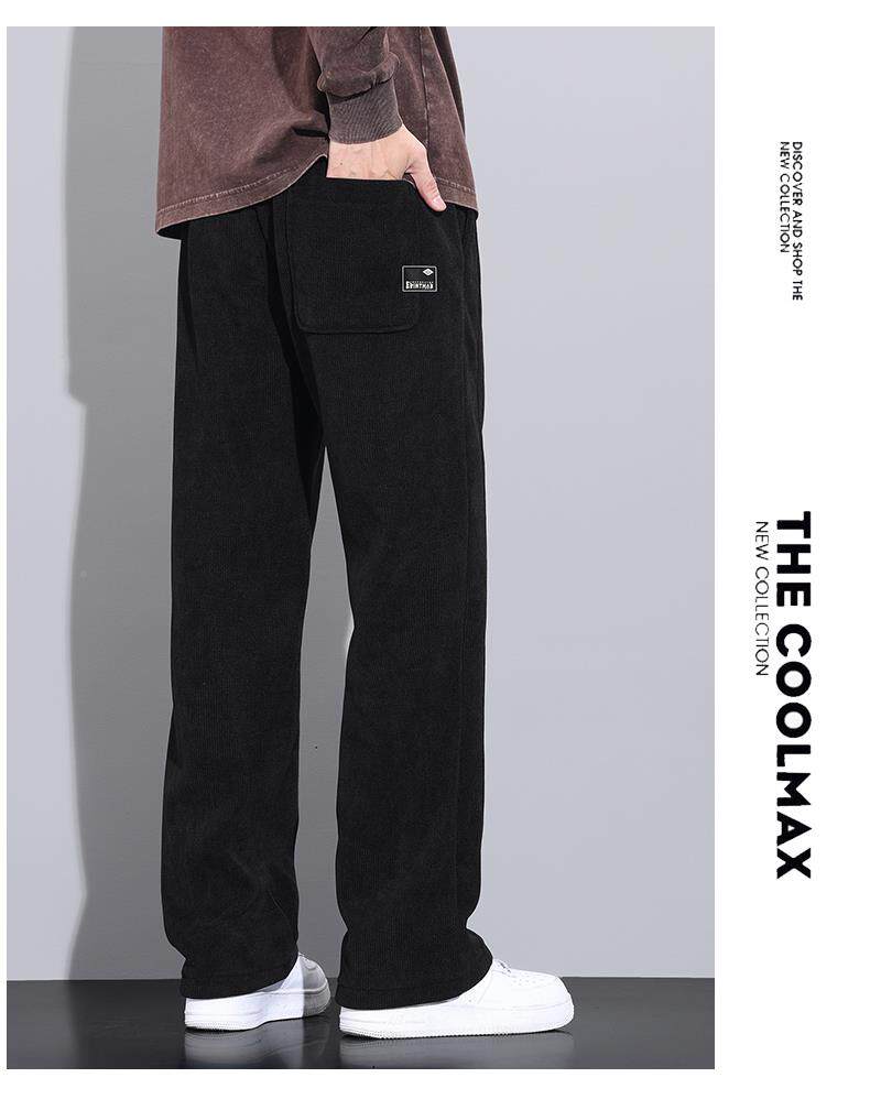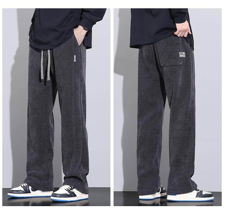 休閒褲男士寬鬆直筒秋冬燈芯絨垂感運動褲美式潮牌濶腿衛