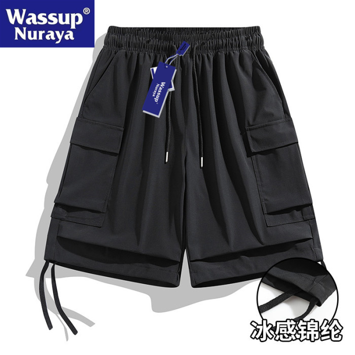 WASSUP Nuraya潮牌冰絲運動短褲男夏季速乾健身休閒五分沙灘褲男
