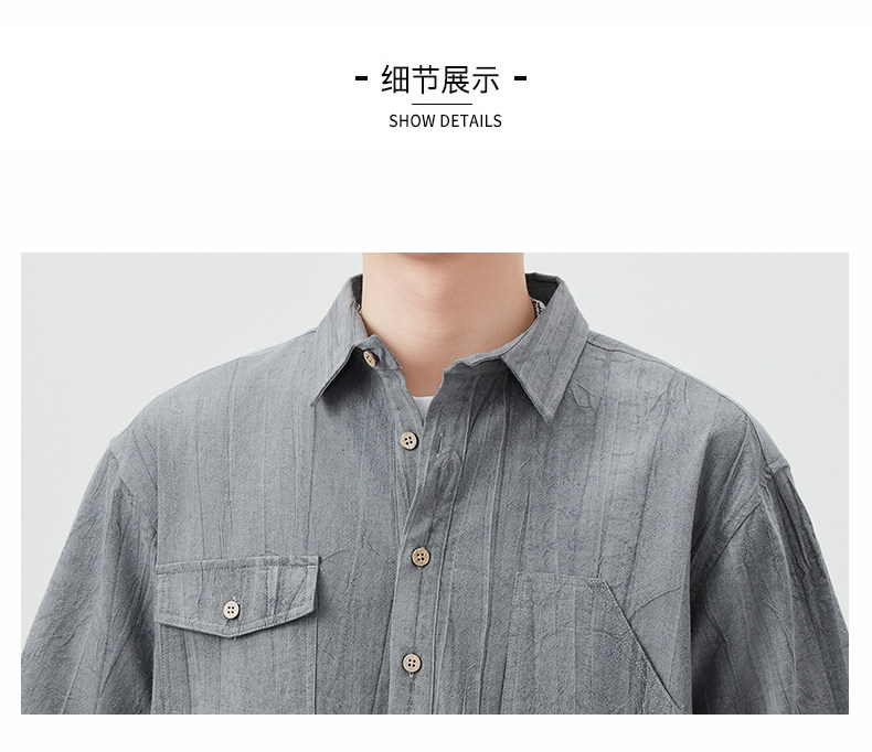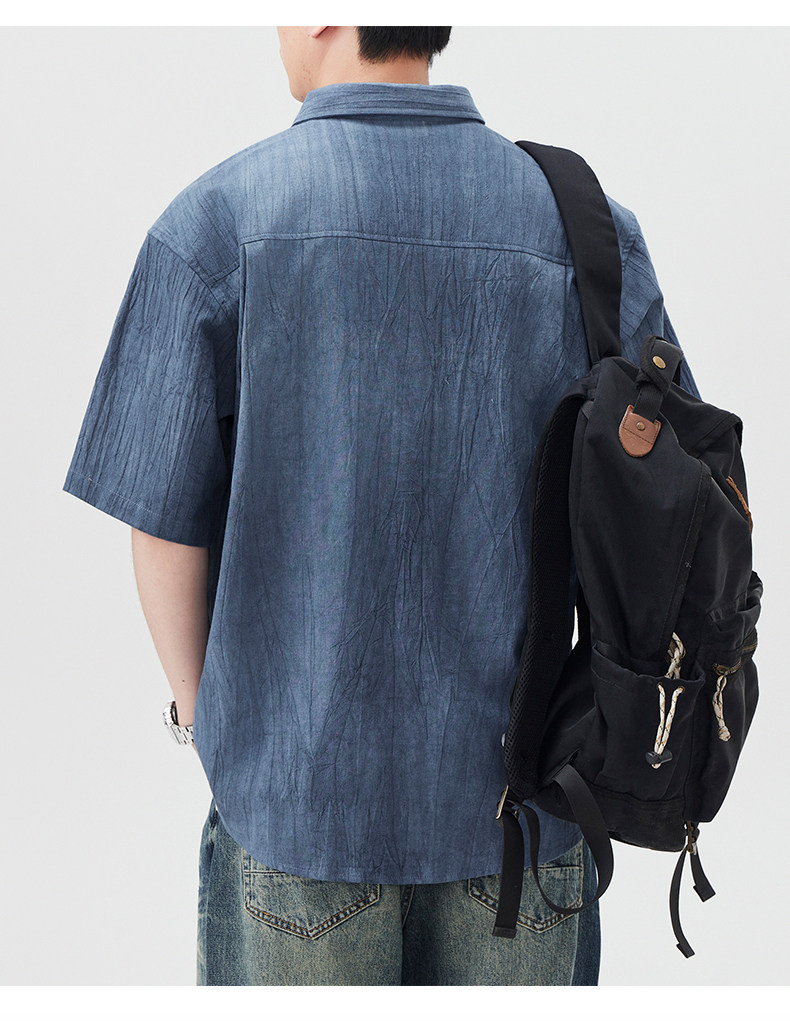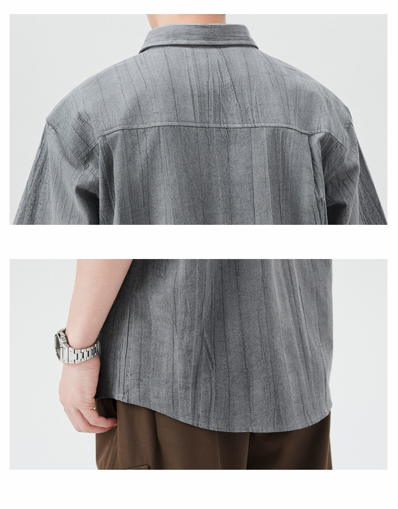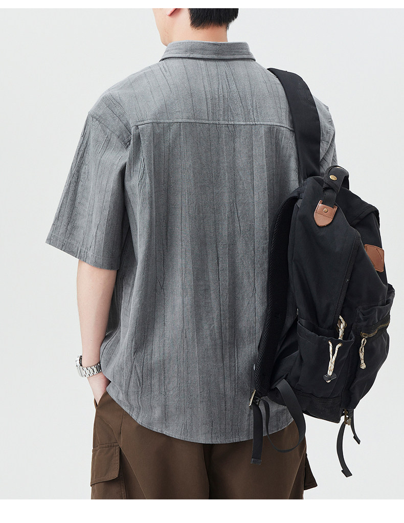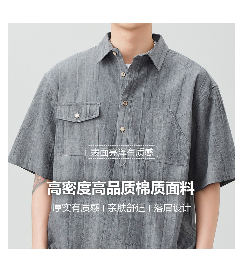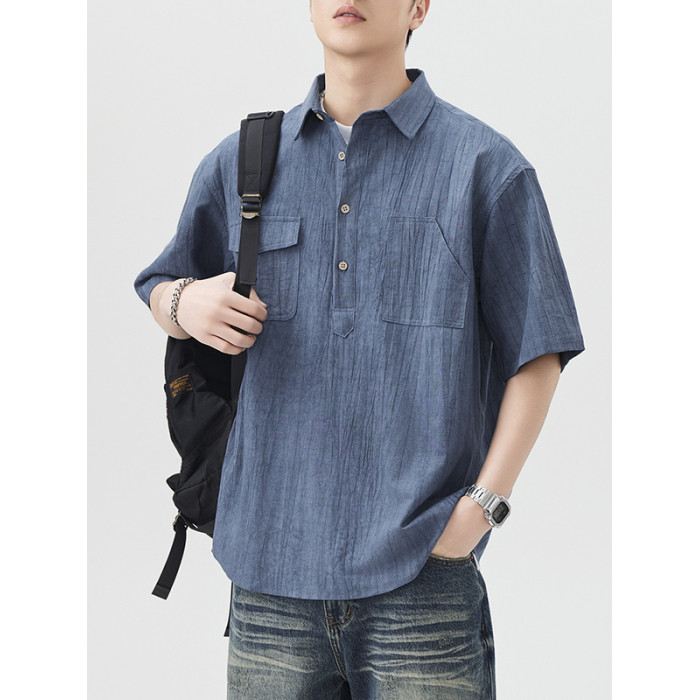 夏季棉麻復古短袖襯衫男日系薄款休閒寬鬆復古POLO領中袖襯衣美潮