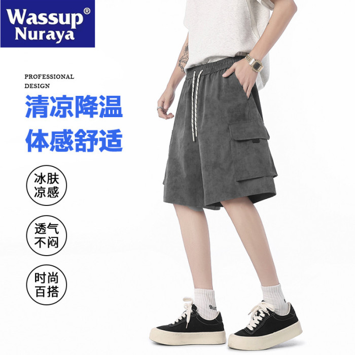 WASSUP NURAYA迷彩工裝短褲男夏季冰絲薄款寬鬆休閒褲速乾五分褲